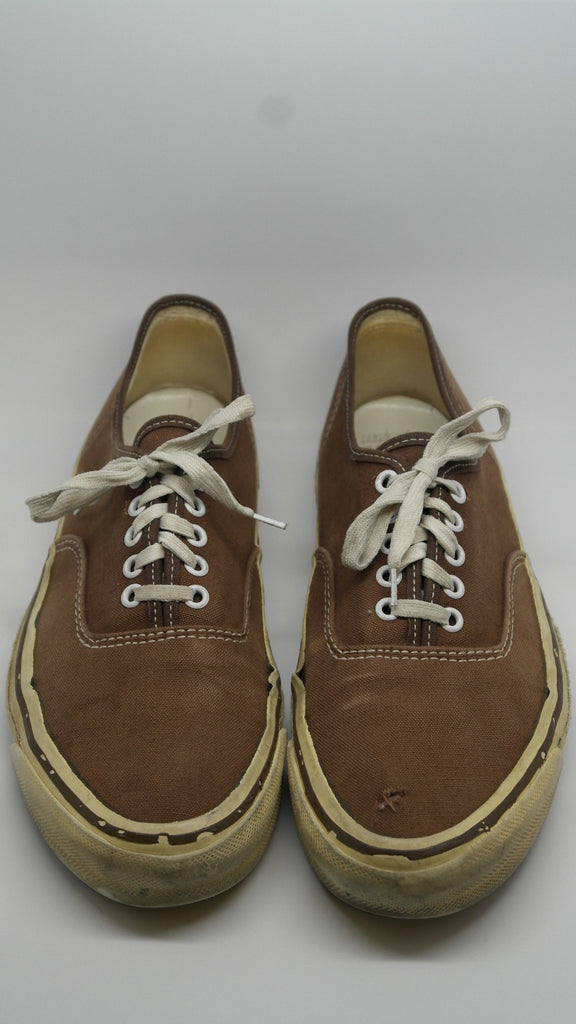 these have seen significant wear however back in the 70s were made like sherman tanks. hard wearing 10 duck canvas is like denim & shows 1 hole at the left toe. the rubber remains soft & flexible despite separation between uppers & rubber at toe creases. minor wear to inside toe cap through to canvas.