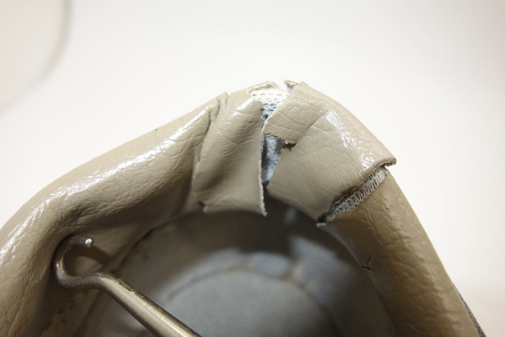 very good used condition. all rubber remains soft & flexible despite some separation from uppers at toe bends. the vinyl collar shows some splitting mostly to the base, but does not expose foam. minimal erosion to the insole where arch inserts were removed.