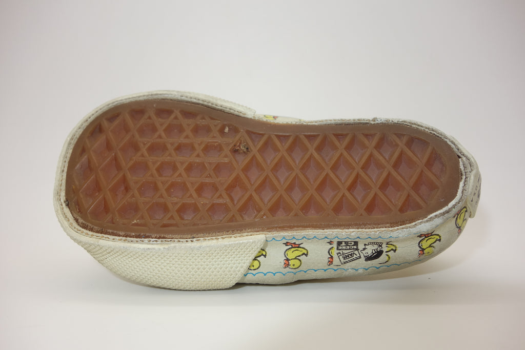barely worn however the white rubber first foxing has completely cured/solidified & become brittle. no cracks appear however upon bending the foxing stripe area will shatter. the midsole friction is unaffected & to be fair there is negligible bend at this age. wear at own risk