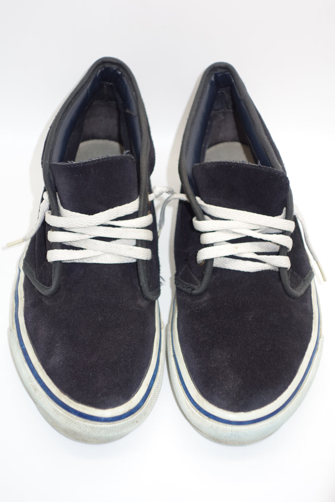 these are custom wide fitting chukkas & fit in width similar to modern day chukkas however also fit long, but not quite like US11. they are in excellent used condition & all rubber remains soft & flexible. near flawless rubber. some wear to the inner lining at the big toes however no holes in suede. colour is navy blue but essentially look black