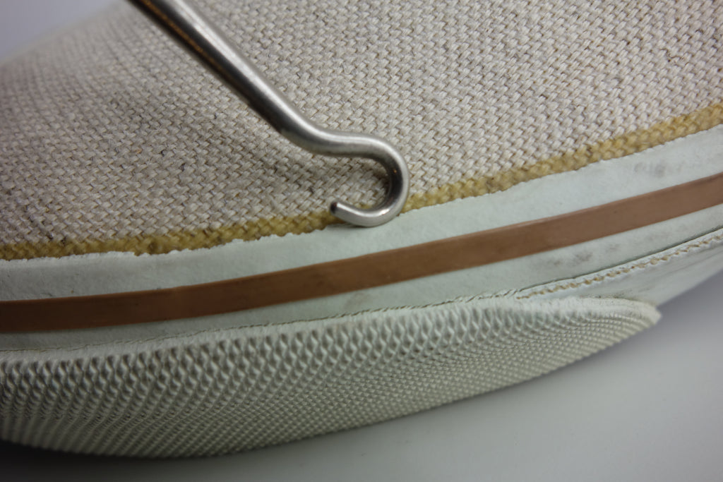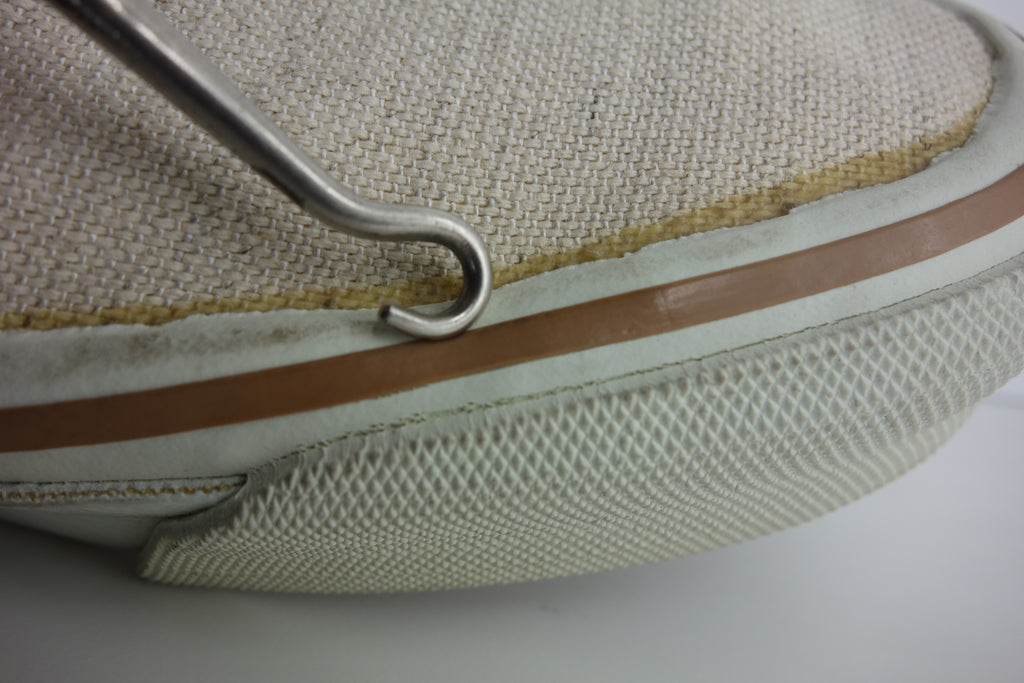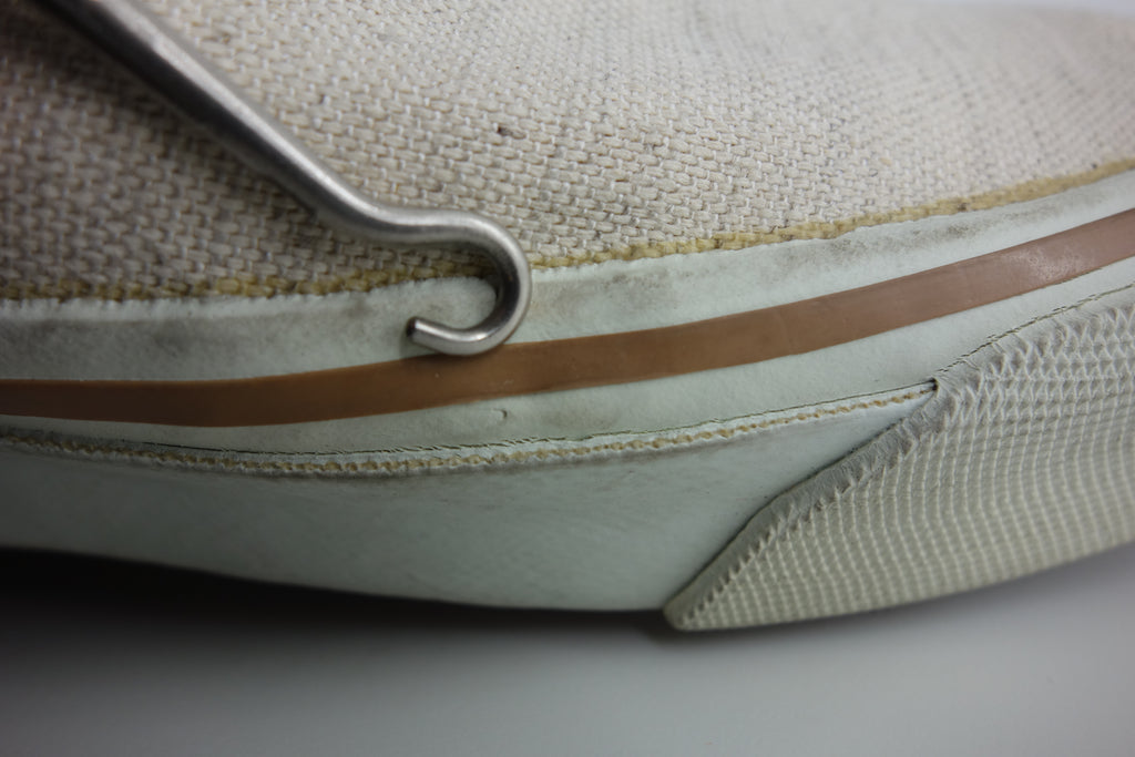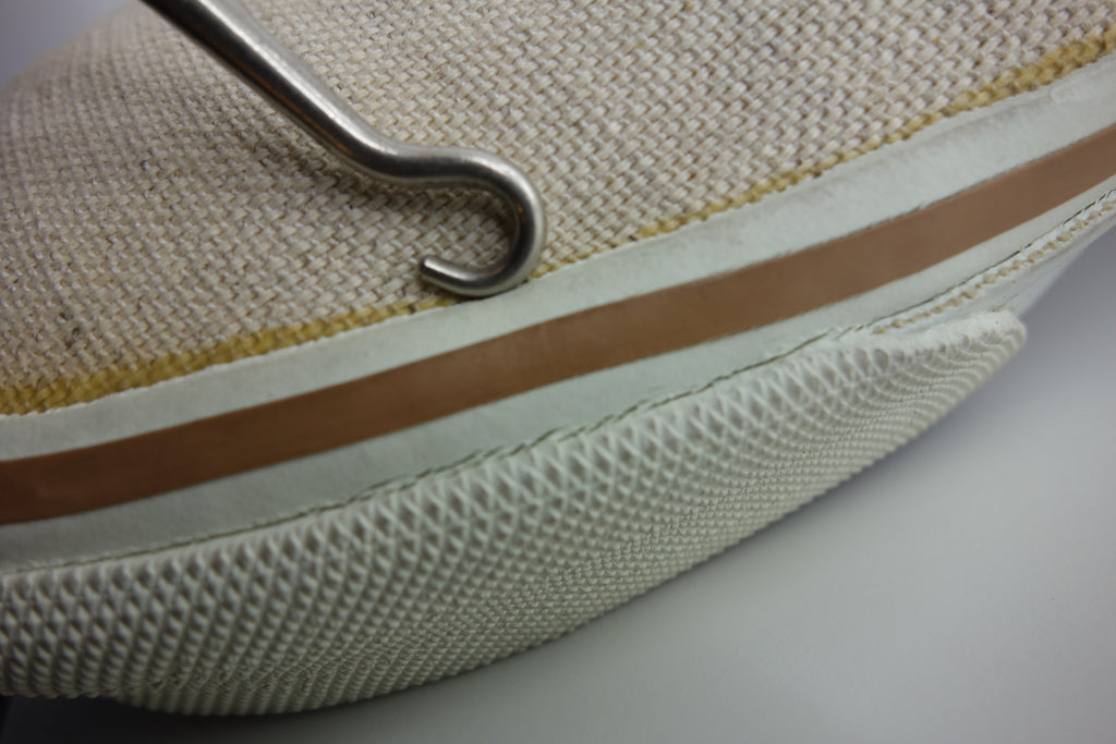 unworn & all rubber remains super soft & flexible. linen is buttery soft. very minor stress cracking from crushing during storage. some handling wear around collars. both shoes list 11 but may fit a tiny bit small but not quite at US10.5