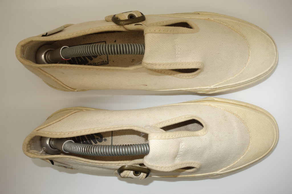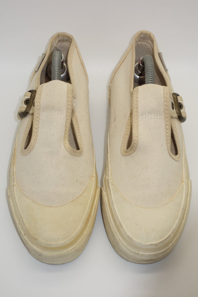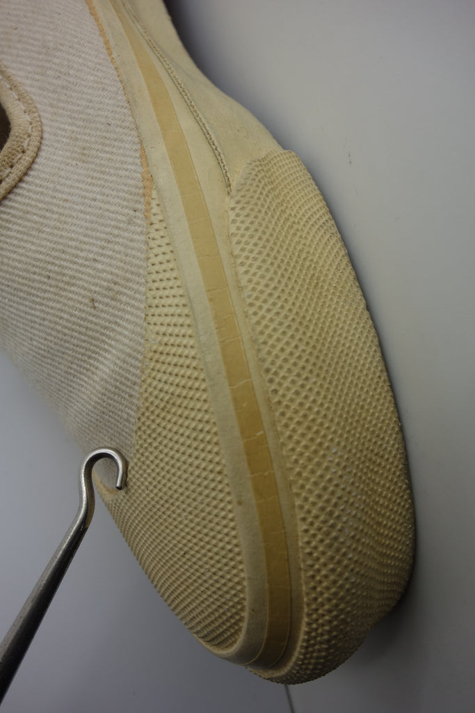 THESE ARE CUSTOM NARROW WIDTH. WOMENS SIZING IS ALREADY SLIM COMPARED TO MODERN FITS SO THESE SUIT FEMALES WITH NORMAL TO NARROW FEET ONLY. these show evidence of exposure to light with resulting widespread yellowing of the rubber, predominantly on the right shoe. the midsole remains soft however the foxing stripe especially may chip & flake away. from experience these will hold up to normal wear however wear at own risk.