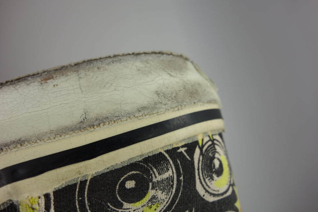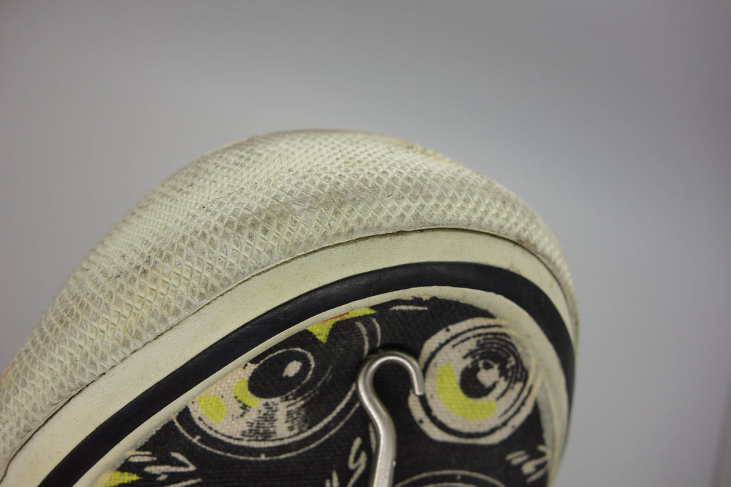 very good used condition. all rubber remains soft & flexible despite wideapread stress cracking & minimal separation from uppers at creases. there was minor exposure to light to the rear lateral sides of both shoes & around to the heel with resulting yellowing & jigsaw cracking. the right shoes shows more dryness than the left.