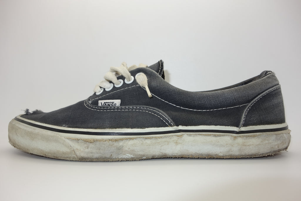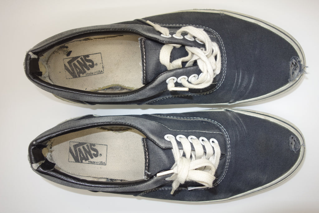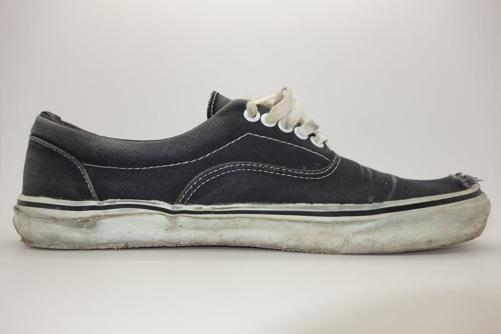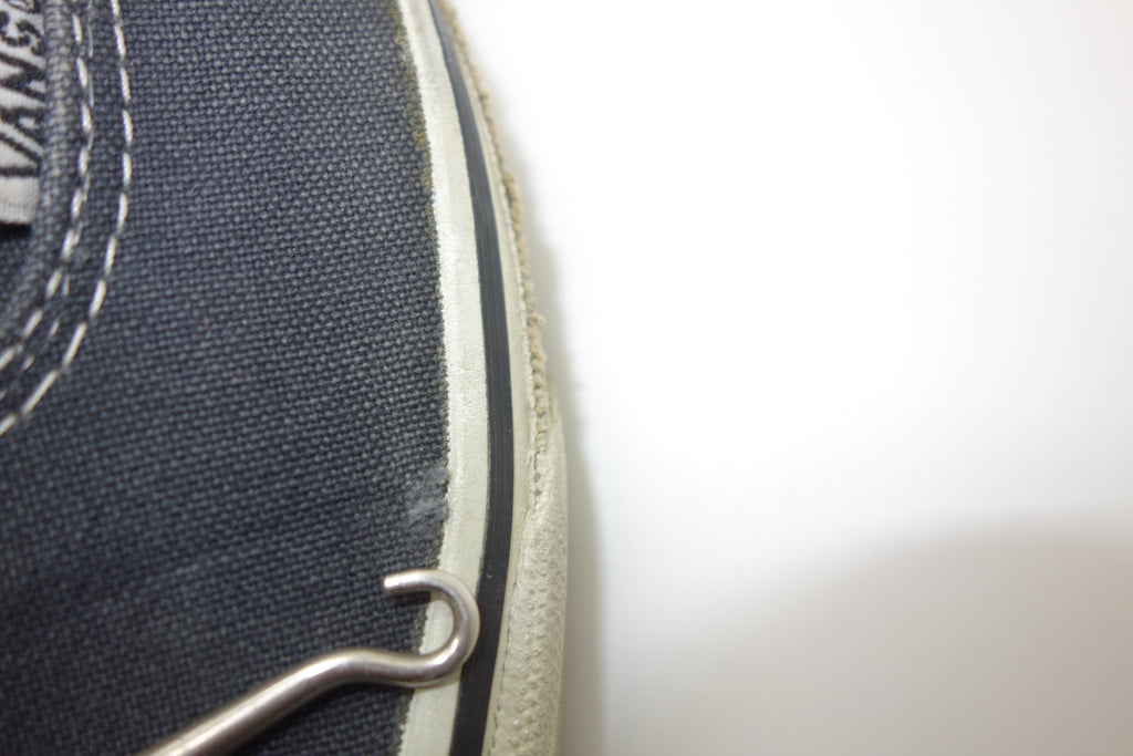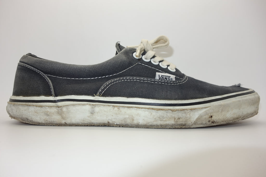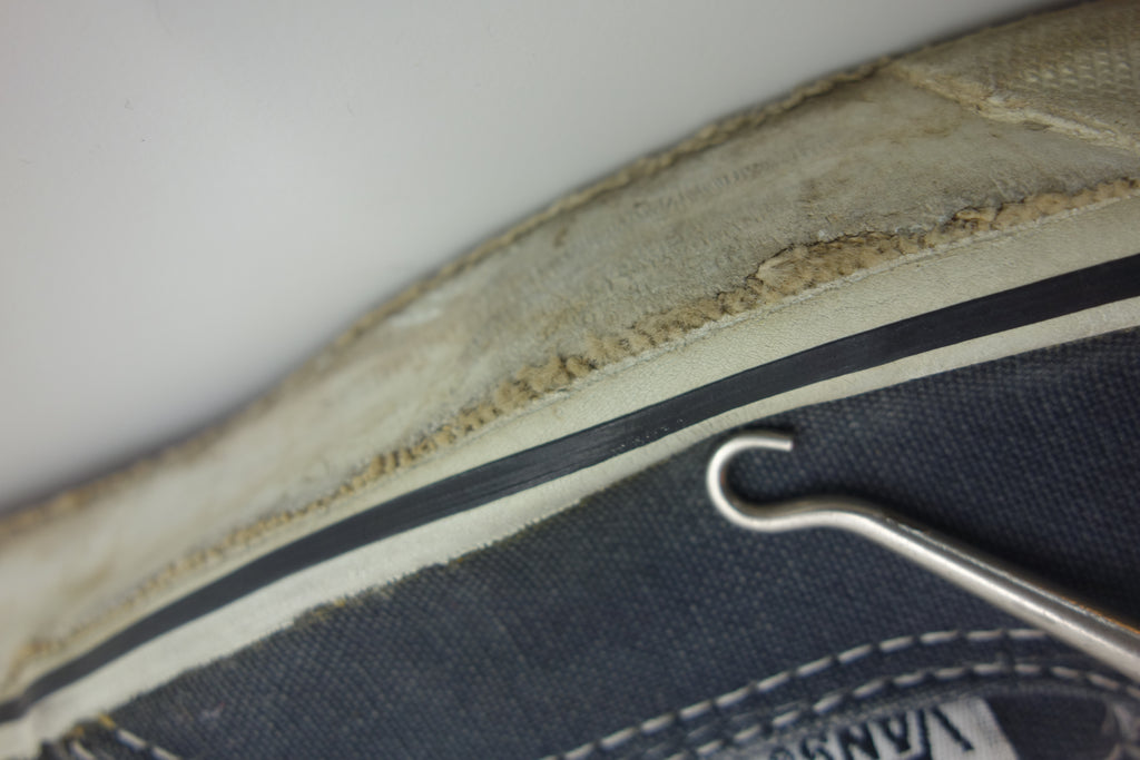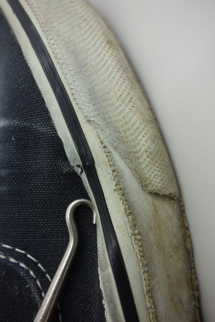 well worn & uppers show holes at big toes but structurally sound & still life left. all rubber remains soft & flexible apart from dryness towards the heels. wear to internal heel lining but plastic counter is intact. waffle & insole are sound. vinyl collar show splitting & lifting