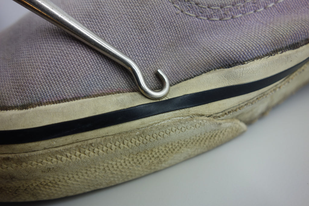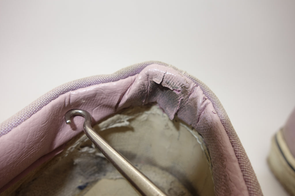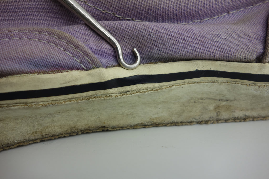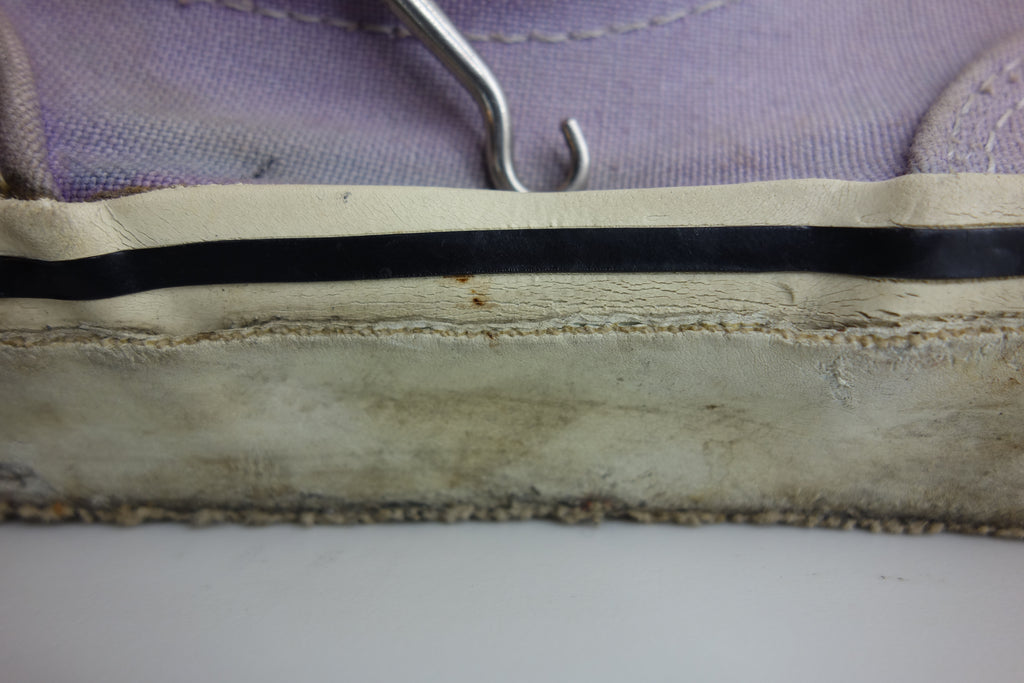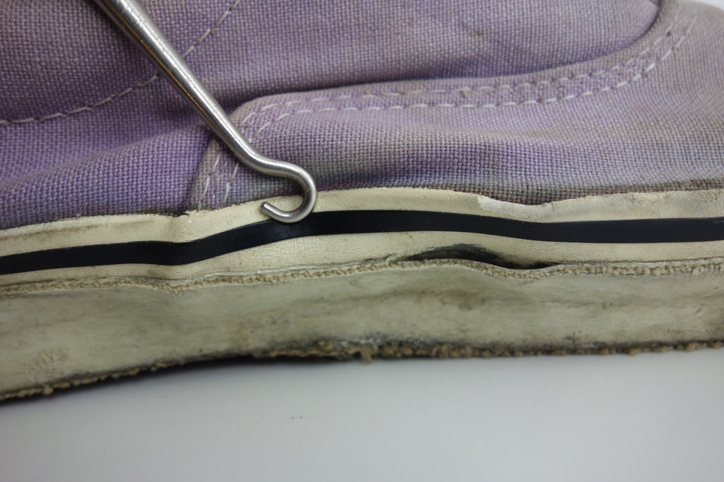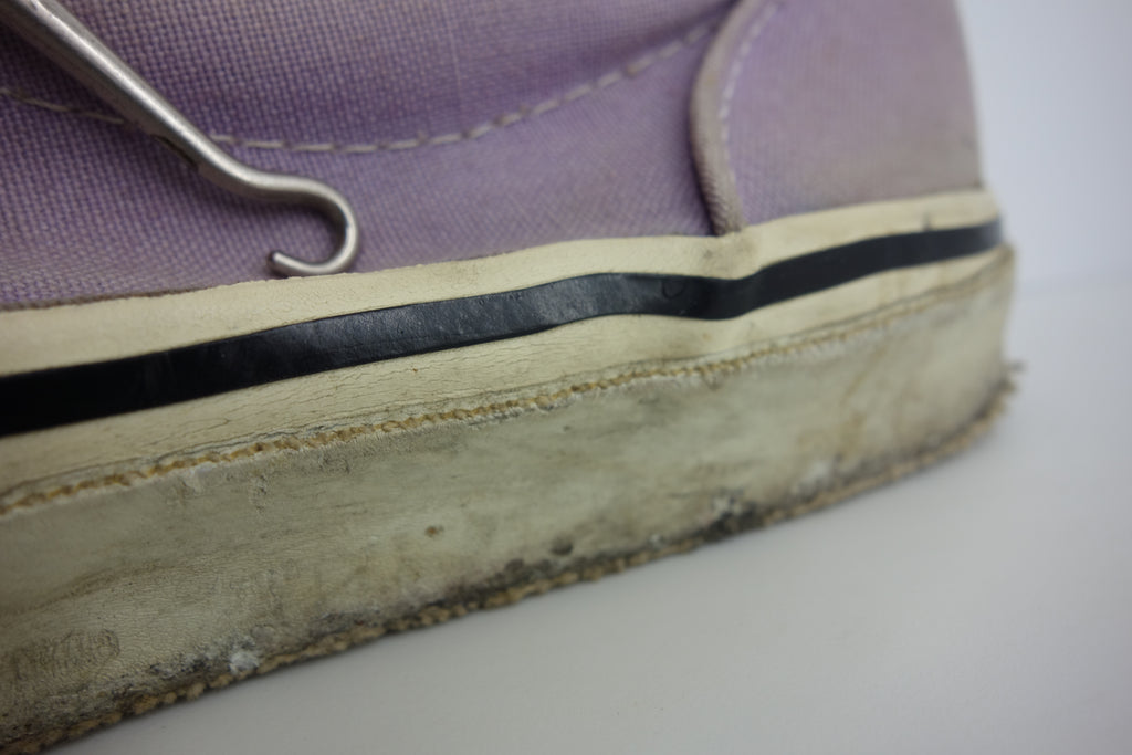 decent used condition. very minor separation between uppers & rubber at toe crease, but all rubber remains soft & flexible. minor holes & surface blemishes. there is wear to the interior heel however only to the canvas lining. the plastic heel cap remains comepletely intact. very minor splitting to the base of inner vinyl collar. also show minor wear to the inner lining at the toes. widespread micro stress cracking from crushing. still life left. no og laces. size not visible. i sold these prior as US10.5 but i reckon they are US11