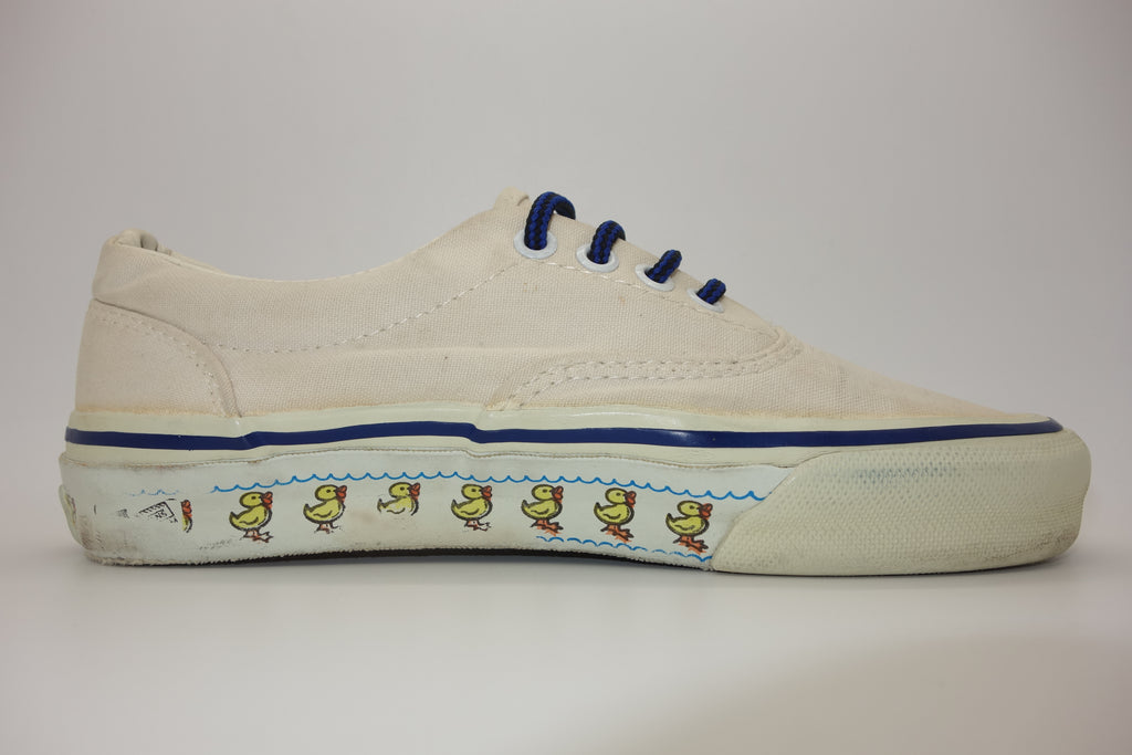 good used condition. all rubber remains soft & flexible despite micro stress cracking from crush injury. possibly machine washed with resulting sidewall erosion. size not visible but fairly confident of US4, if not smaller. laces not original.