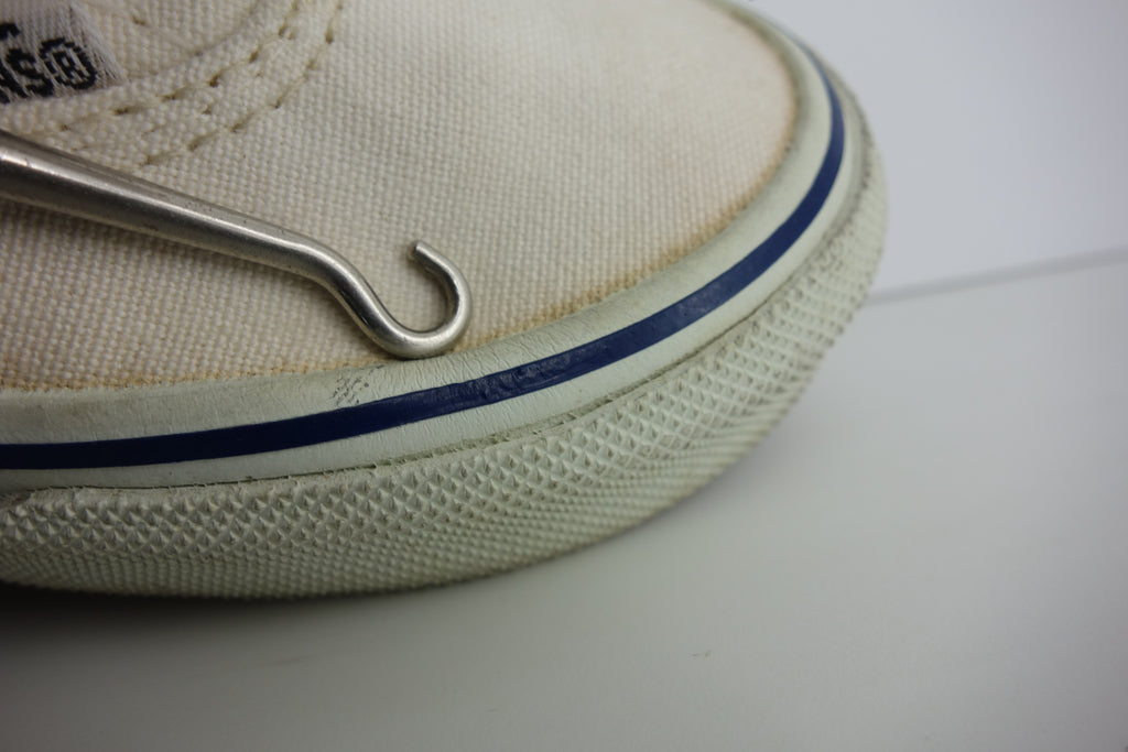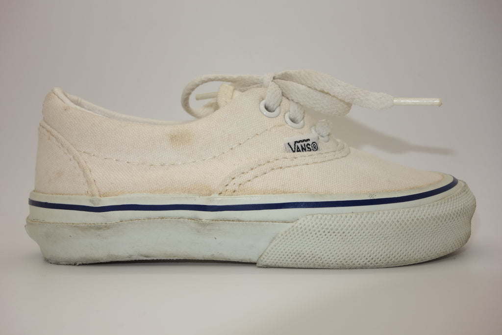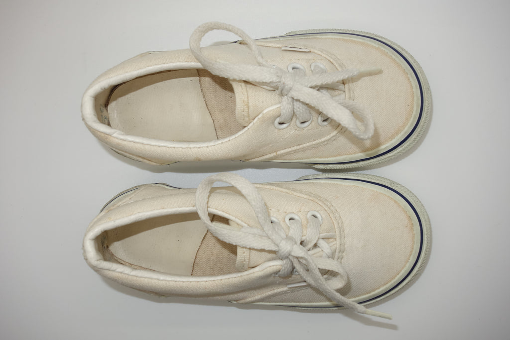 rare childs sized white style #95 with thinner sole. all rubber remains soft & flexi despite some stress cracking.