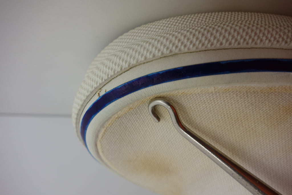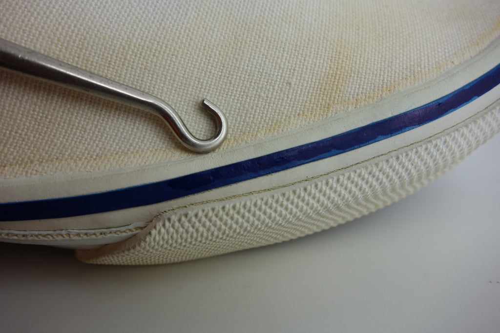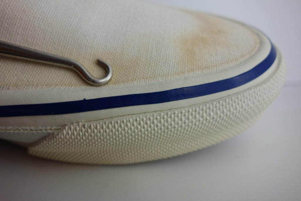 unworn however show water/age wear to canvas. all rubber however remains soft & flexible, with only minor stress cracking from crush injury. no size visible however kinda confident of US5.5 if not US6....