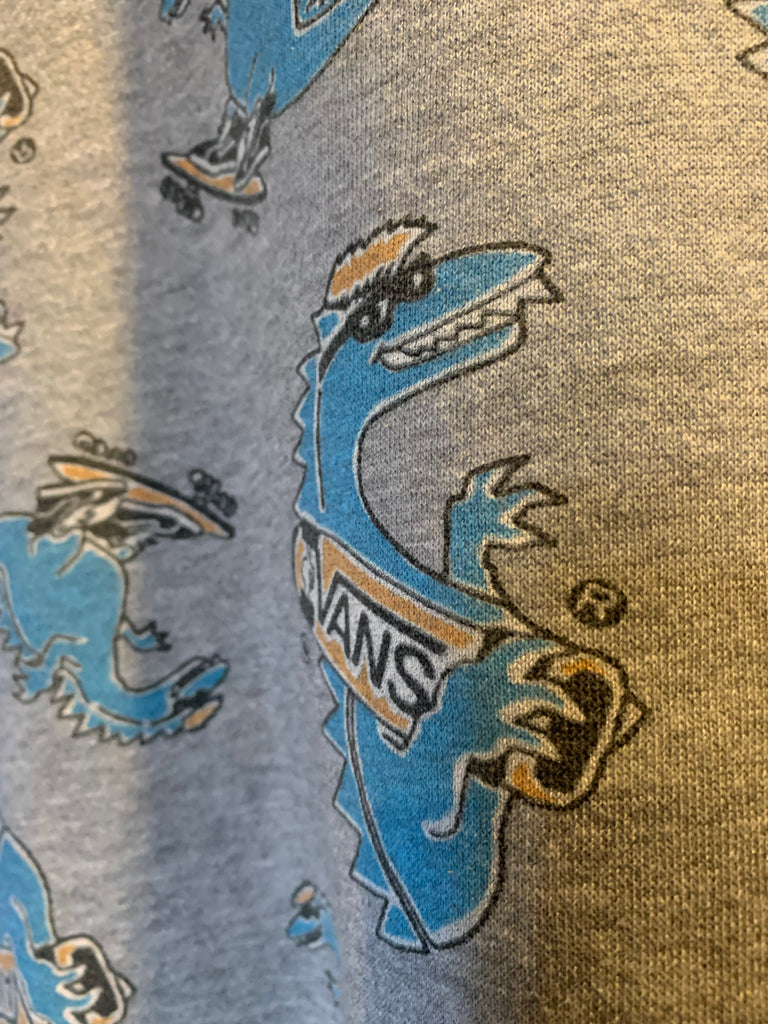 very good used condition. has seen wear but was well-loved. no stains or blemish. very minor bobbling. may fit slightly small. check measures. some thinning to fleece & some stretch to neck & cuffs