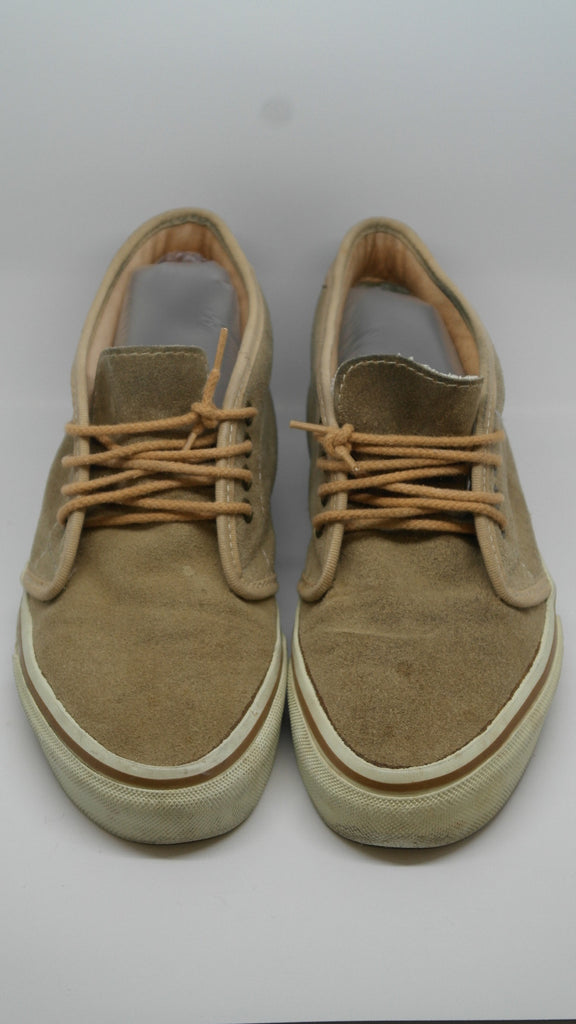 probable exposure to the elements & resulting stiffening of suede & minor hardening to the midsole. foxing stripe & 1st foxing shows stress cracking & wrinkling upon bend. the rubber has not cured completely however this will lead to premature aging. minor glue separation at midsole. wear at own risk