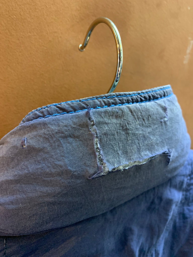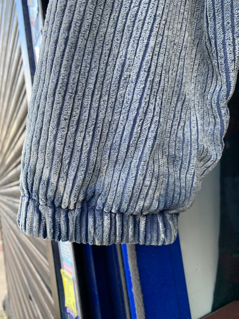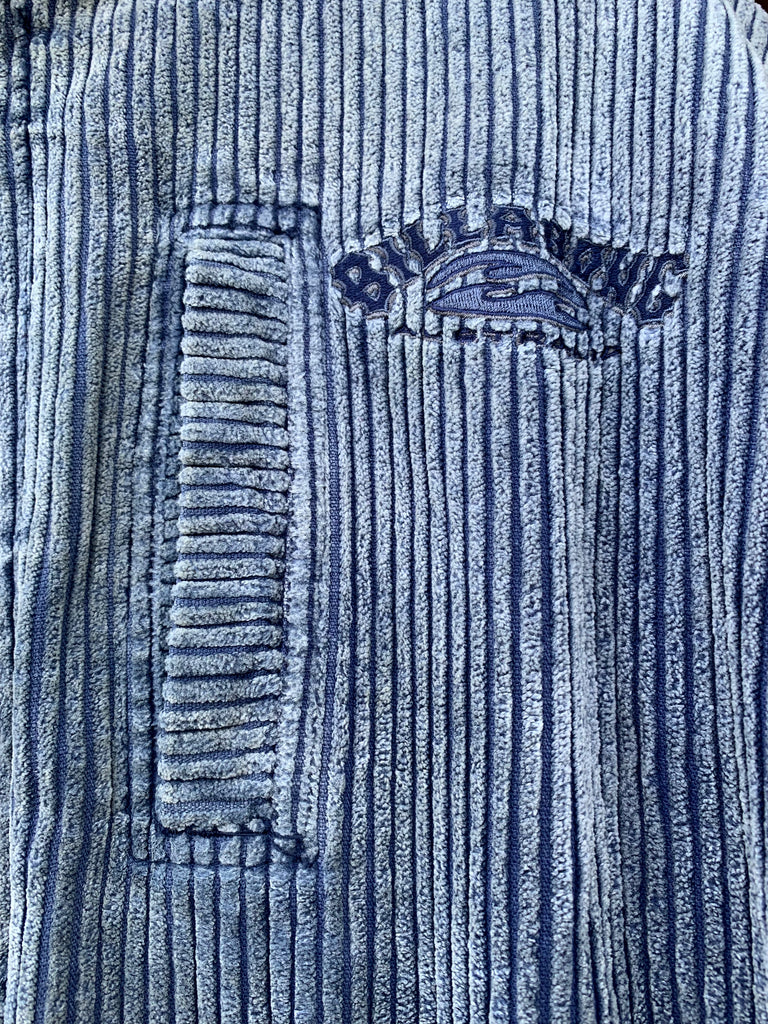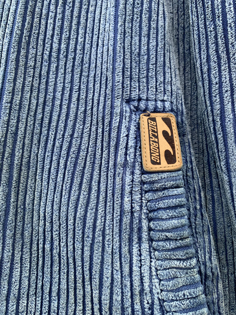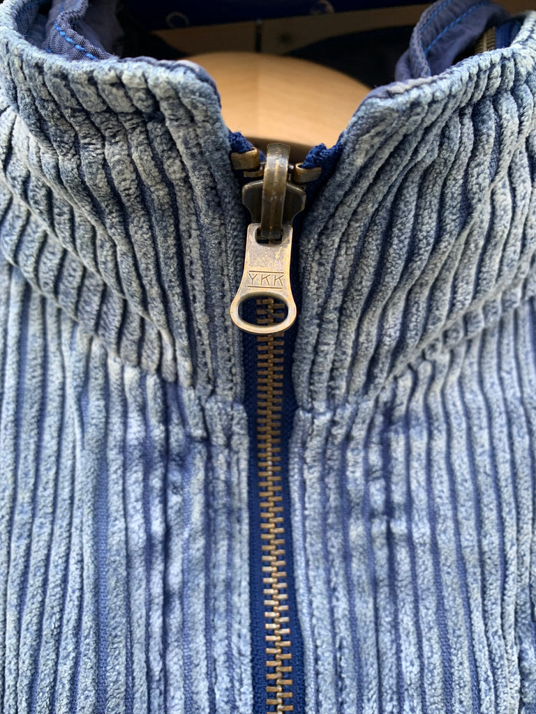blue acid wash corduroy, navy poly inner.