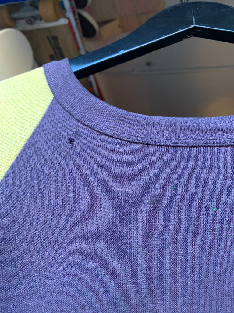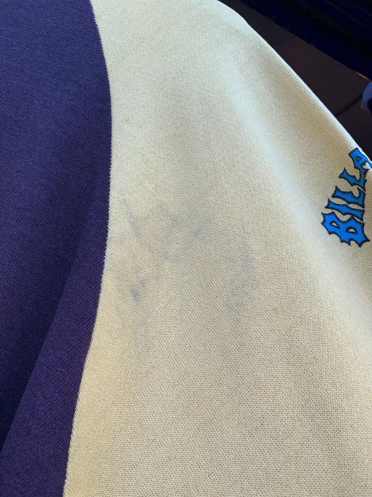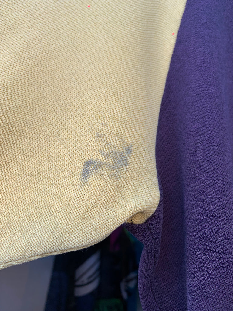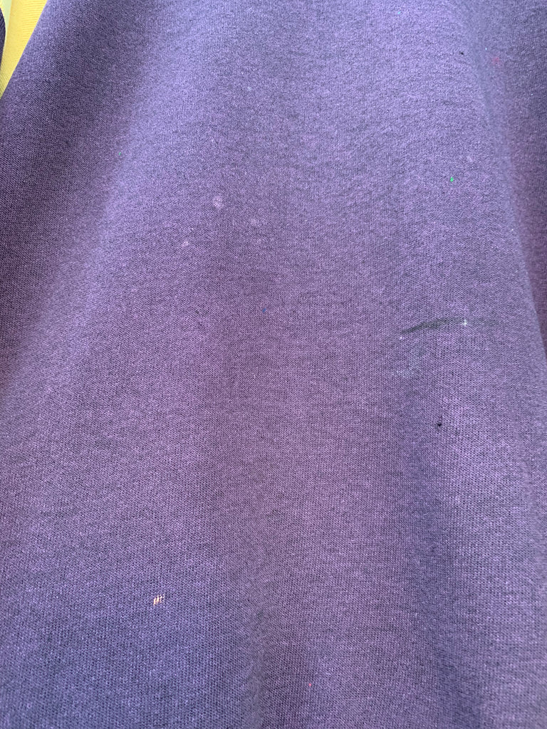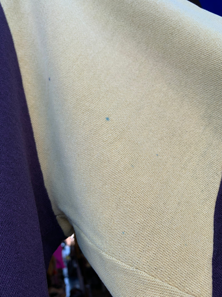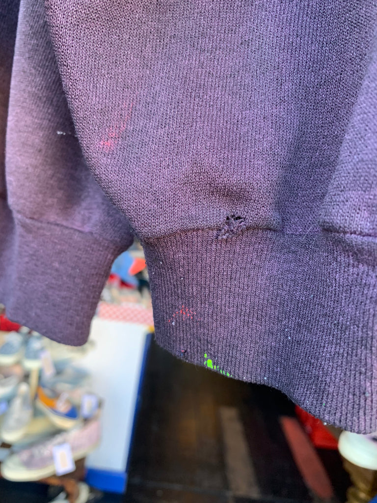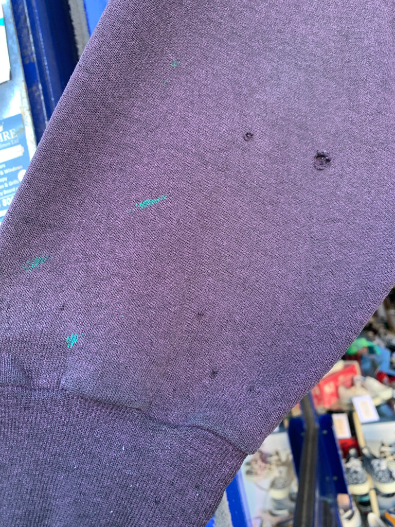 good used condition. has seen significant wear but was well-loved. widespread thinning of fabric throughout. distressed look with multiple paint splatters, blemish, holes & widened neck. cuffs show wear & some holes. tags missing but i reckon this was an original xl but fits slightly smaller.