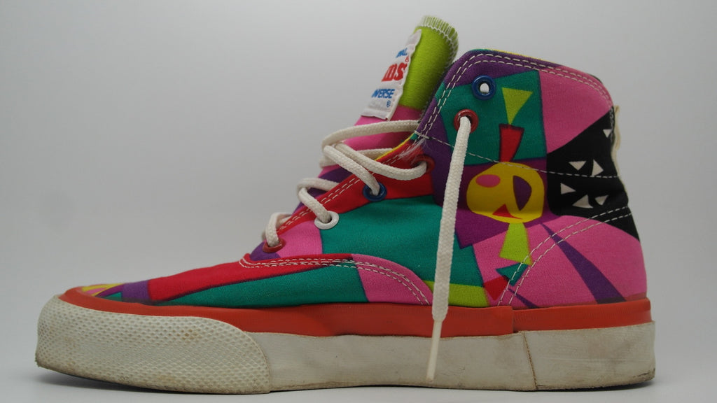 excellent used condition. the foam fiber-fill in the ankle supportive collar has persished with minimal black residue inside the shoe. the original owner wrote happy honey in magic marker on the heels.