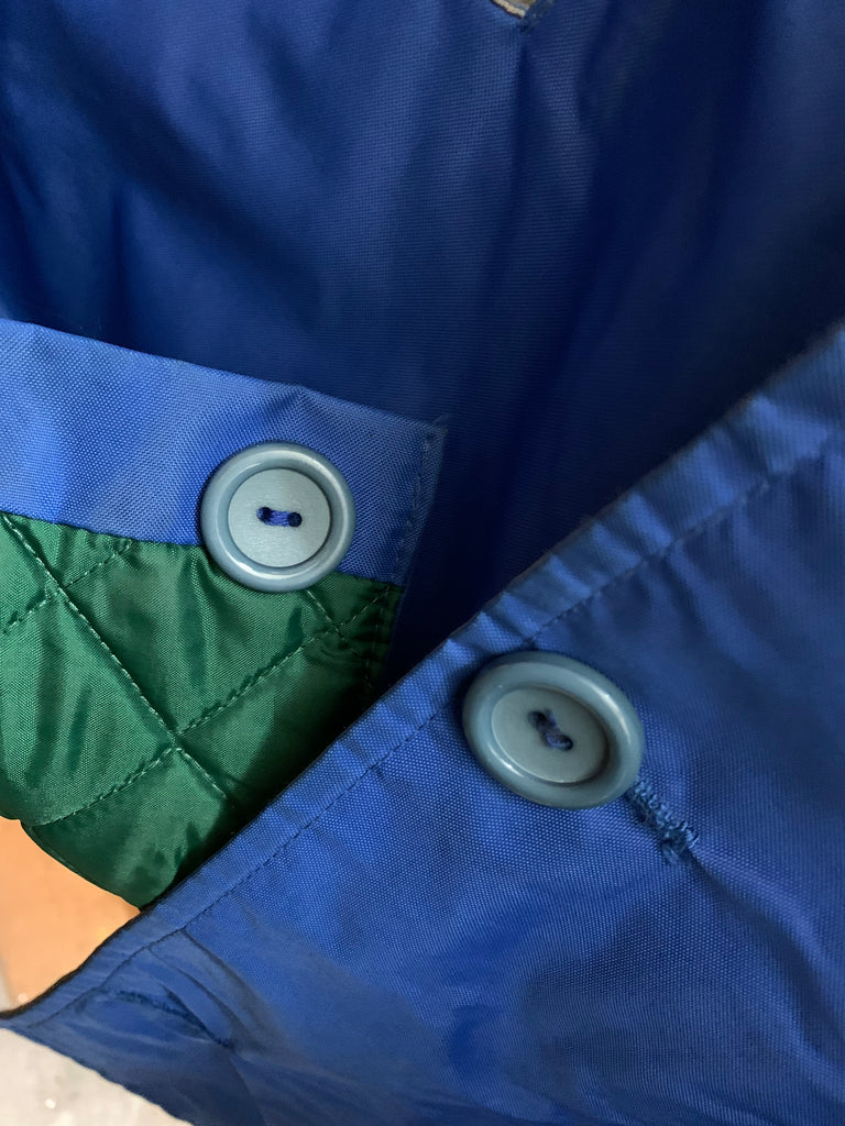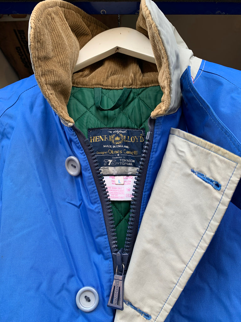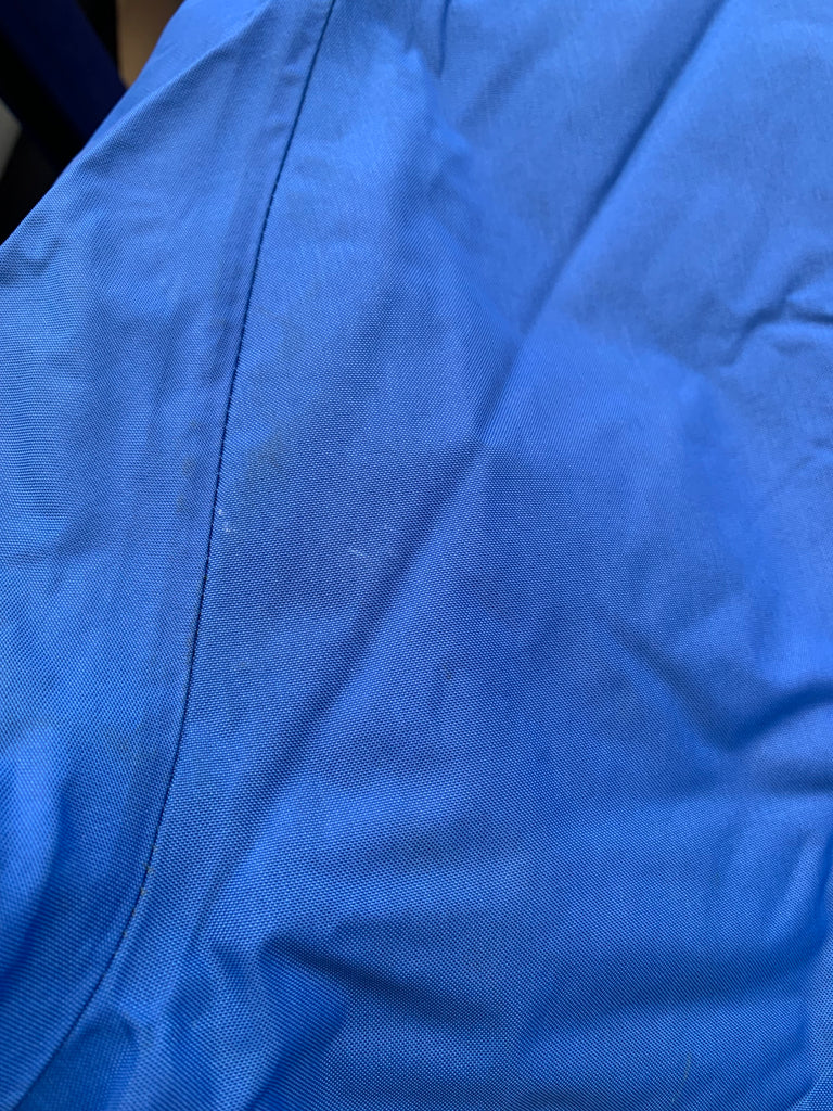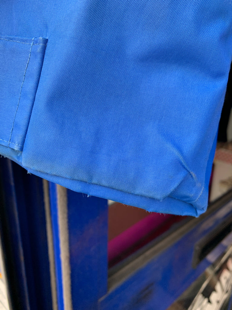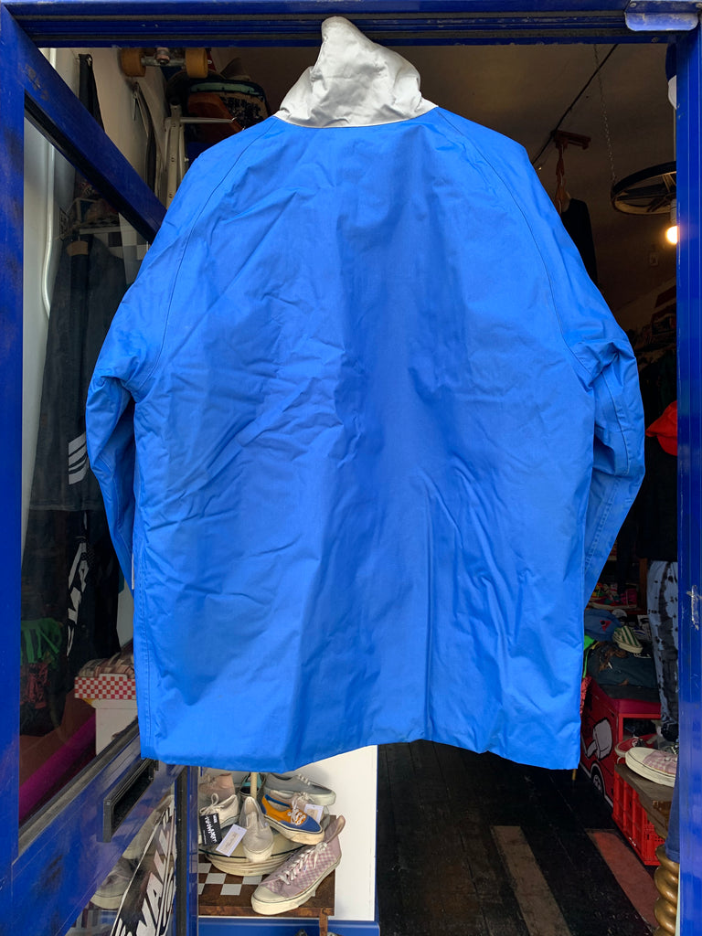 excellent used condition. includes the original neck protector. the outer is a little grubby at the wrist cuffs. a few very minor blemishes present. extra button included inside.