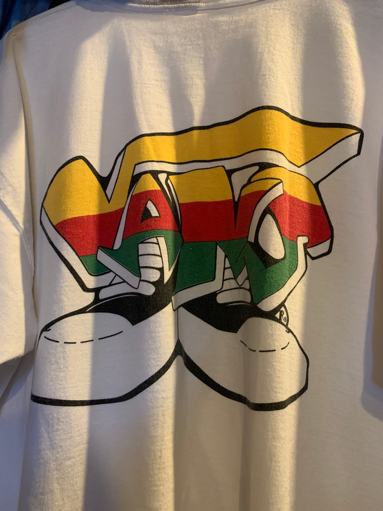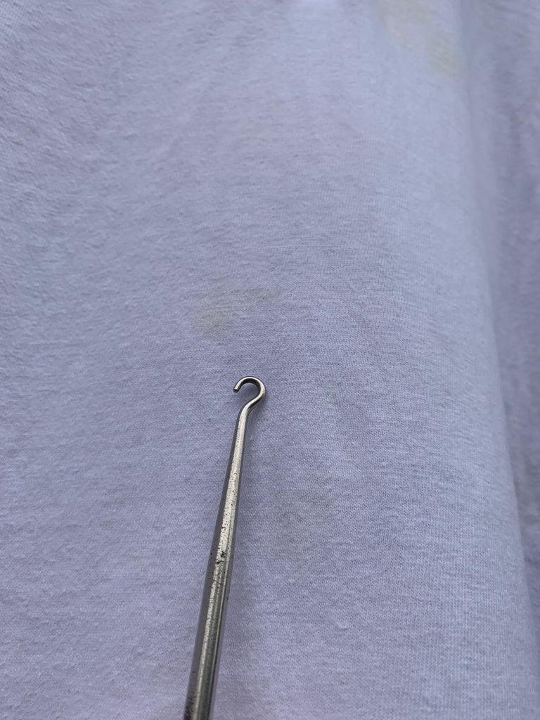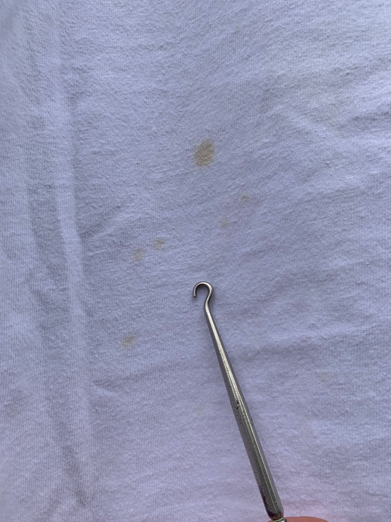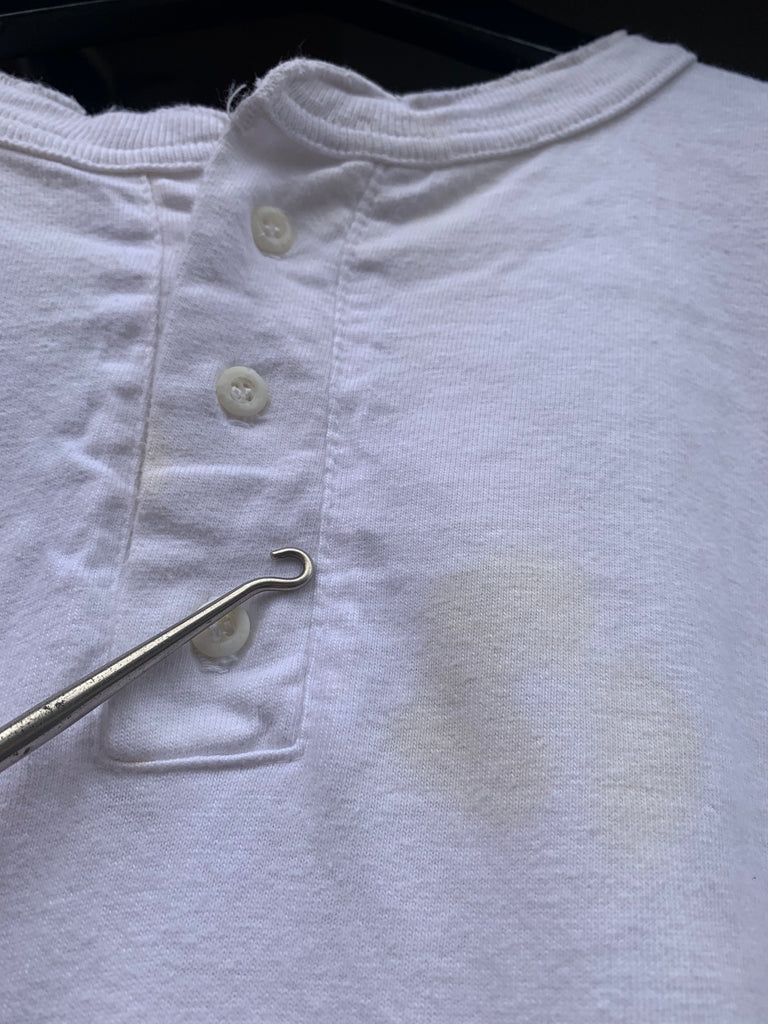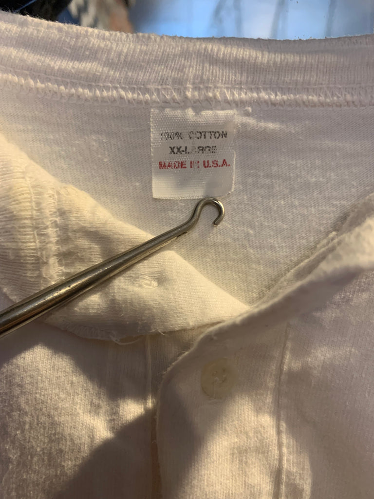 has been worn & washed. 1 significant stain to left of collar with 2 smaller surrounding stains above. 2 other areas of minor staining centrally. fits wide & short-ish, perhaps towards a modern XL. check measures!