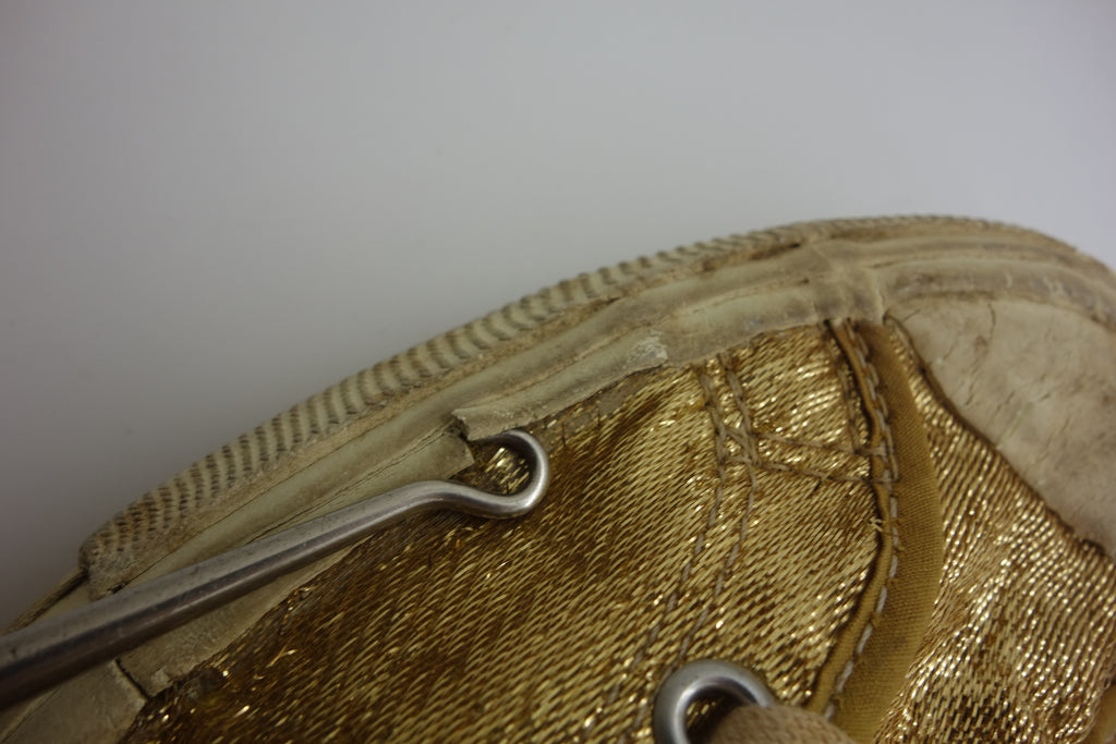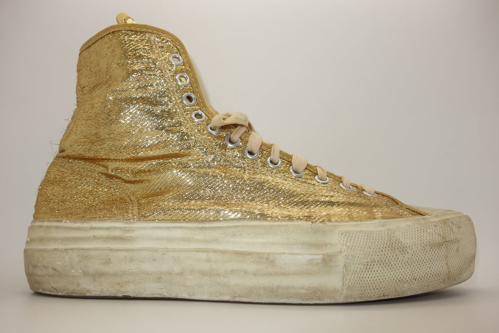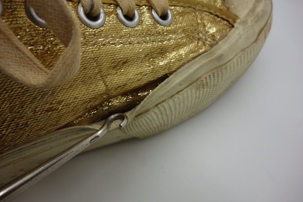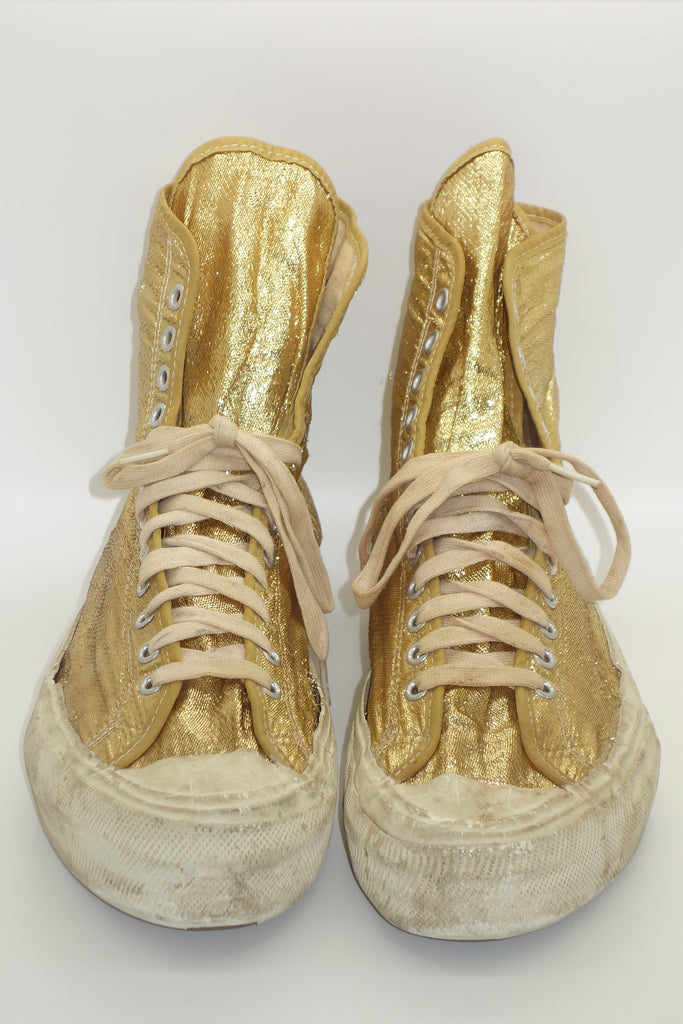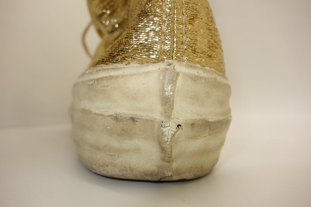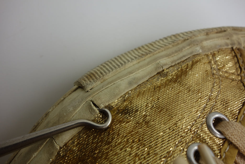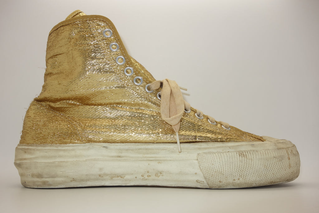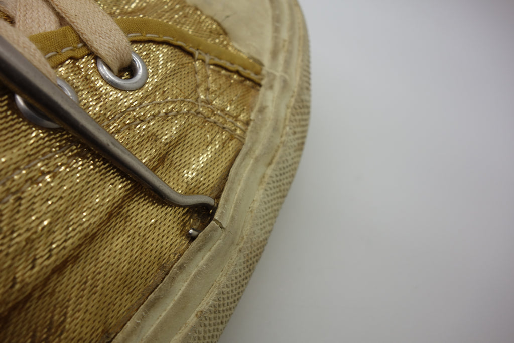 very good used condition. these are bespoke provide-your-own customs. sadly the rubber has perished in part over the years. the top layer of first foxing shows widespread curing/solidification, as does the second foxing, which are likely to crack upon bends. this material did not bond so well with the rubber & widespread separation from uppers has occurred & may continue. the bumper & toe caps are also brittle in part. the waffle & friction itself are unaffected however. the internal heel counter has stiffened but is intact. size 10 is written in biro inside the collar & im confident this is accurate. from experience these can be worn however they are likely to crack upon bends with unsightly loss of rubber chunks but thereafter will hold up to wear. wear at own risk!