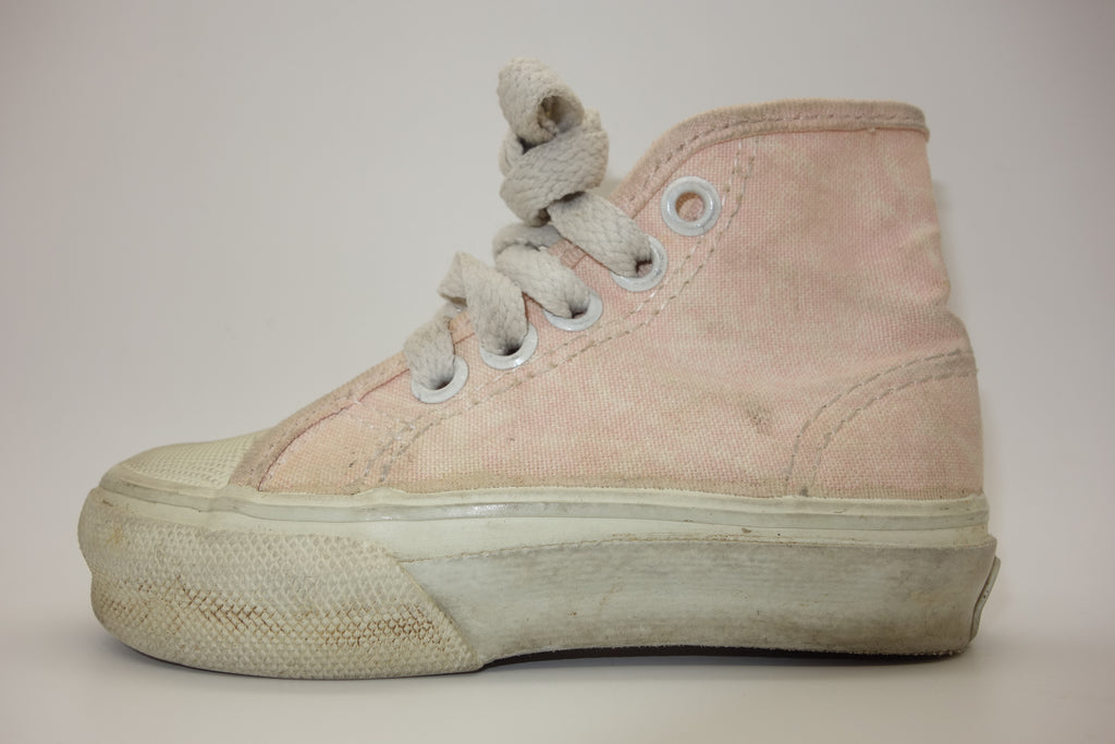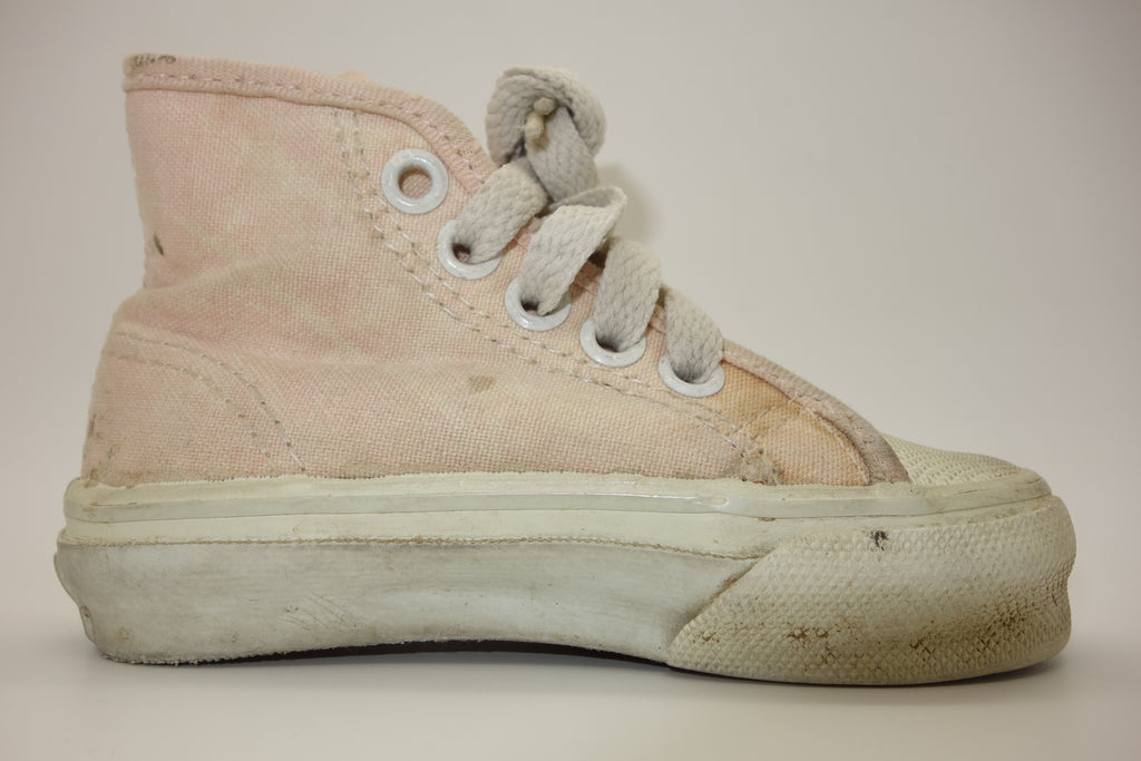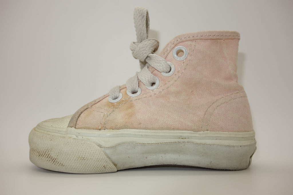 all rubber remains soft & felxible. the uppers have succumbed to age-spotting & appear as pink-ish mottled effect, almost like pink acid wash.