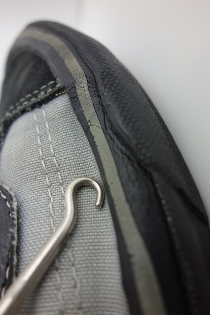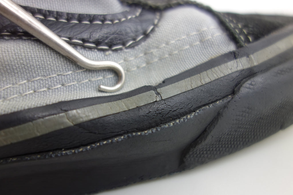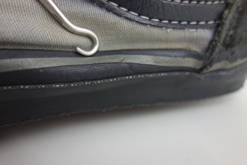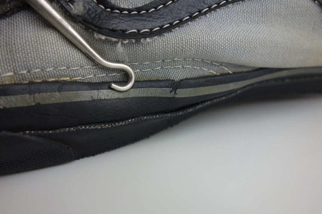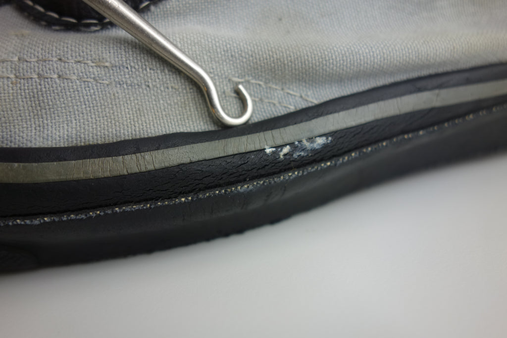 good used condition. rubber remains soft & flexible albeit for the grey foxing stripe which has hardened in parts, including the left toe. all black rubber is soft! the waffle is a bit crusty but not slick & under the top layer with be malleable. some wear to the internal heel counter lining & 1 or 2 splits to the counter itself however no breakdown. some splits to vinyl collar. size not visible but confident of US10.5 if not bigger. laces not original. the insole is hard in places & foam breakdown may occur but on the whole is soft.