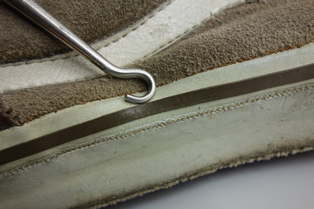 good used condition. all rubber remain soft & flexible with minor separation from uppers & stress cracking only. minimal crease splitting to vinyl collar. the padded tongue of mid-late 90s vans is prone to deterioration. the foam on these has completely perished which has leff black residue inside the shoe & will turn socks black