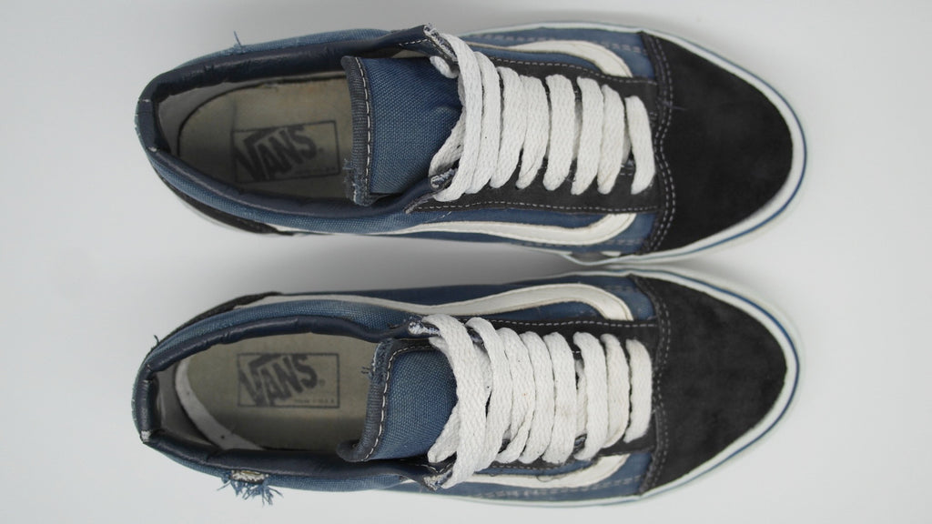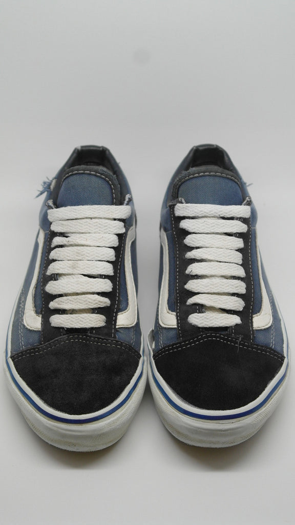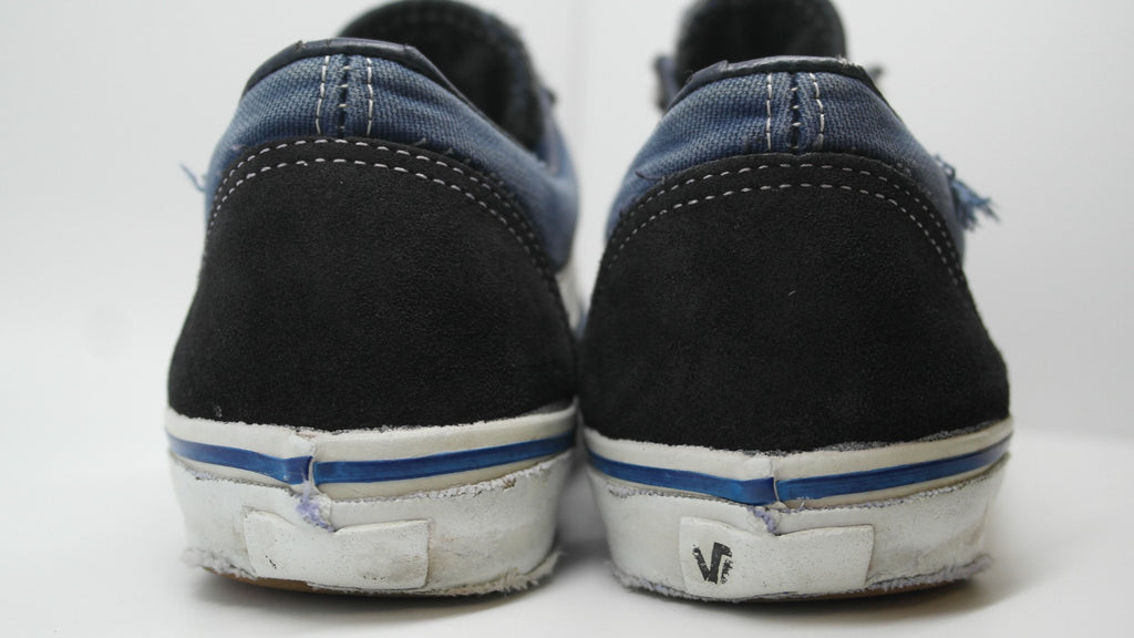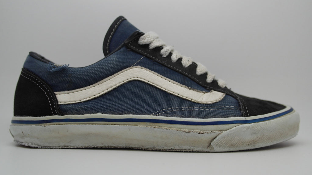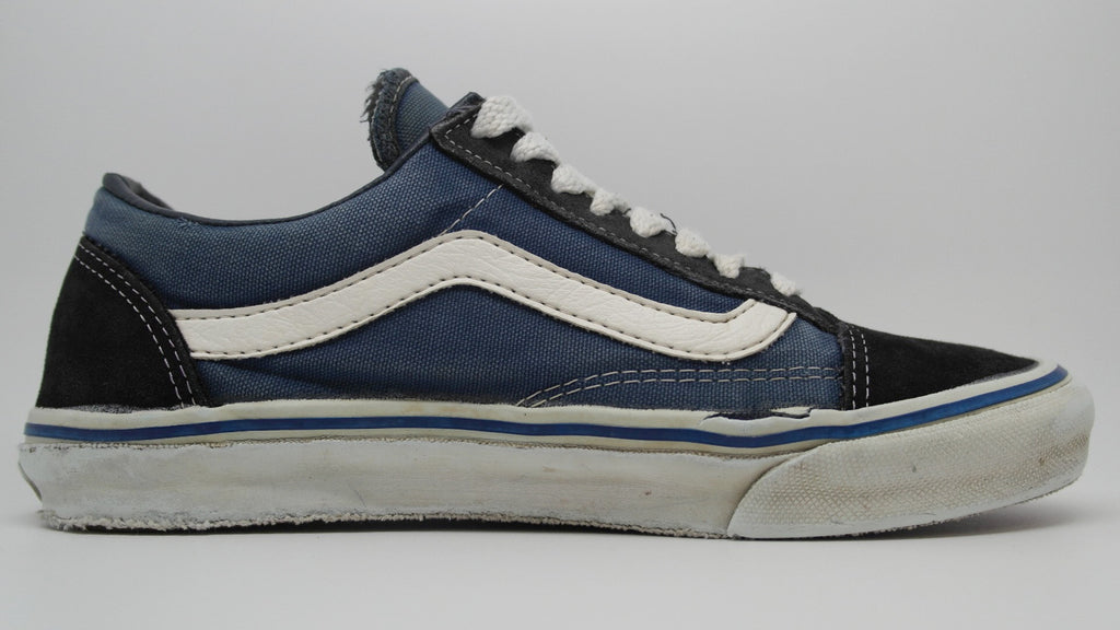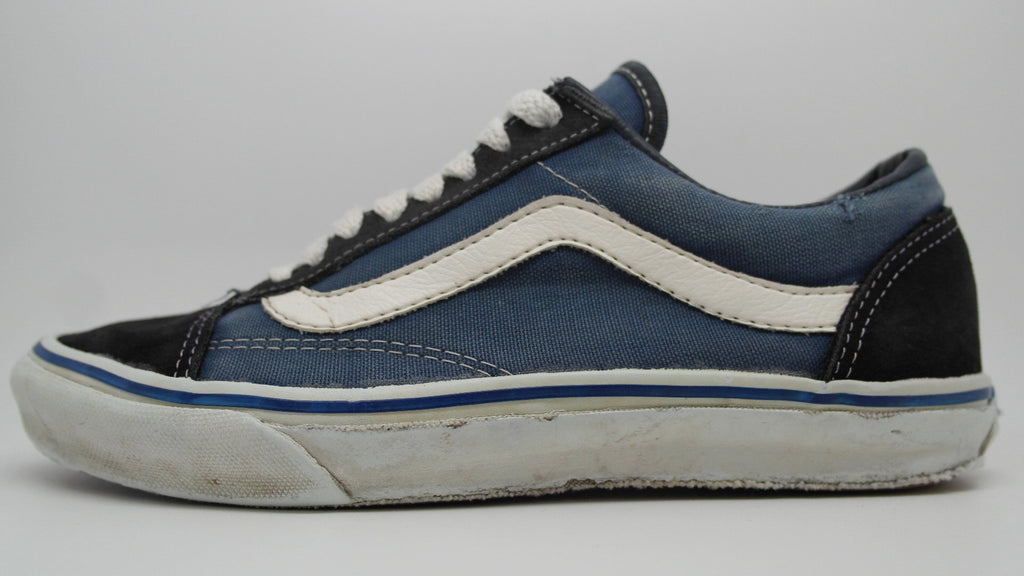 very good used condition. machine washed with resulting rubber scuffing & canvas fade. 1 significant area of rubber separation with uppers at medial left toe crease. some fraying to canvas at external collar & small exposure of foam. minor splitting to the vinyl collar. padded tongue era