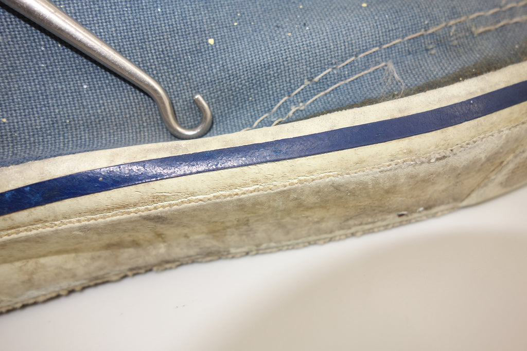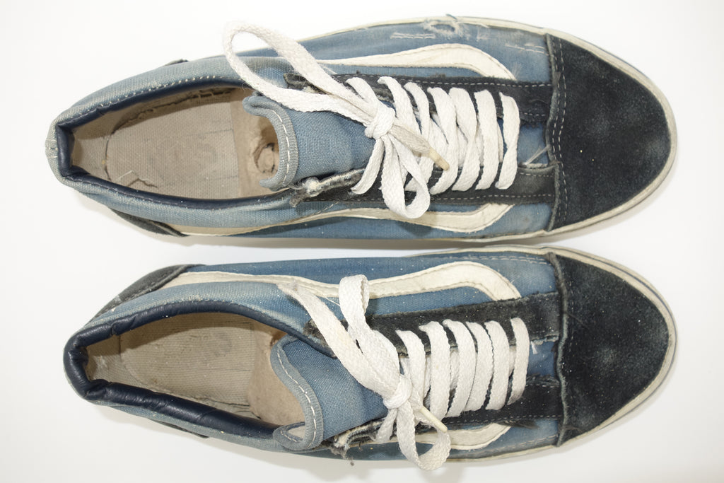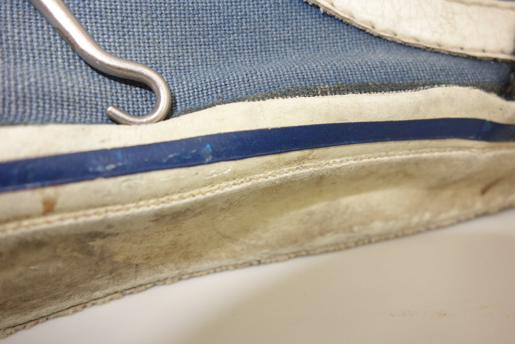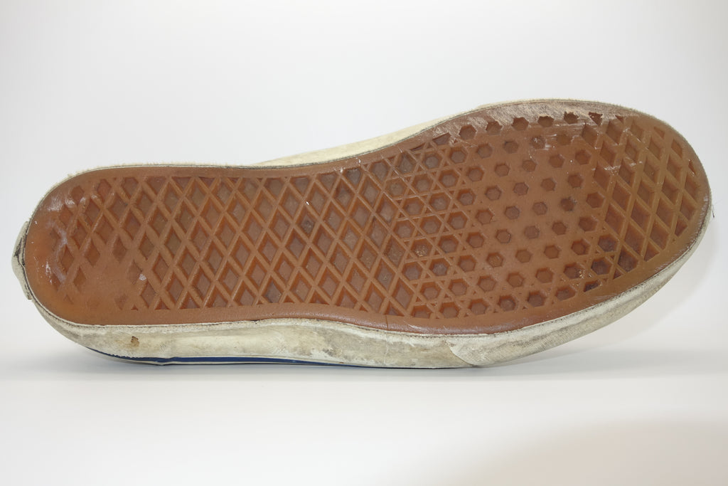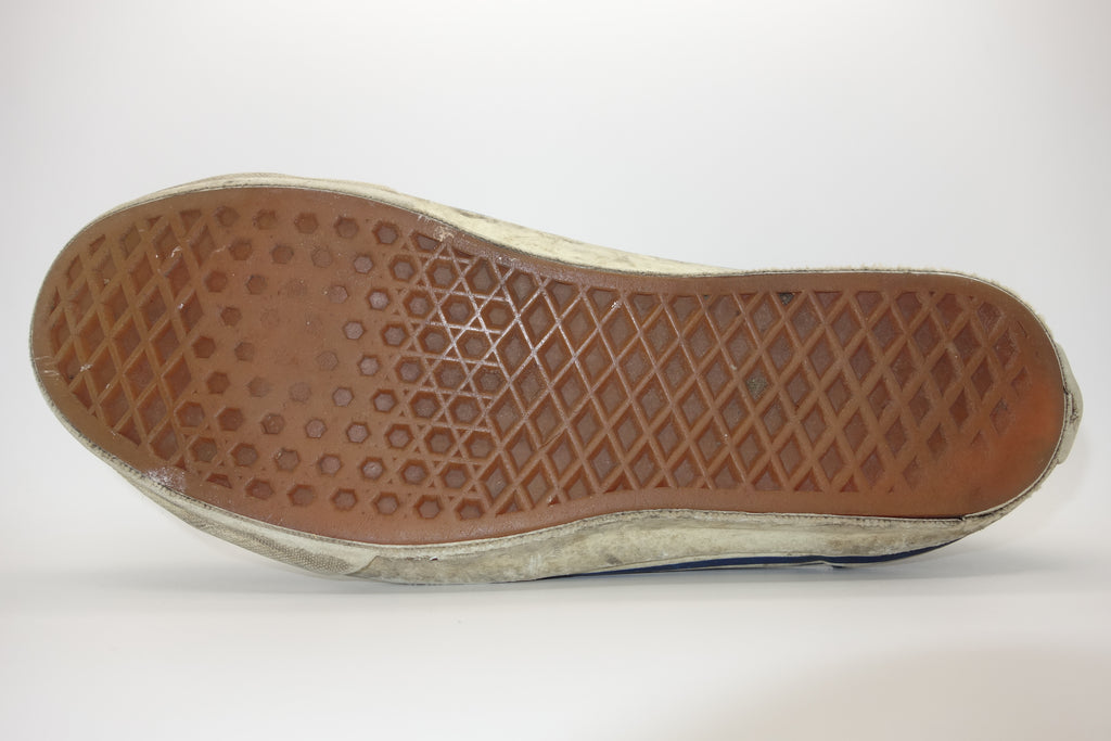 good used condition. were skated however remain structurally sound. rubber remains soft & flexible. ollie hole through top layer canvas however not through bounce-stitch reinforcemen. some splitting to top of vinyl collar on left shoe. pre-padded tongue era.
