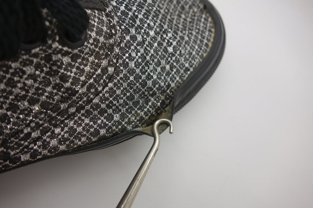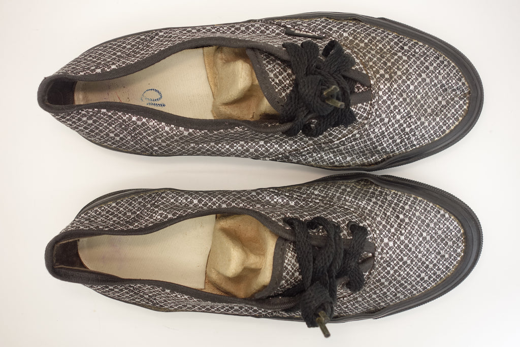 very good used condition. all rubber remains soft & flexible however its possible the adhesive meeting uppers has oxidised. minor separation shows however from experience this is likely to continue across the shoes, especially at the crease area. possible re-glue surgery could repair however will it hold over time?? wear at own risk. dunno what one calls this textile but the uppers themselves are textured glitter.