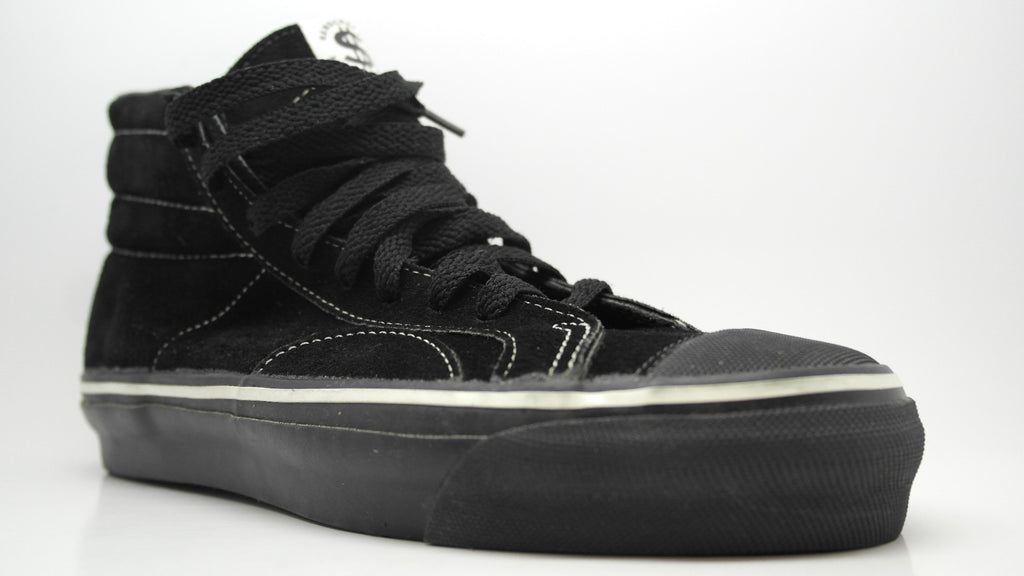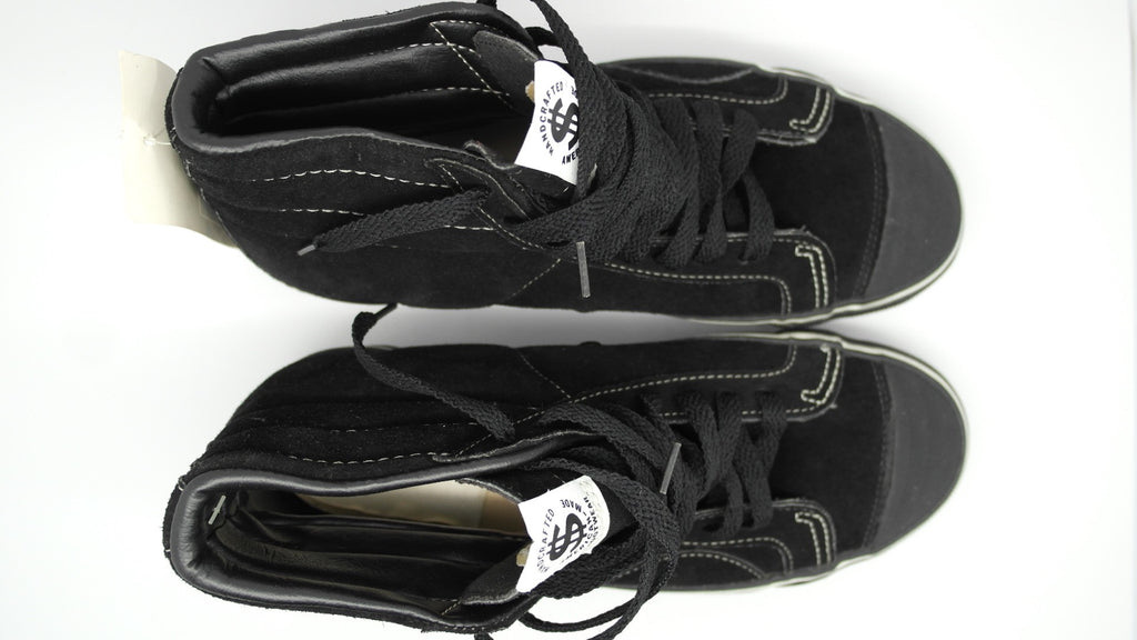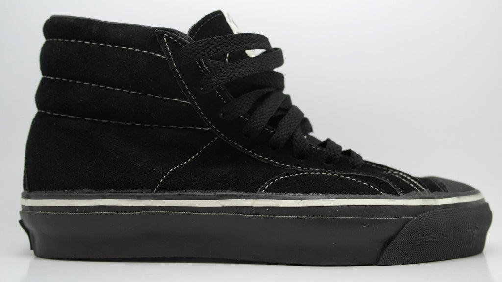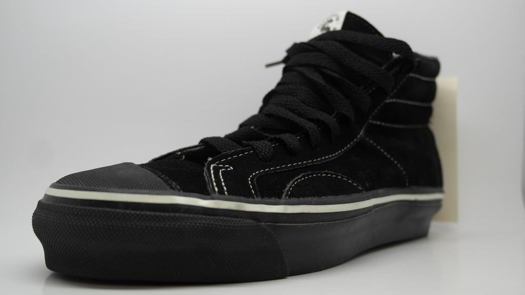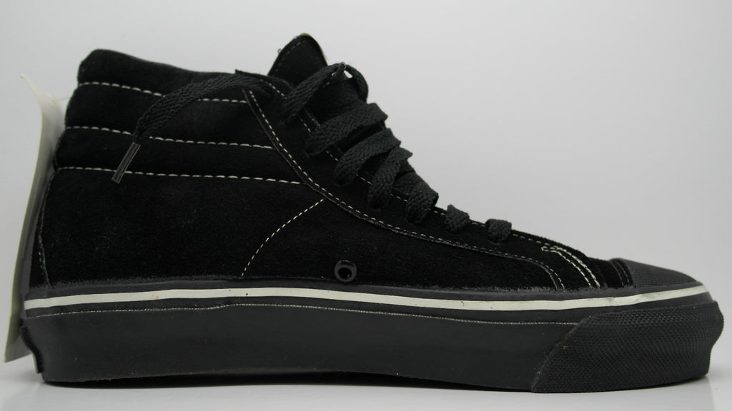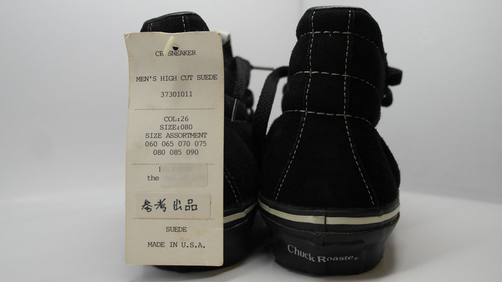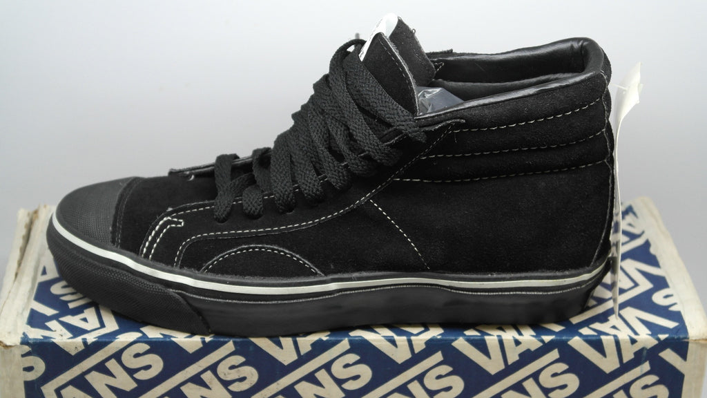 incredibly rare & absolutely mint style #37 vans private label for japanese denim house chuck roaste circa 89/90. totally devoid of vans branding but unmistakebly van to the core! unique CR heel tab, heel pads, & tongue tag..... & the quality, comfort & durability of american made vans. rare gum e sole & arch eyelet perforation. size is not listed & box is for a low rather than high top but these came from CR himself & they are US8.