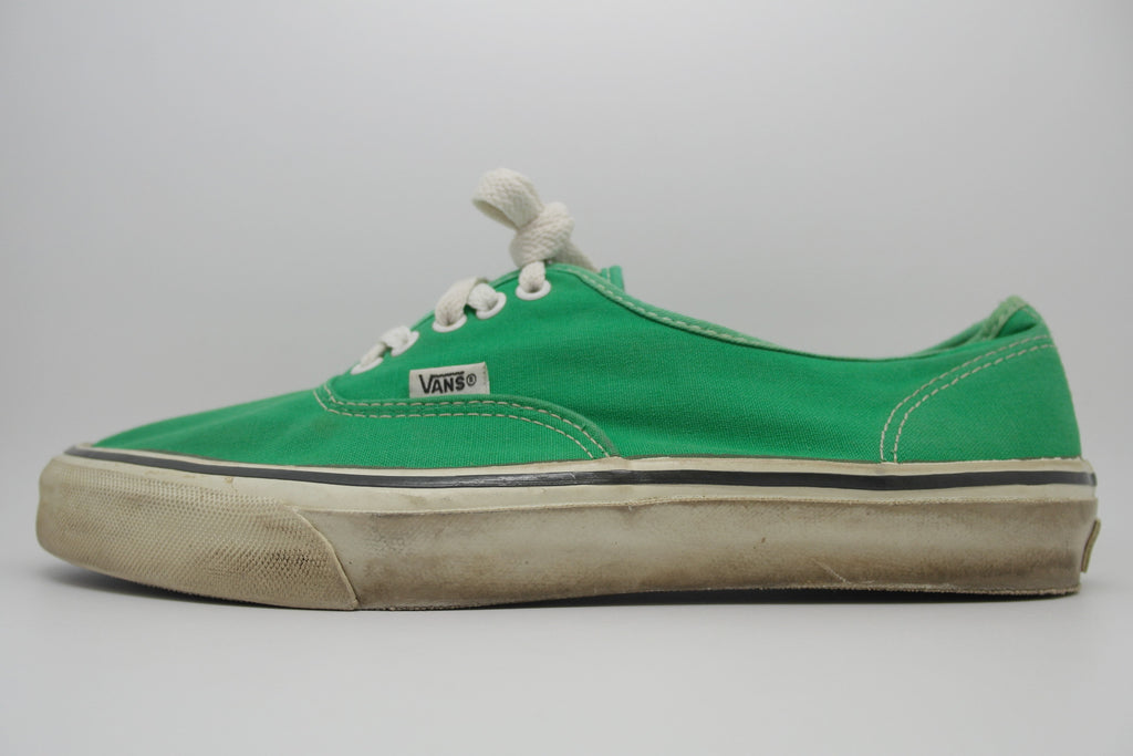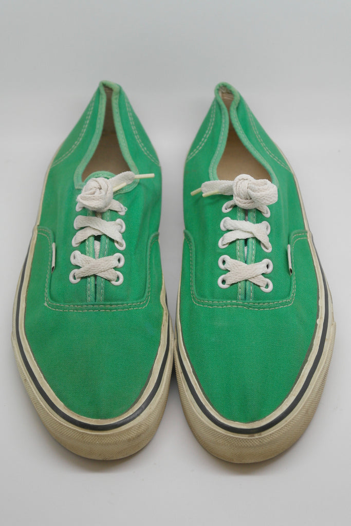 very good used condition. the left shoe is almost unworn. the right shoe show abrasions to the midsole which will not effect wear. the first foxing on the right shoe does show minor hardening but mostly to the heel & to a small area just above the foxing stripe only. there are 2 small cracks medial right toe crease which will chip away & possible separate. overall they will hold up to normal wear.
