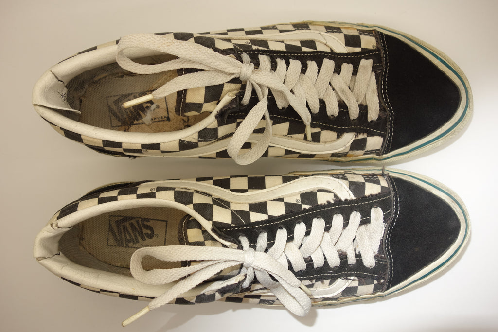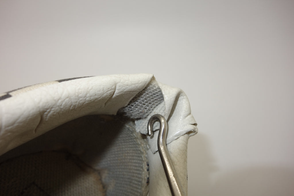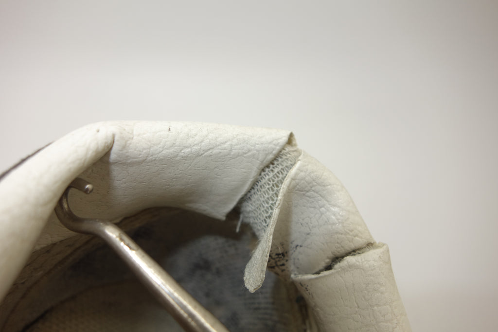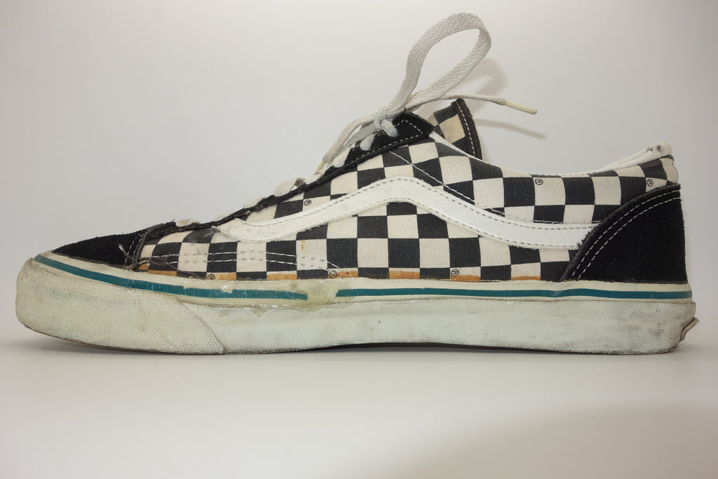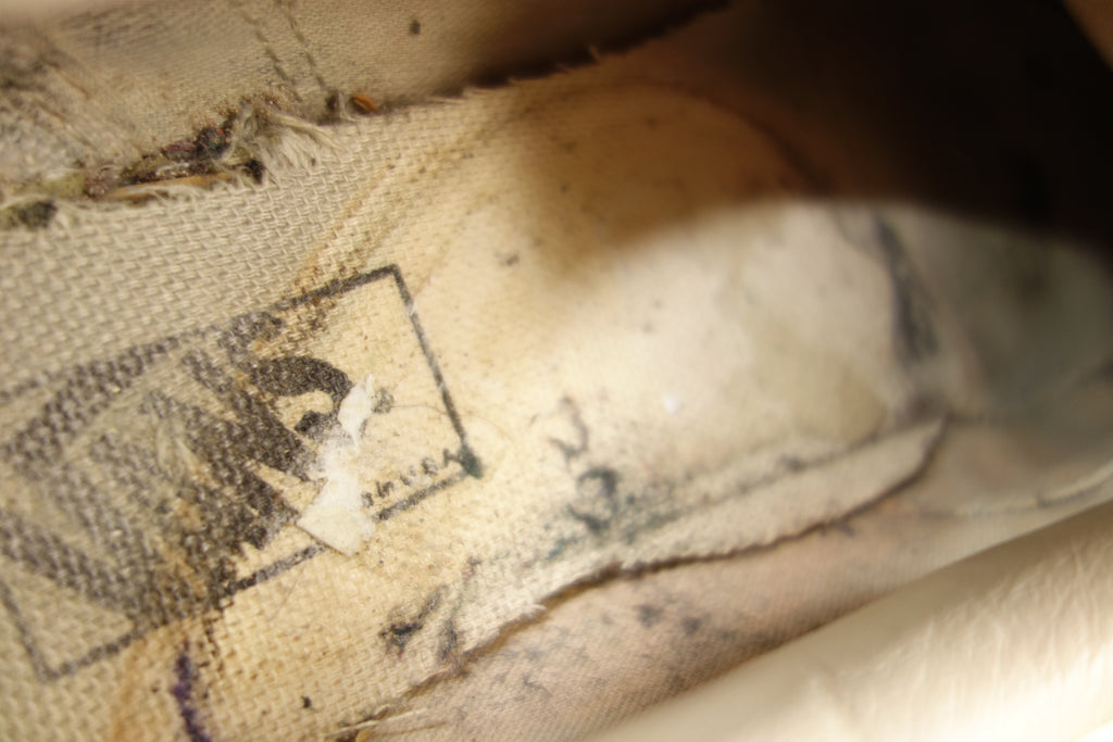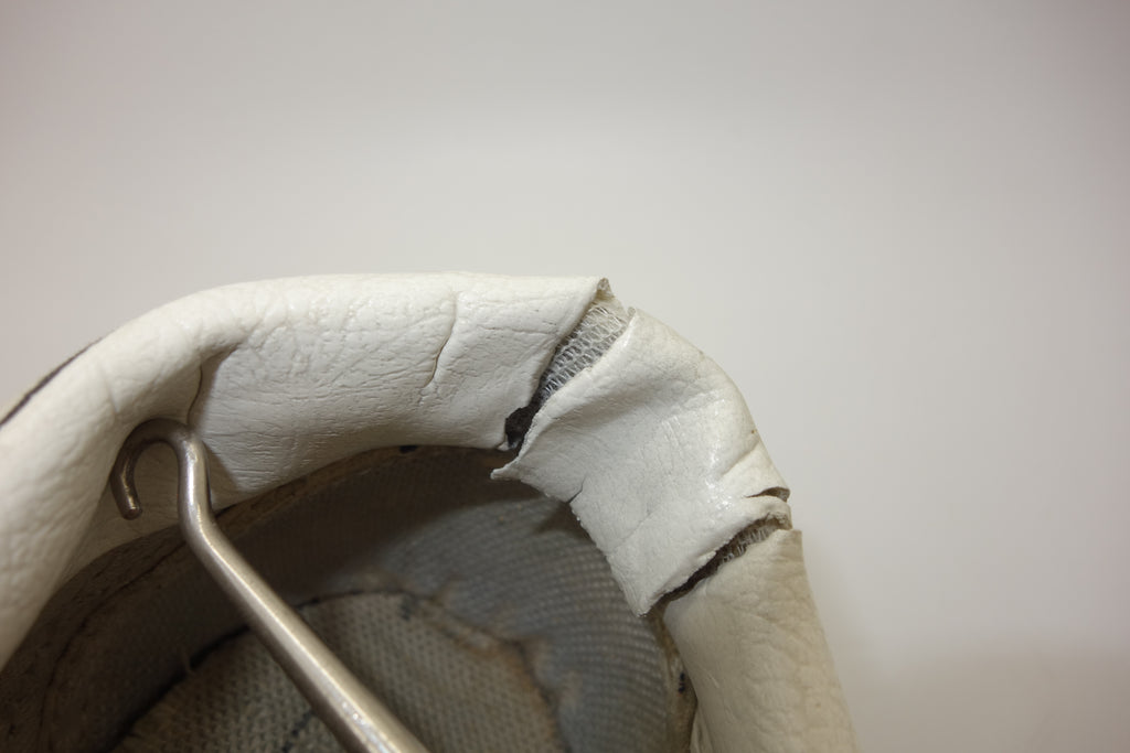 good used condition. sadly the foxing stripe has cured/solidified & will continue to crack, flake away & erode into the first foxing below. the toes have almost exclusively brittle however the bumper, friction & waffle itself are unaffected. rubber loss will continue at the bends & however unsightly they will thereafter hold up to normal wear. the vinyl collar shows splitting mostly to the base however foam is not exposed. wear at own risk!