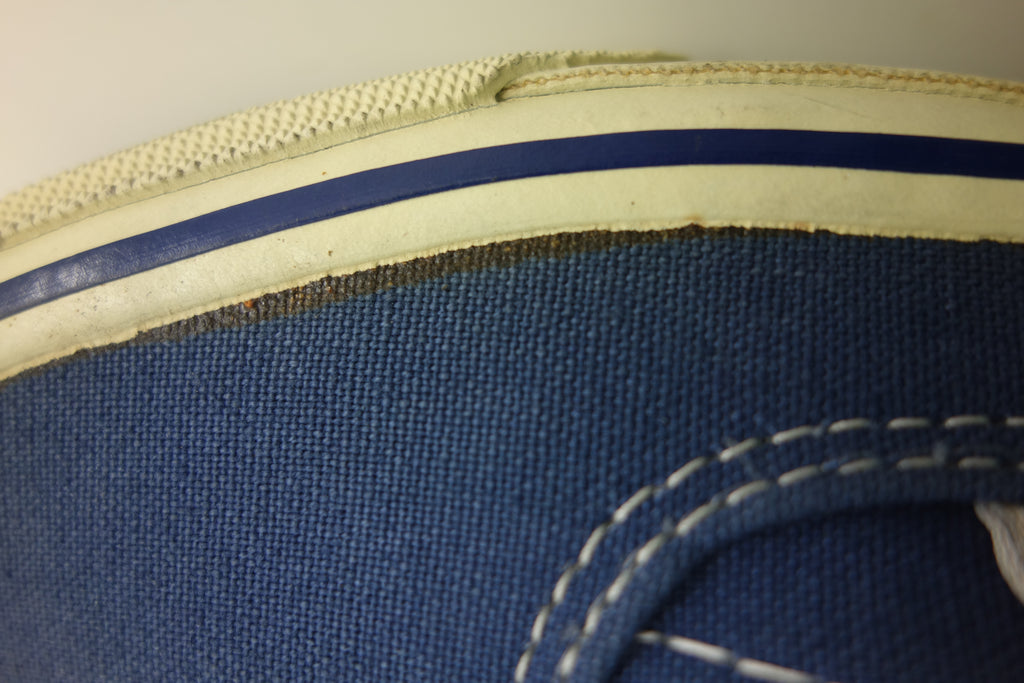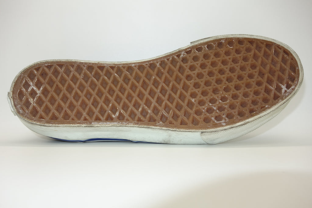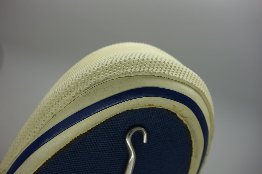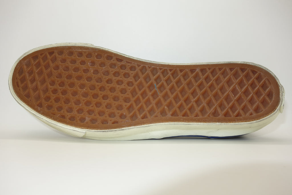 unworn however these were switched at birth & later matched together. the left shoe with the heel insert is slightly earlier than the right shoe with the box logo. the right shoe also looks marginally narrower than the right & is a little misshapen, so the pair may feel unusual. over time these anomalies should normalise with wear. the right shoe however also shows significant midsole yellowing. all rubber on both remains soft & flexible however the adhesive overglue does show rust-coloured oxidation which may lead to premature separation from uppers at bends. the right waffle is also a little discoloured but not hard or slick. wear at own risk!