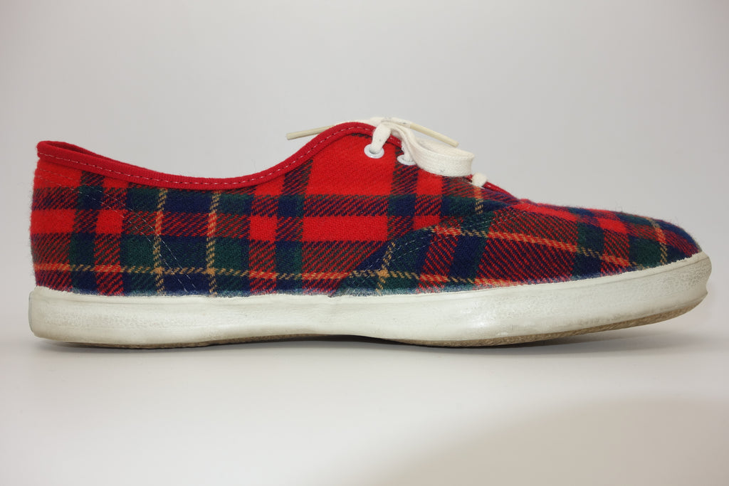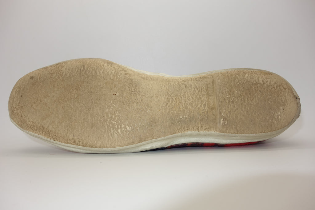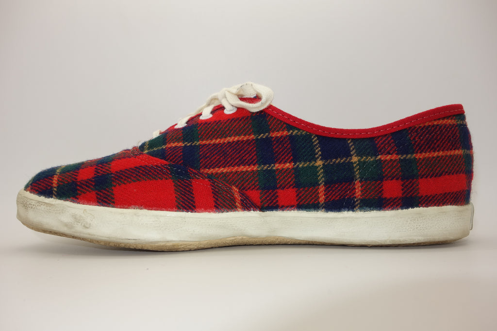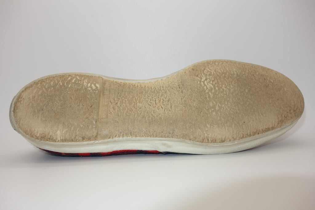 pre-vans, pre-van doren, #style 19 possibly from the late 60's but more likely early 70's. an incredible museum-worthy relic! sadly the rubber has perished in part over time. the rubber friction shows hardening throughout & remains brittle, but only a thin area where it meets the uppers. below that high line the remaining sidewall remains soft & flexible on the whole except. this is a collector piece and is truly deserving of preservation! vans from this era may surface again but very rarely unworn & in a strong womens size like this, which are far better for display. from my experience however if worn i anticipate the midsole to erode on both shoes half way down the midsole. the underside outsole however remains soft. thereafter they may have a long life but for sure these come with the warning to WEAR AT OWN RISK!