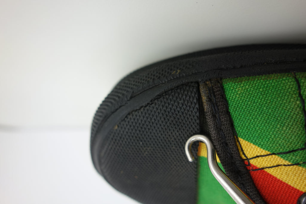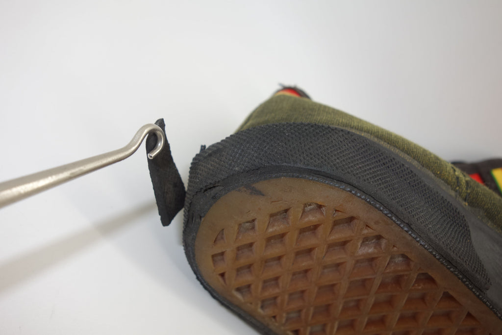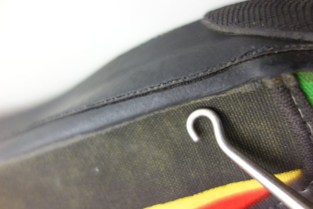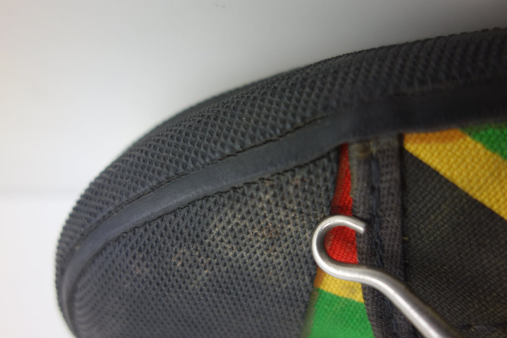 good used condition. all rubber remains soft & flexible despite widespread stress cracking from crush injury. both heel tabs are essentially falling off.