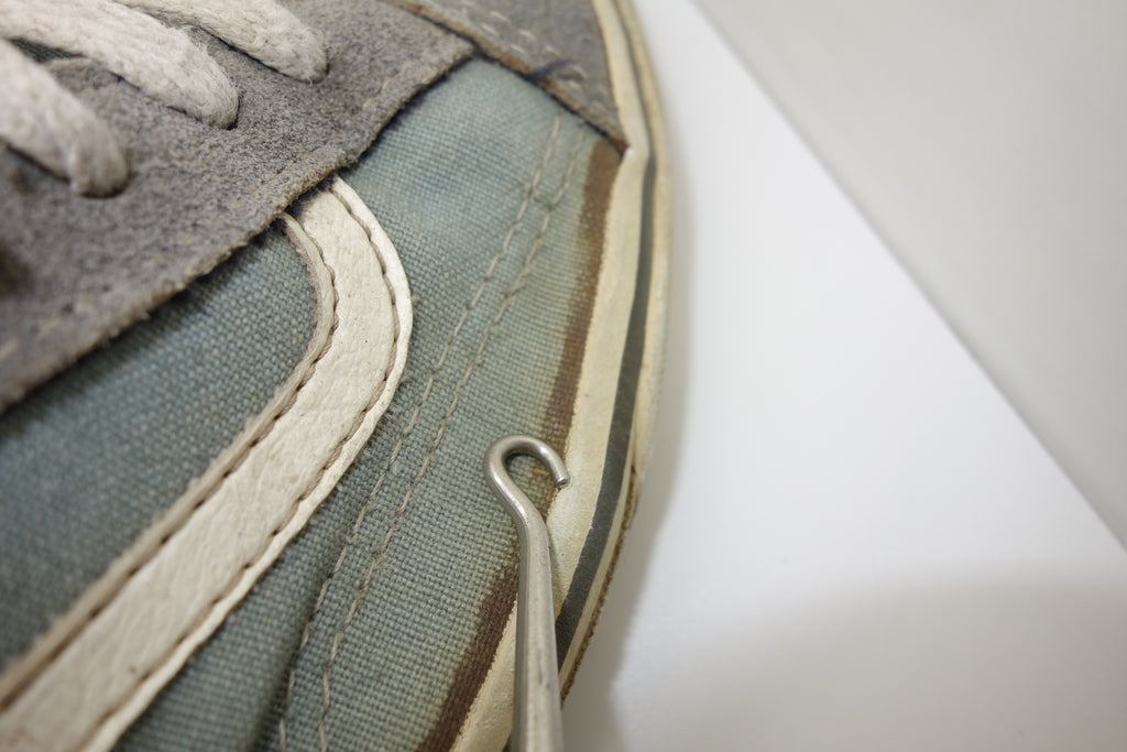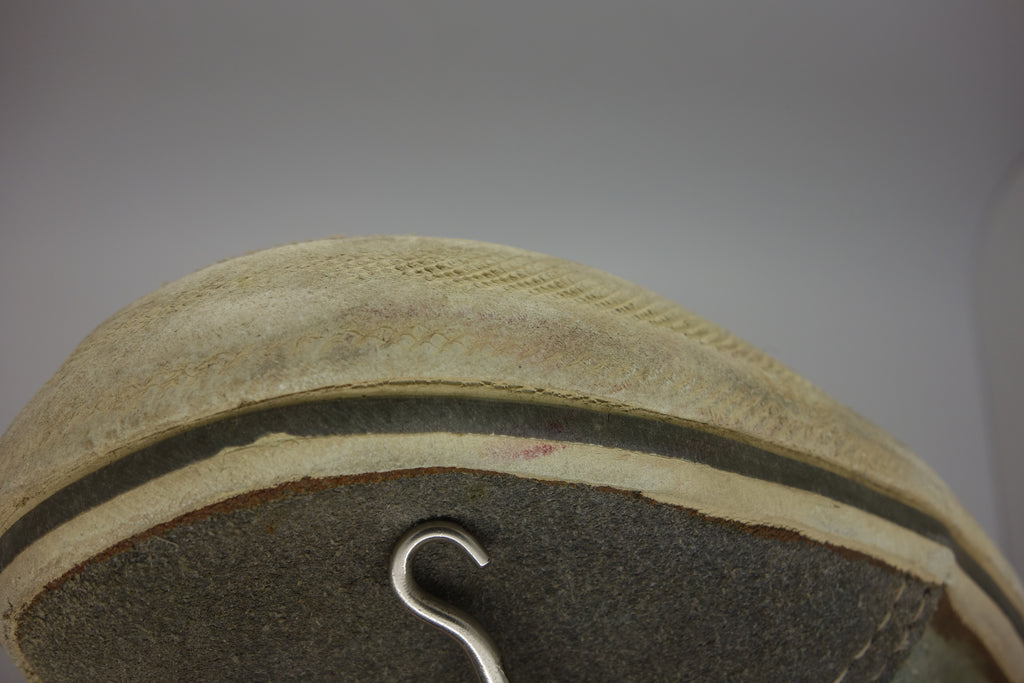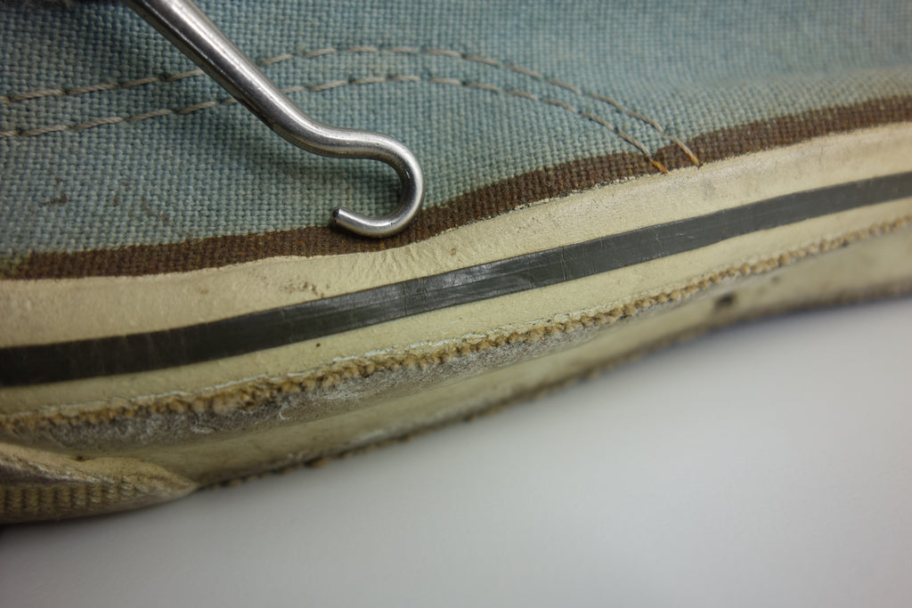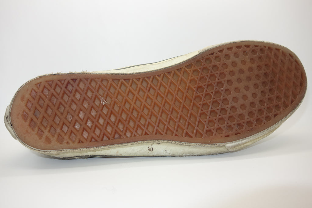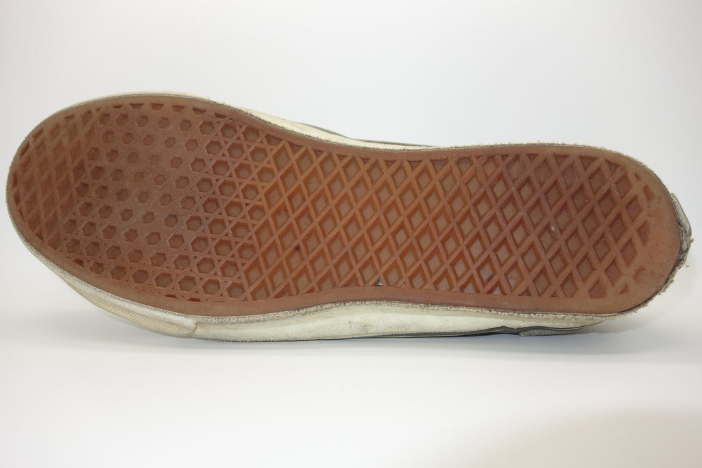 excellent used condition.... however the rubber first foxing (stripe area) has cured/solidified & will crack & chip away. the bumper & waffle are unaffected however from experience these will crack immediately upon bends & leave a trail of rubber. they will look unsightly but then hold up to normal wear. there is a small bump from the shoe mould which can be seen through the insole which may cause discomfort. wear at own risk!