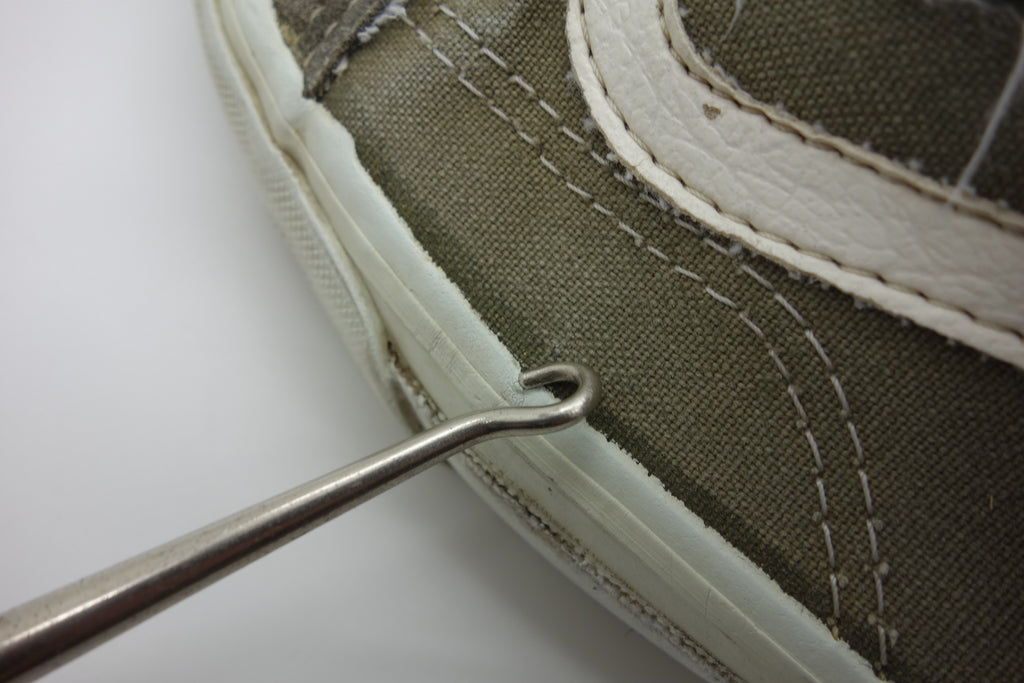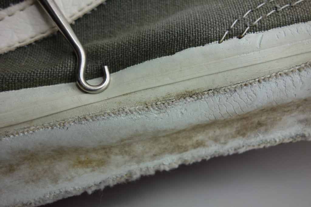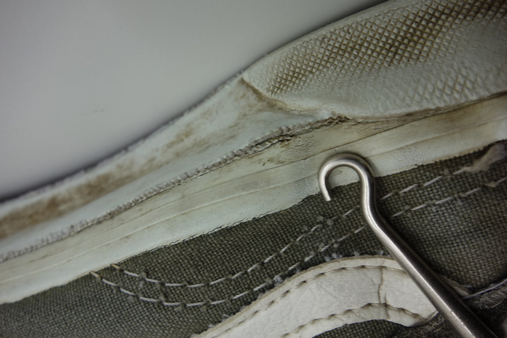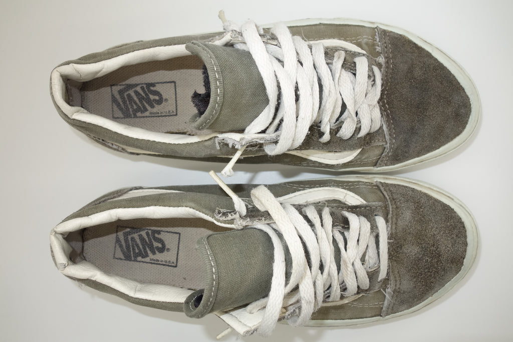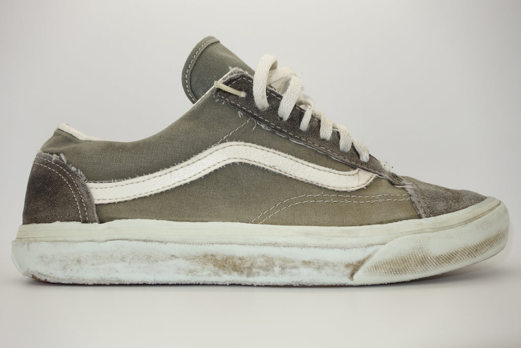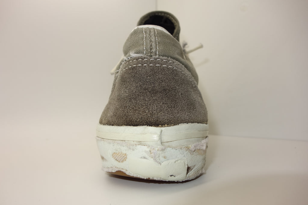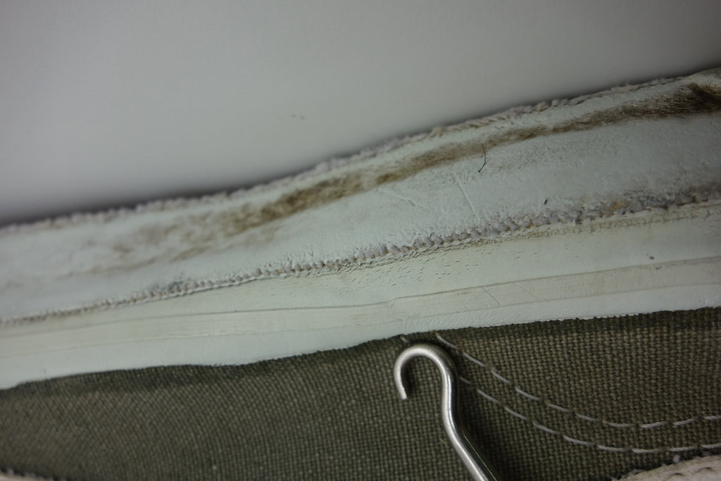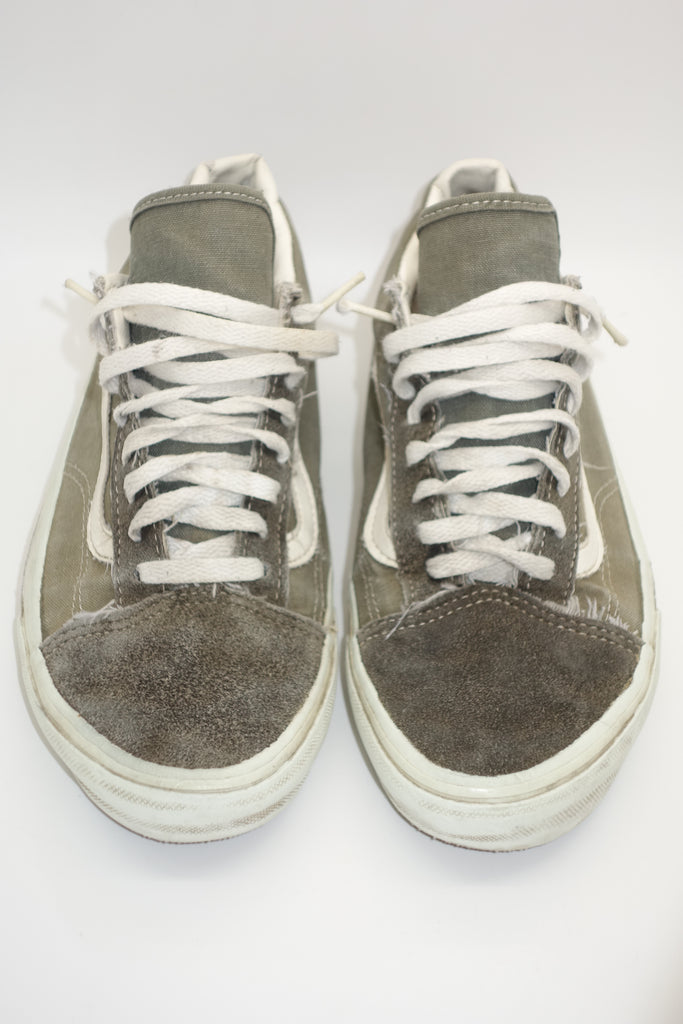 good used condition. the first foxing (stripe area) has cured/solidified & will continue to crack & flake away. the friction & waffle itself are unaffected.... apart from the heel repair which has hardened only in the lighter stained area. these will hold up to normal wear however with loss of rubber chunks upon bending zones & pressure points. wear to internal heel counter lining however the plastic is intact. the padded tongue of mid-late 90s vans is prone to deterioration. the foam on these has completely perished which has leff black residue inside the shoe & will turn socks black. some wear to insole at balls of feet