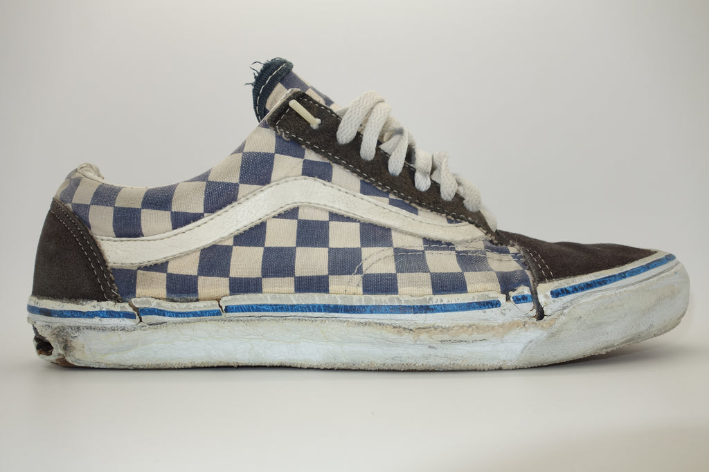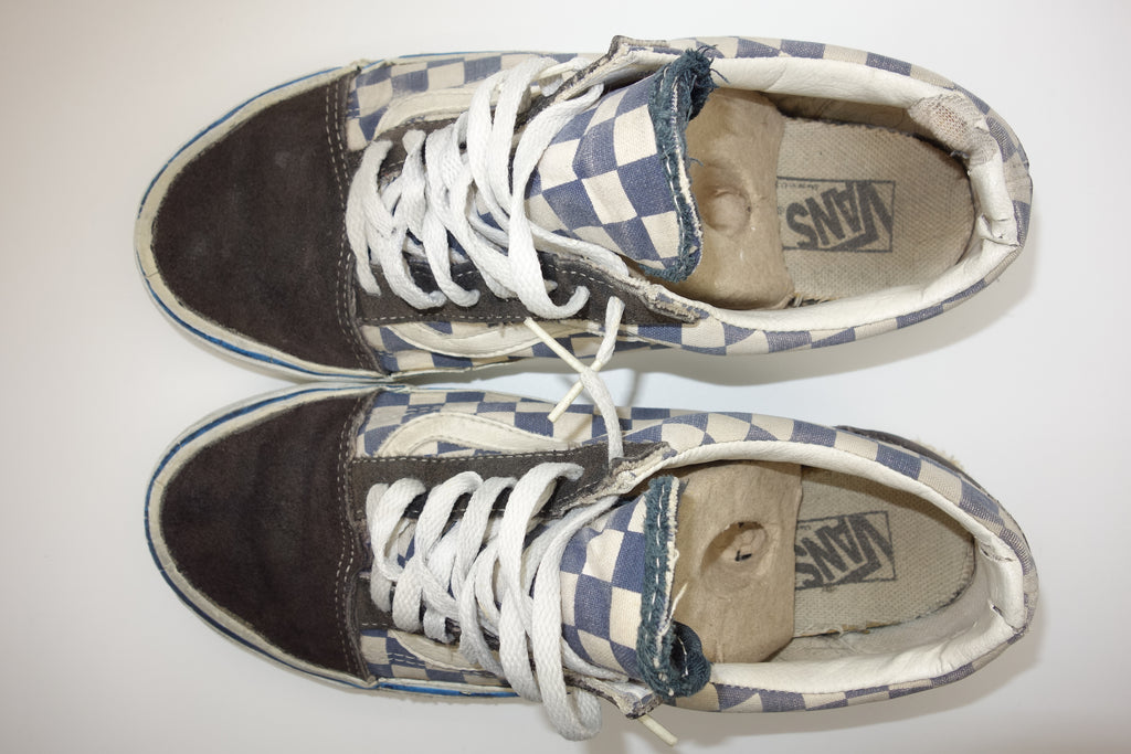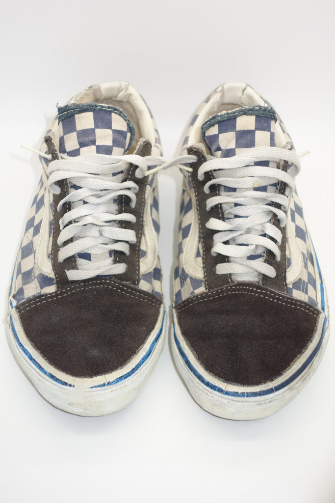 blue/white checkerboard suede/canvas