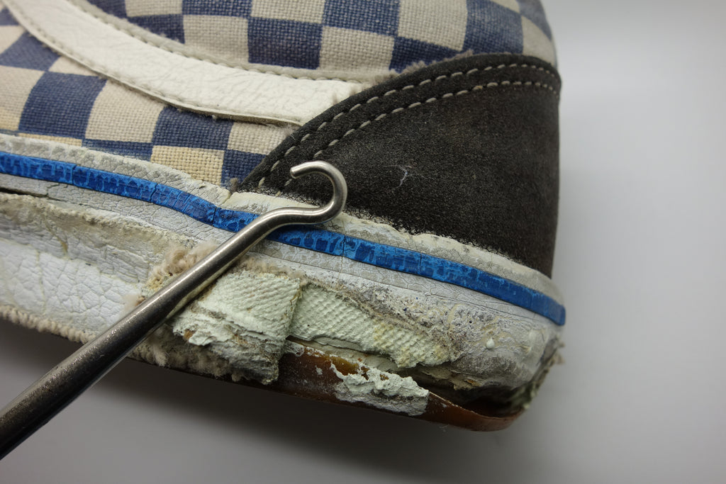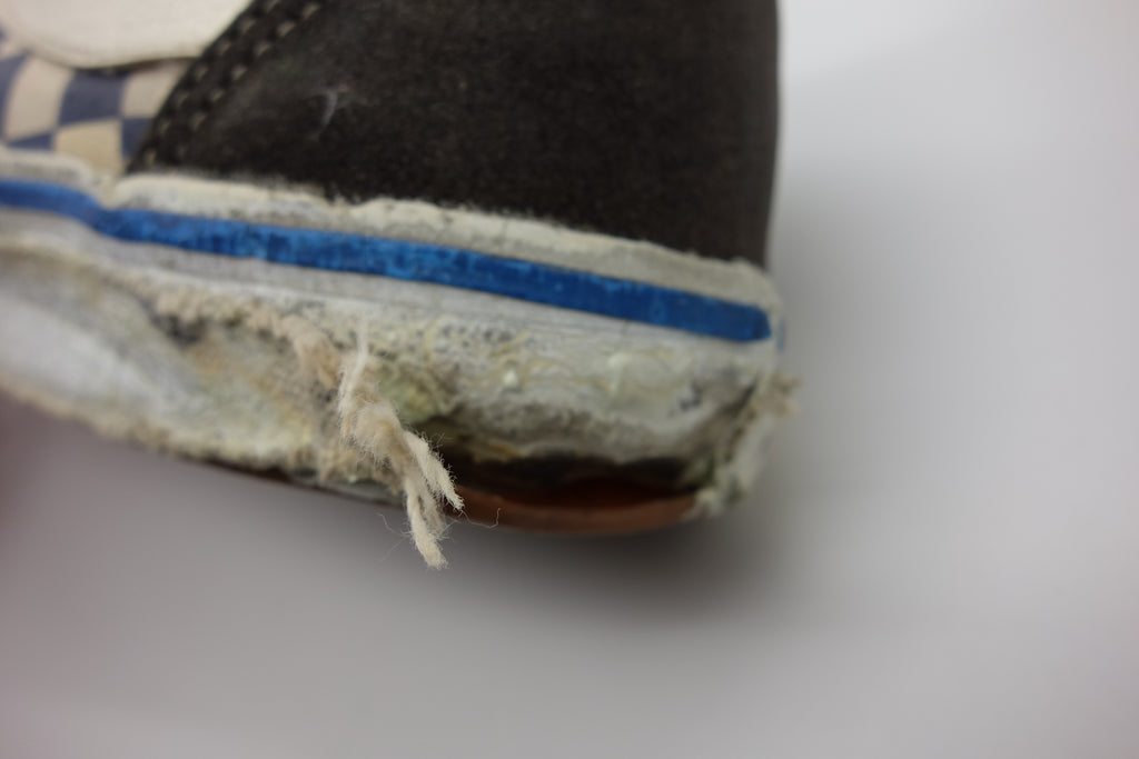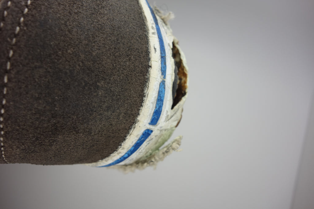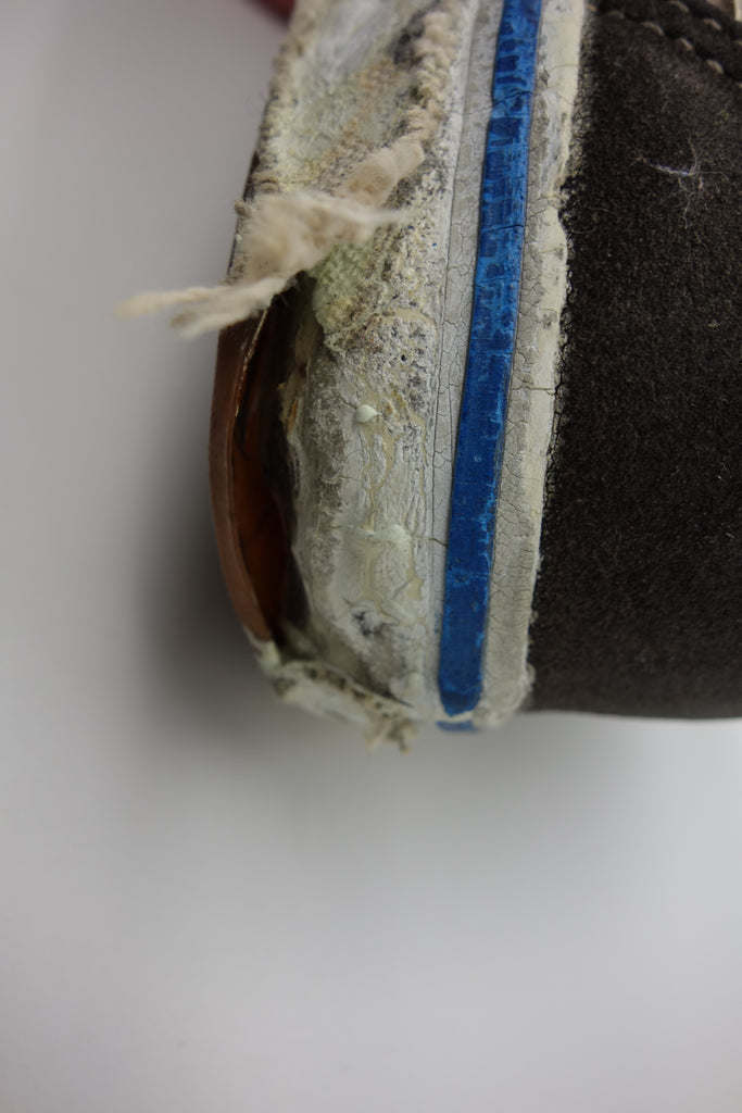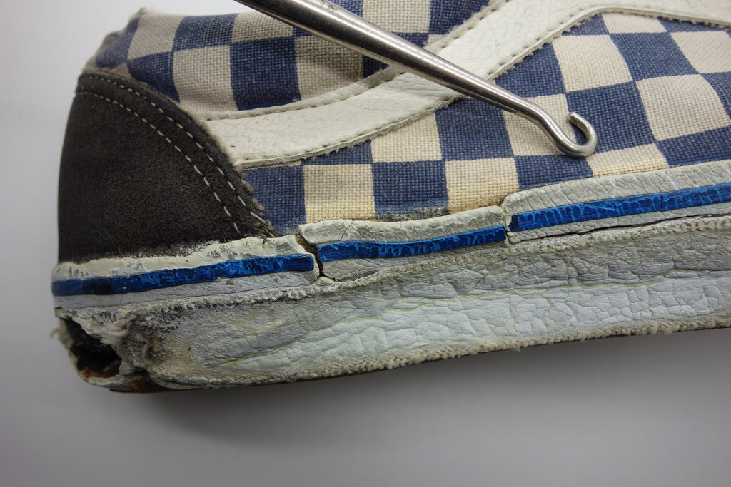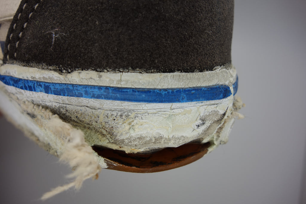 the white rubber has almost completely cured/solidified & these are pretty much beyond wear! the first foxing (stripe area) & the friction above the waffle ridge is brittle, will crack & flake away. brittle areas will essentially shatter & leave a trail of rubber. the waffle is slick & lower friction may hold up to normal wear with considerable loss of rubber chunks. wear at own risk. collectors item only