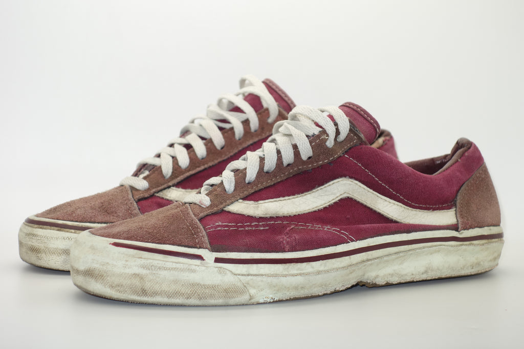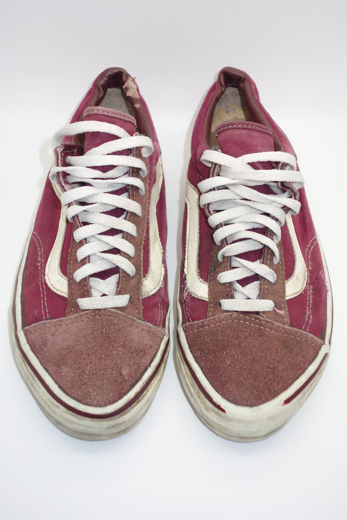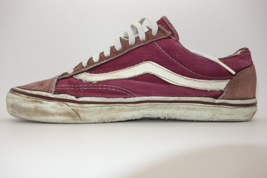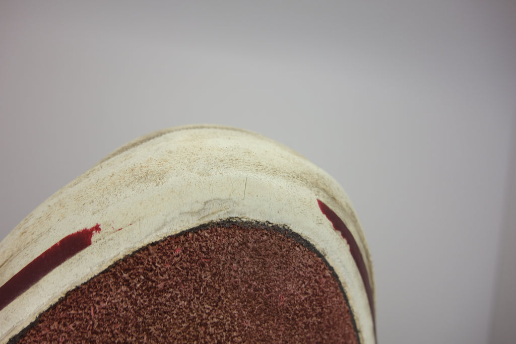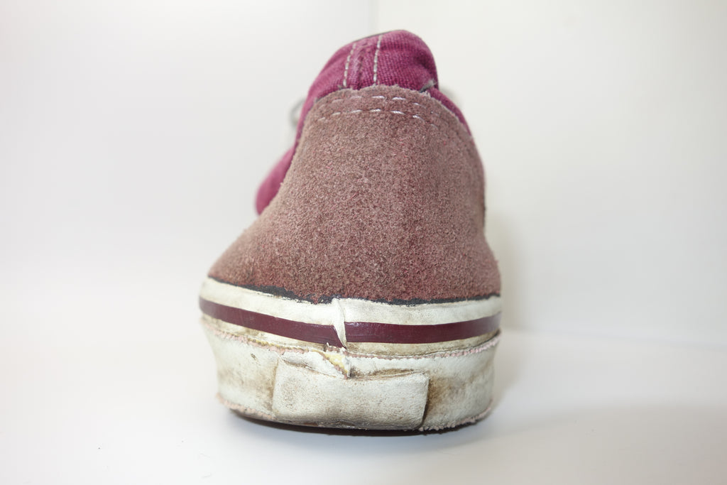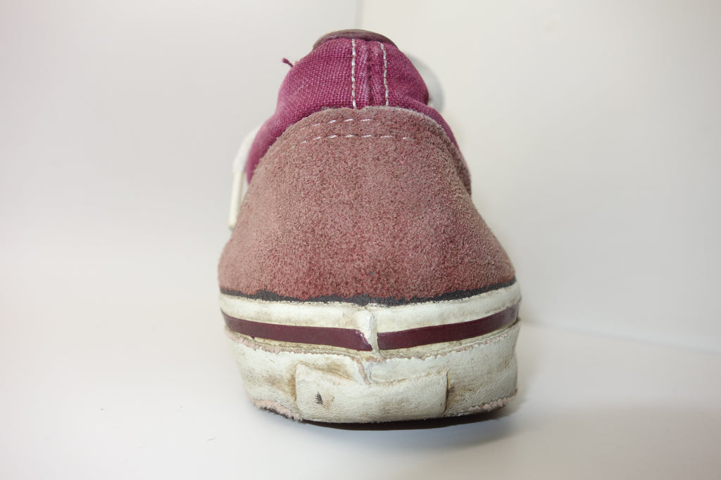 decent used condition. all rubber remains soft & flexible except for 1 tiny area at the left toe, which shows a hairline crack. the waffles show significant wear & erosion of gum due to bike pedals. some wear to the right vinyl collar. minimal wear to internal heel counter lining & but counter itself remains intact. well worn but well loved & structurally sound. size not visible but very confident of US9