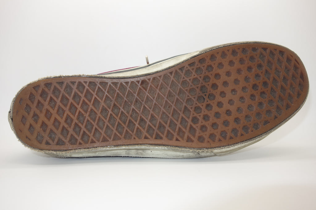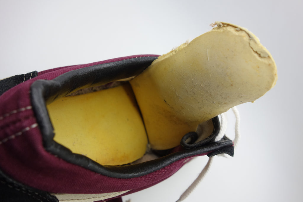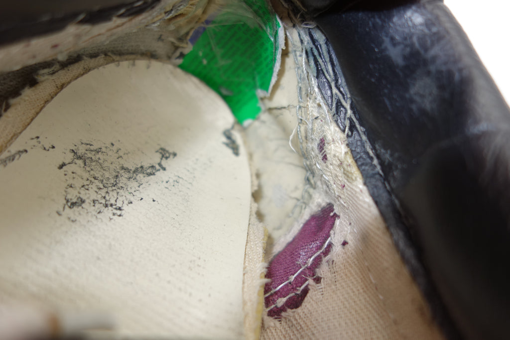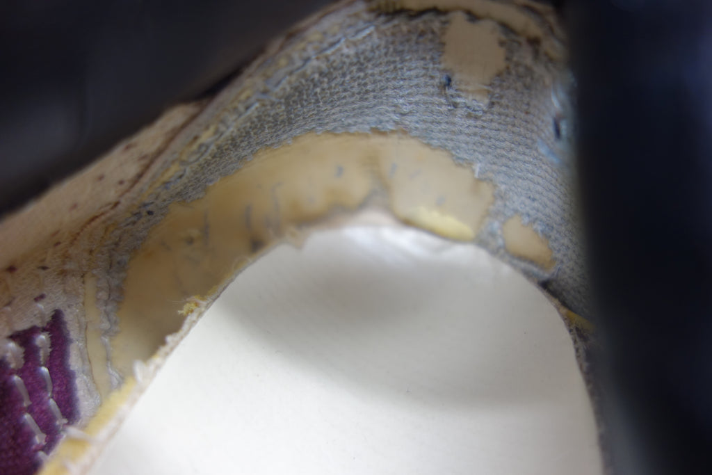 very good used condition. all rubber remains soft & flexible. minimal wear to internal heel counter lining on the left & plastic counter shows breakdown on the right shoe, with diy cardboard(!) repair. this should not effect comfort & longevity significantly. worn but well loved & structurally sound. the left insole has been peeled back to the footbed beyond the arch, however sits in place & wont effect wear. laces not original