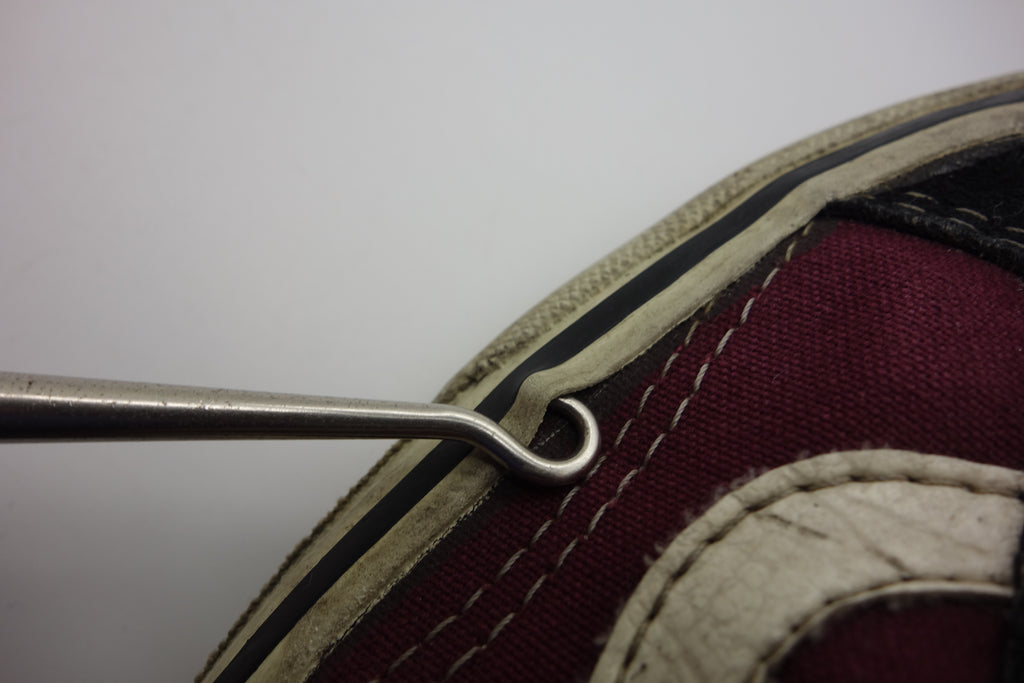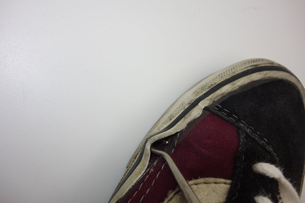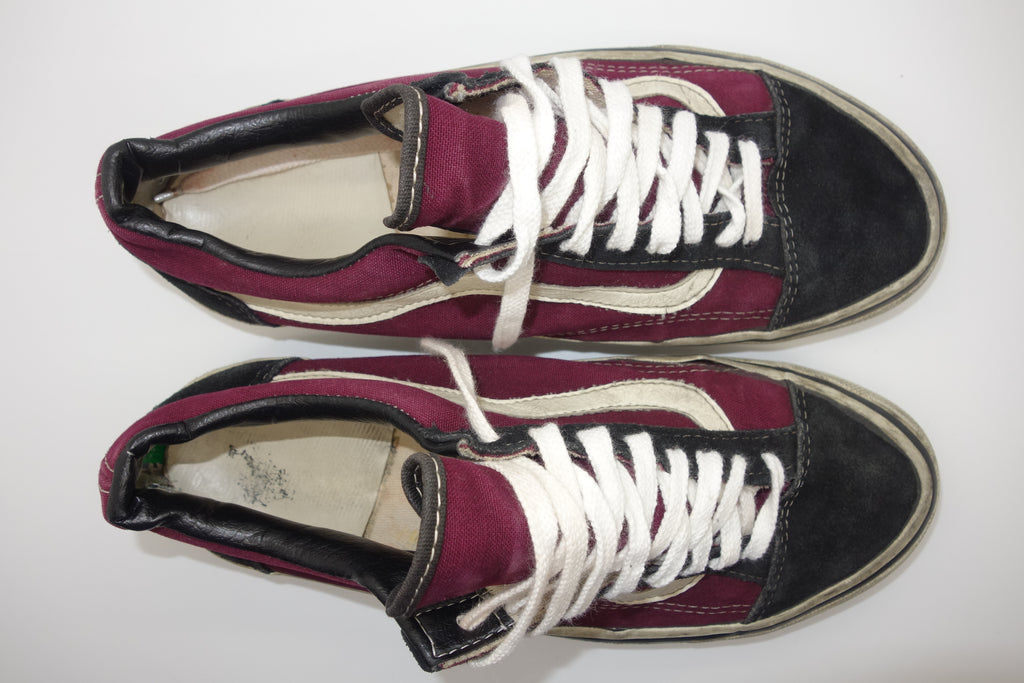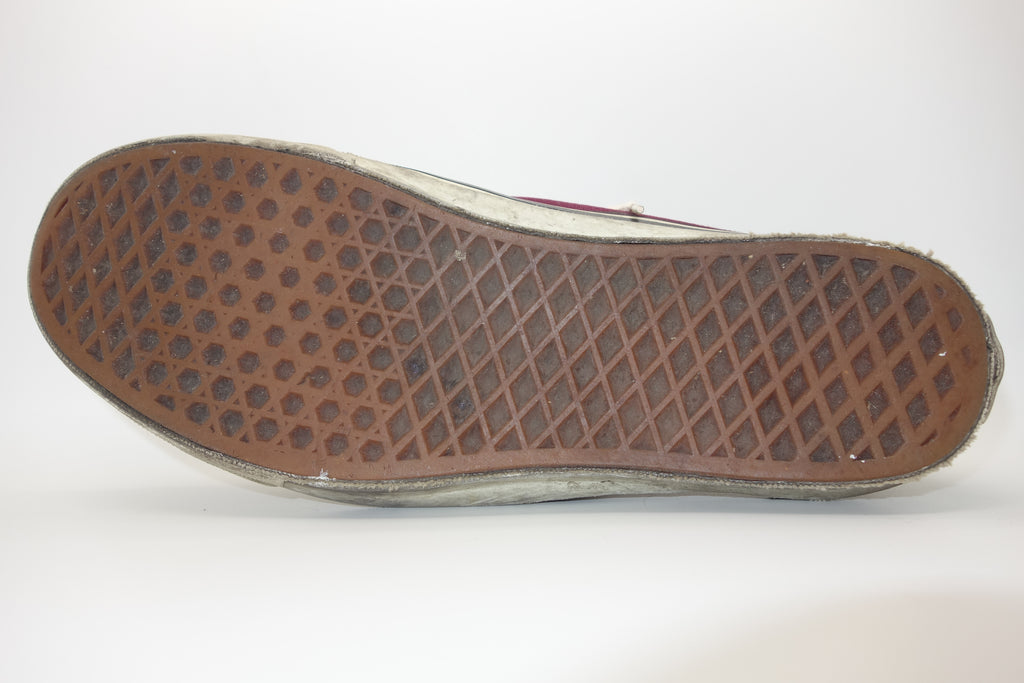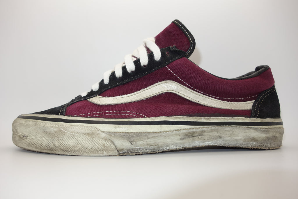 very good used condition. all rubber remains soft & flexible. minimal wear to internal heel counter lining on the left & plastic counter shows breakdown on the right shoe, with diy cardboard(!) repair. this should not effect comfort & longevity significantly. worn but well loved & structurally sound. the left insole has been peeled back to the footbed beyond the arch, however sits in place & wont effect wear. laces not original
