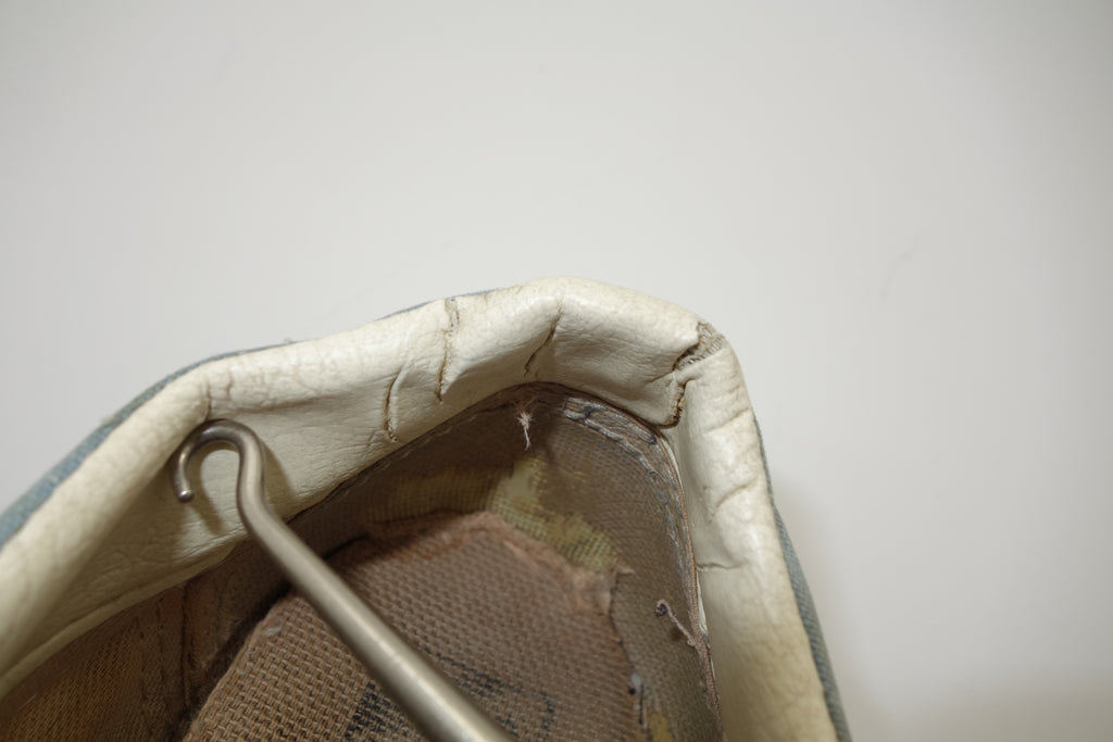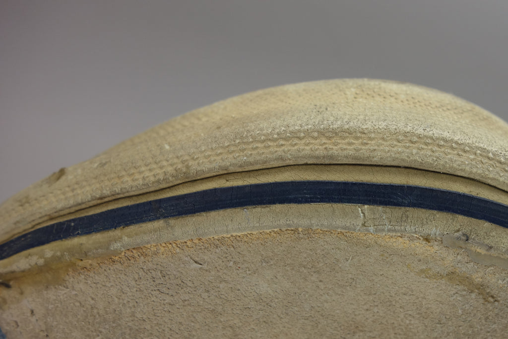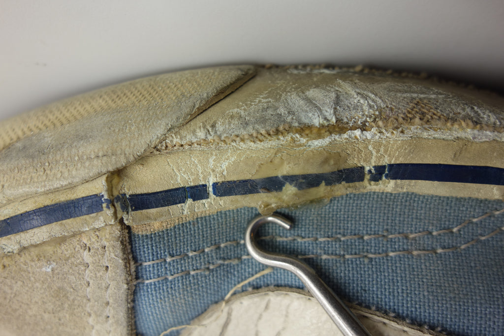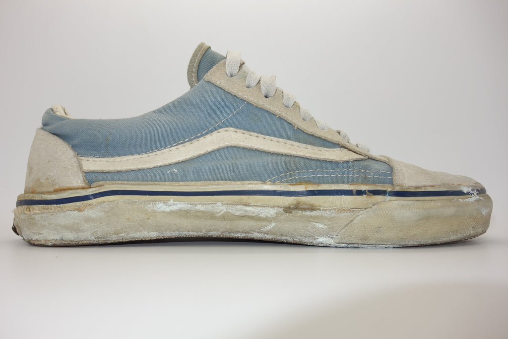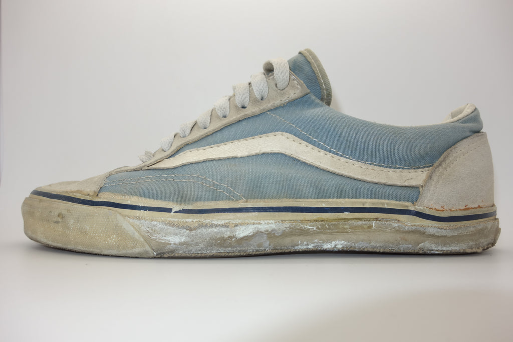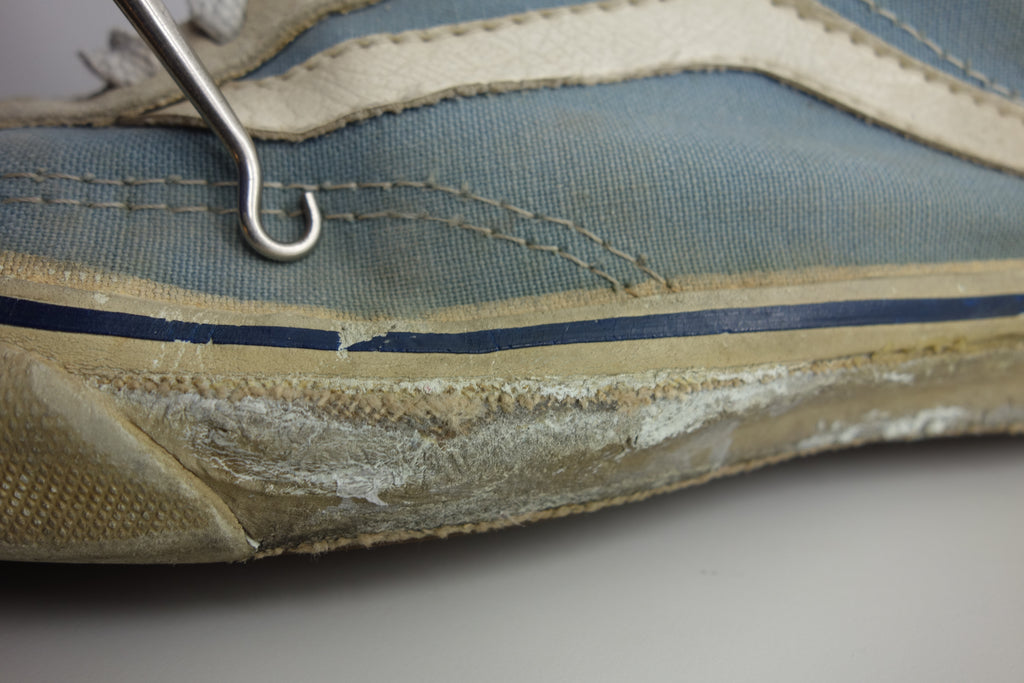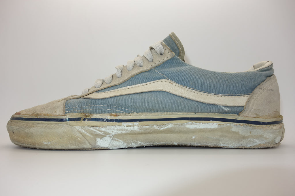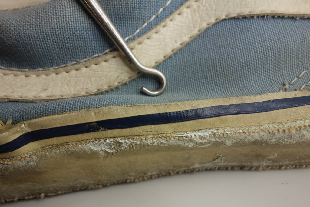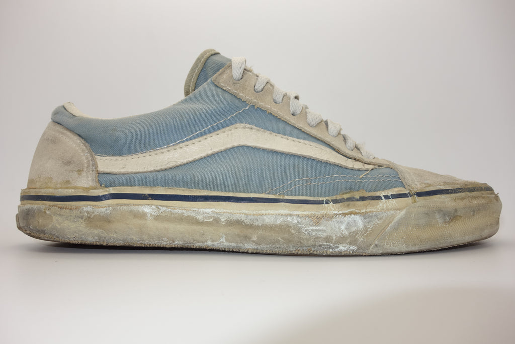 good used condition, however the rubber first foxing (stripe area) has completely cured/solidified & will crack & crumble upon bends. the cure also creeps into the top half of the friction sidewall. the lower half od the sidewall shows wet-rot however the tackiness has dried. there are some shoe-goo repairs but from experience these will leave a trail of rubber chunks then hold up to normal wear. the bumper & waffle itslef are unaffected. some wear to heel lining however internal counters remain intact. wear to the internl lining at toes through to suede. vinyl collar shows splitting & the insole is not crusty but firm. wear at own risk