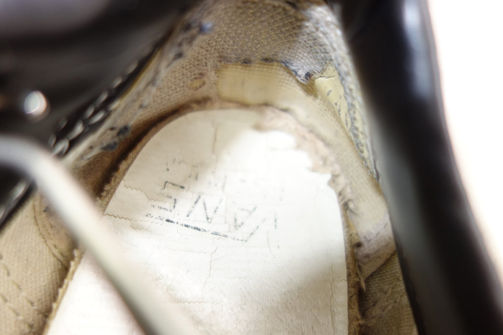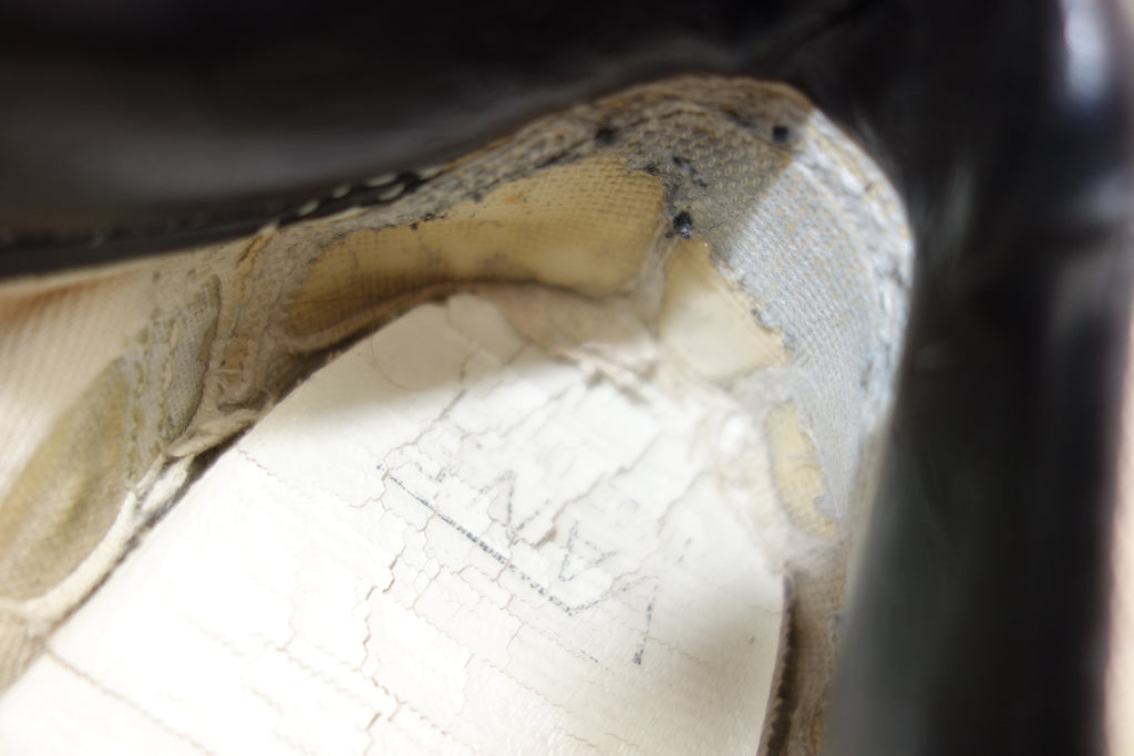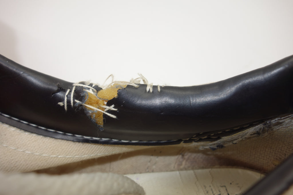 good used condition. all rubber remains super soft & flexible with only minor separation with uppers at creases. 1 tear to the vinyl collar & adjacent canvas, which shows diy repair. the repair is poor however is an easy fix for a pro. otherwise the internal heel shows wear to lining however plastic counter remains intact with only minor cracks at the base.