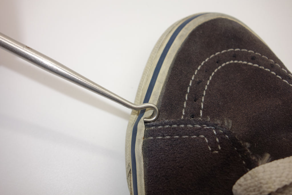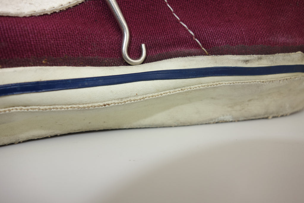 very good used condition. all rubber remains soft & flexible albeit a bit crusty. otherwise intermittent micro-cracking, minimal separation with uppers at seams. a little wet-rot to the base of the friction where it meets the ground & resulting rubber curl. will not effect wear/longevity. size not visible but confident of US10. some wear to internal lining of suede at big toes.