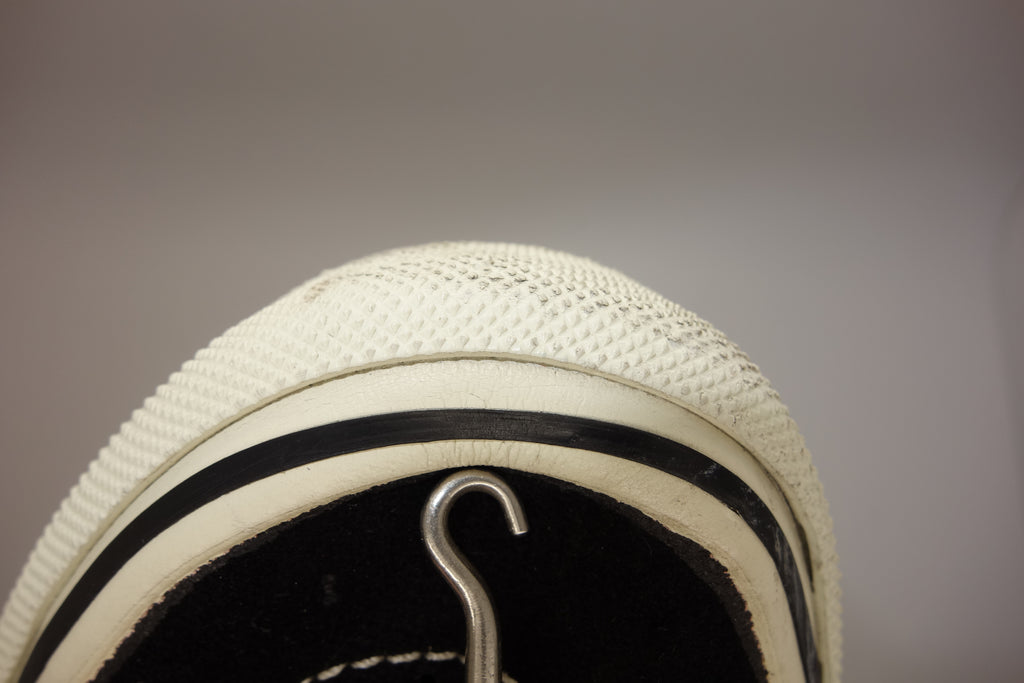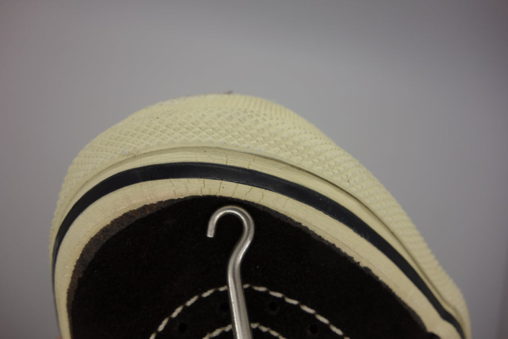 excellent used condition. the right shoe saw short term use as display floor model with resulting rubber yellowing. all rubber remains soft & flexible despite some dryness & stress cracking.