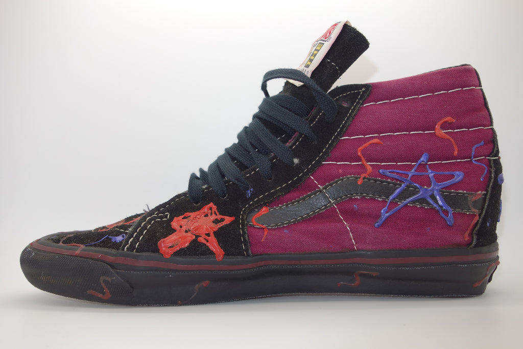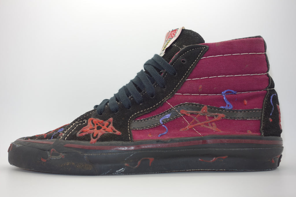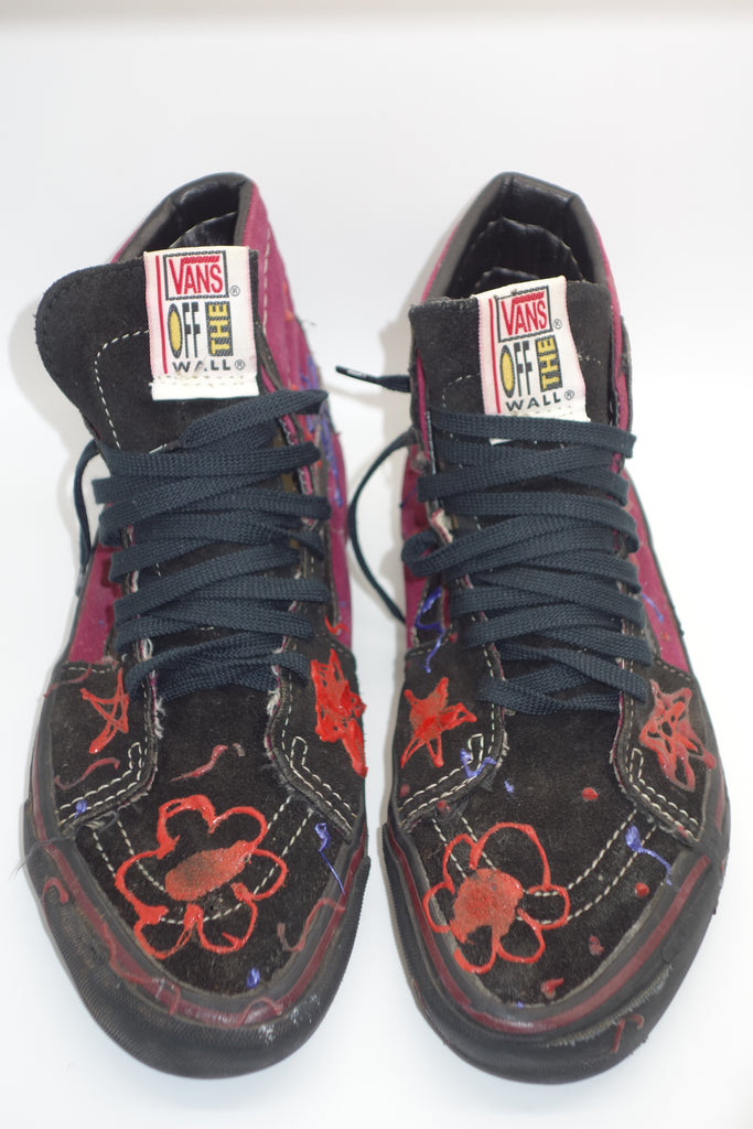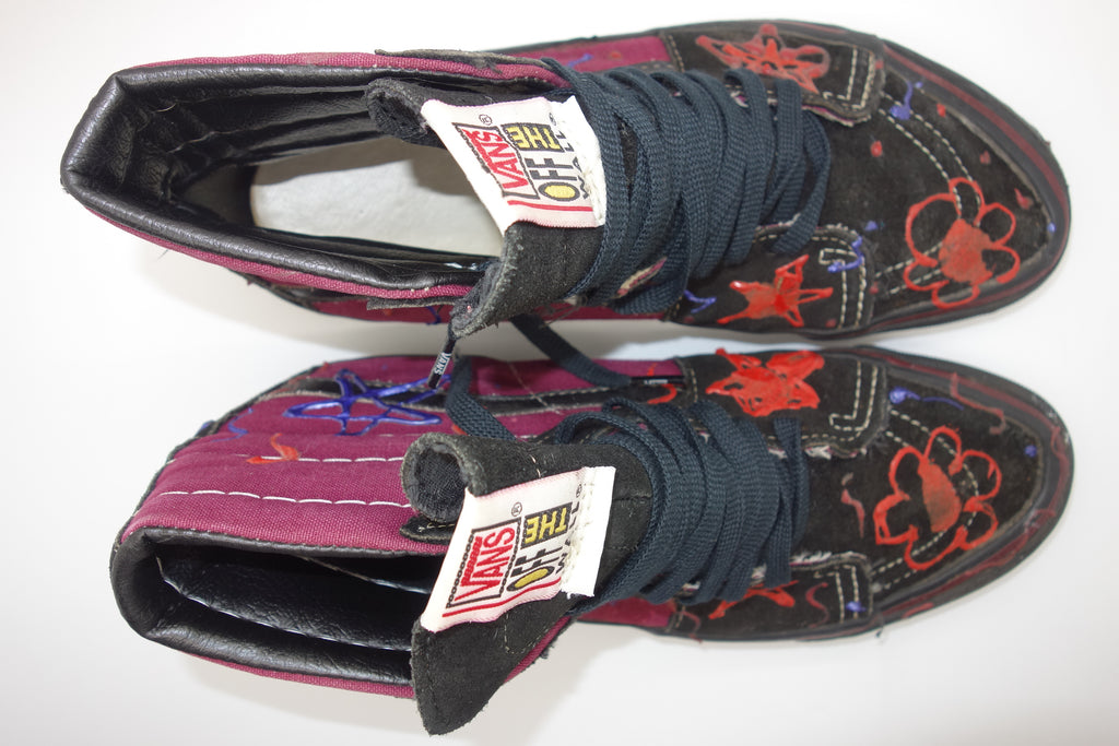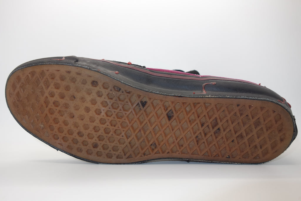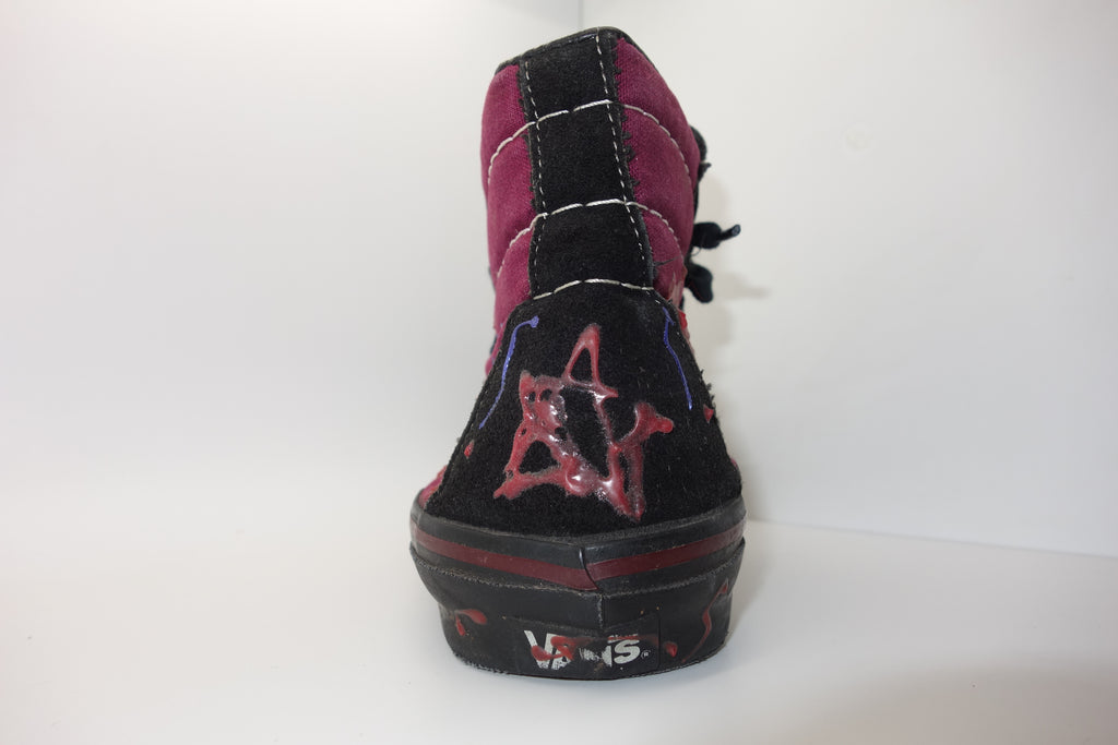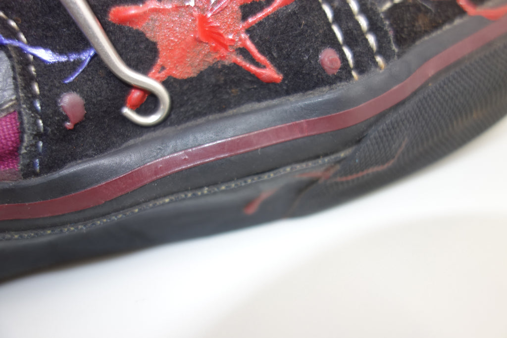 good used condition. these were skated however remain structurally sound. all rubber remains soft & flexible with little separation from uppers & minor stress cracking from crush injury. paint pen customisation is soft & wont effect wear/longevity. some wear to inner lining at big toes.