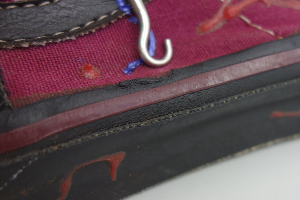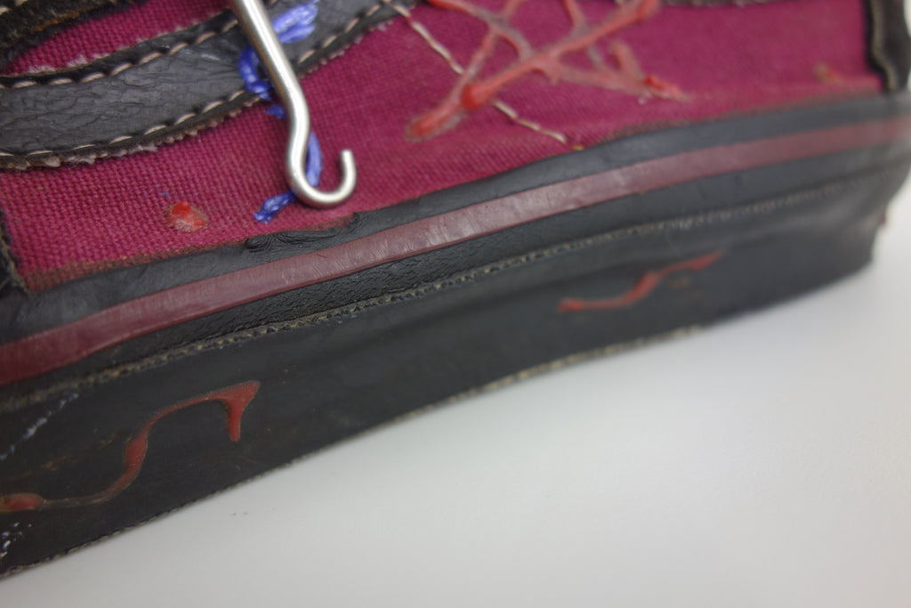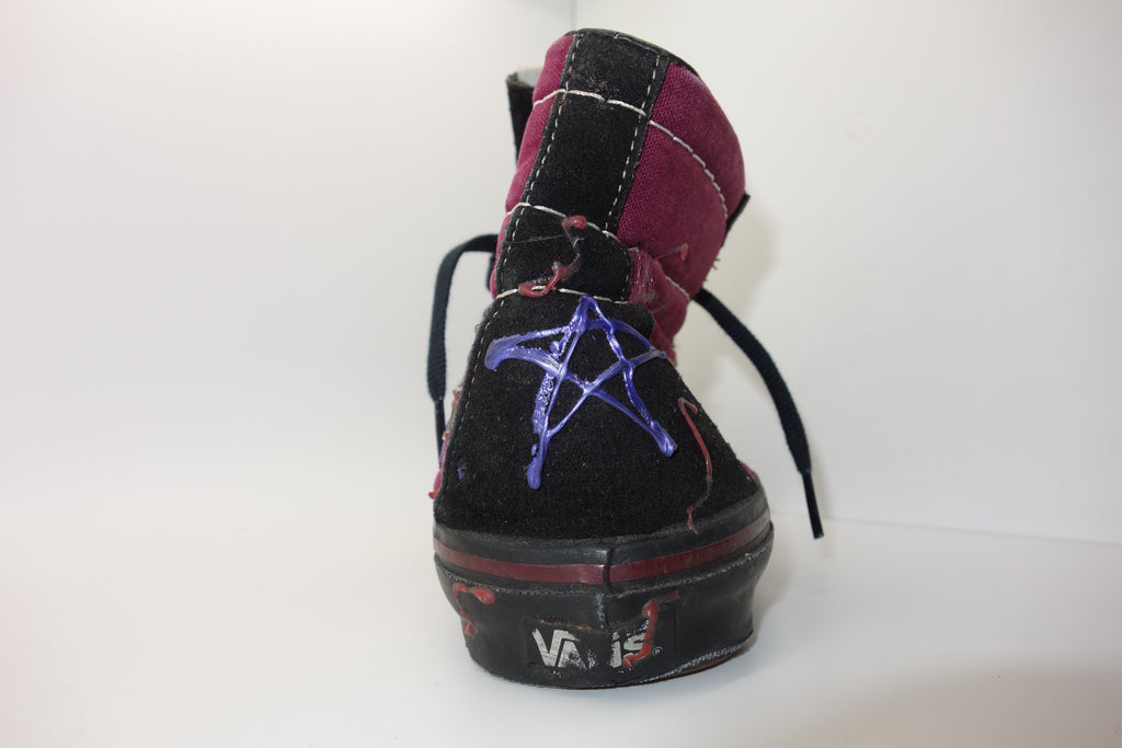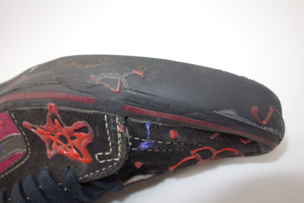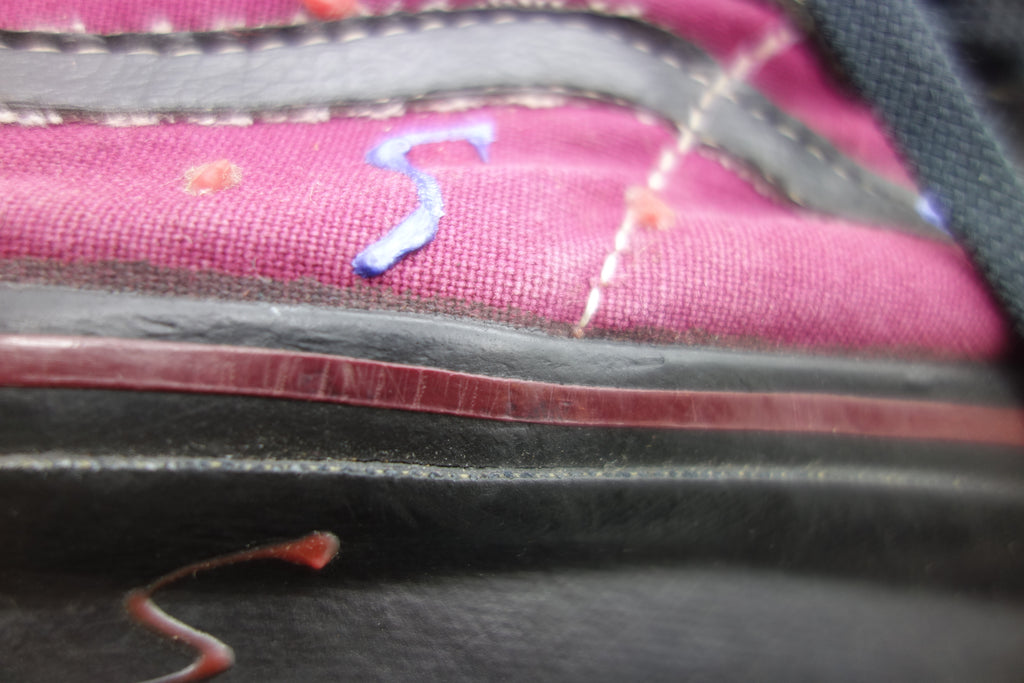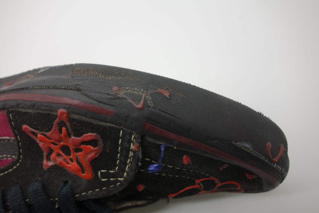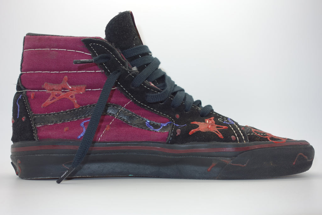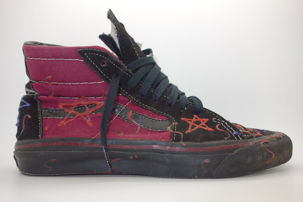 good used condition. these were skated however remain structurally sound. all rubber remains soft & flexible with little separation from uppers & minor stress cracking from crush injury. paint pen customisation is soft & wont effect wear/longevity. some wear to inner lining at big toes.
