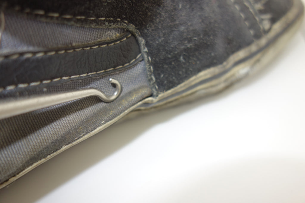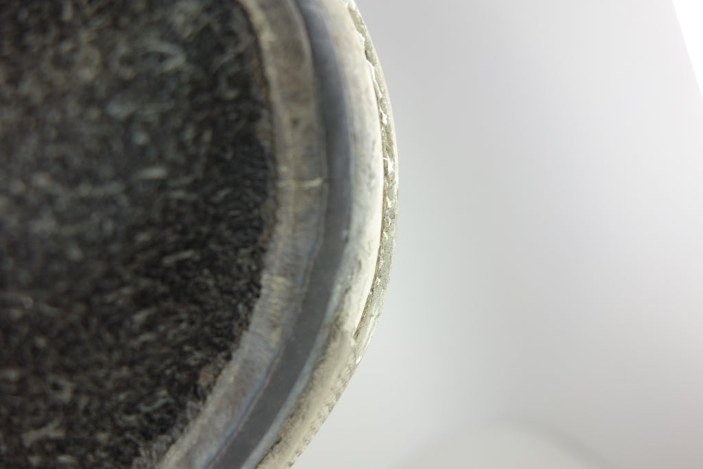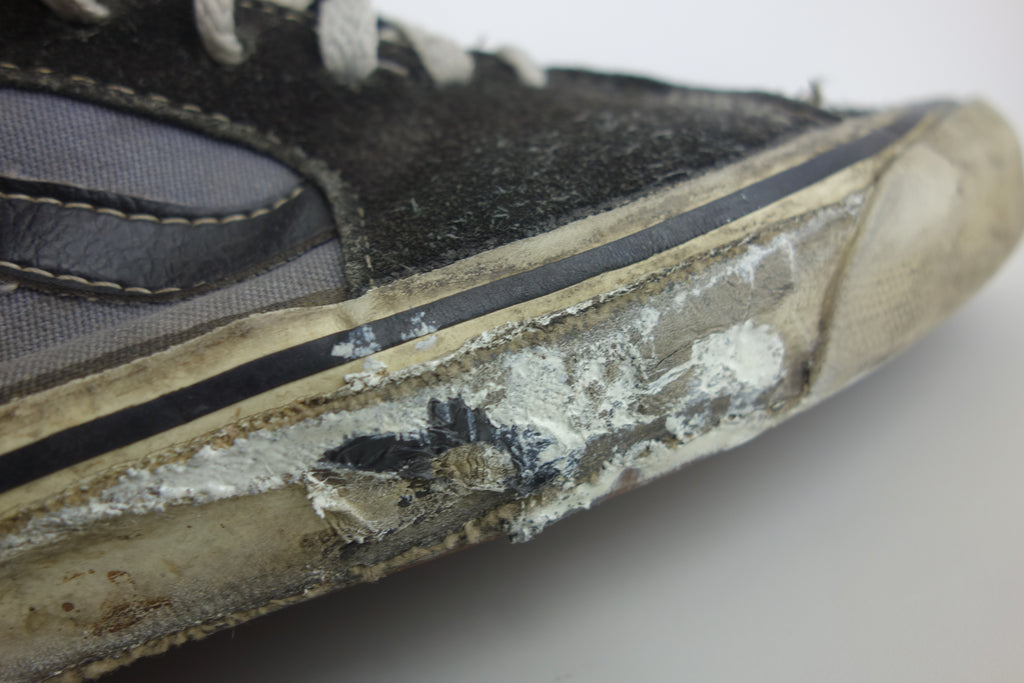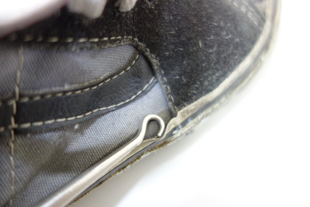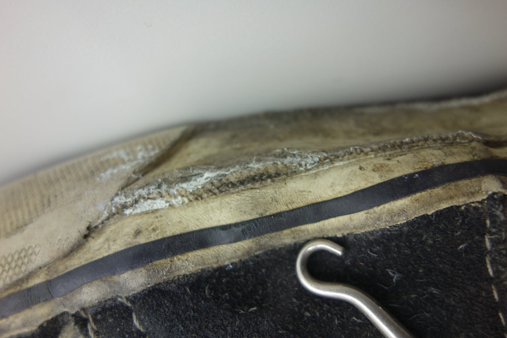 good used condition. some rubber curing/hardening to the toes with 1 hairline crack visible. the rubber remains soft towards the crucial bend area however may still crack. minimal separation from uppers mainly at seams. some stress cracking from crush injury. saw good wear however structurally sound. minor wet rot to the friction sidewall, can be dried using white talcum powder. size not visible but bought as US9 & measures accordingly. wear at own risk