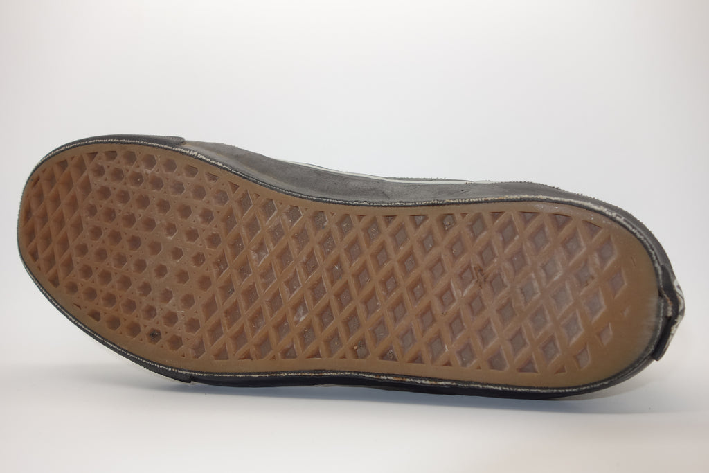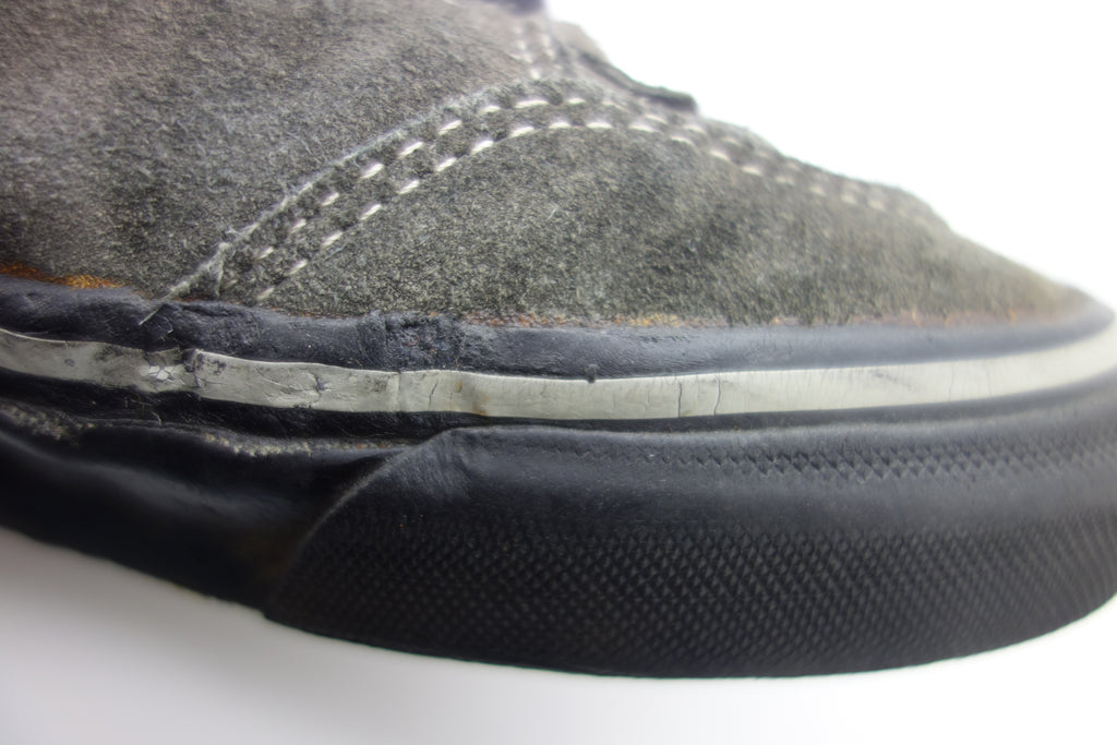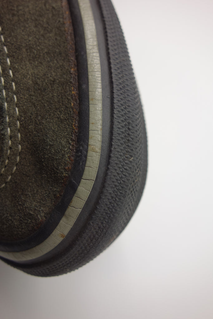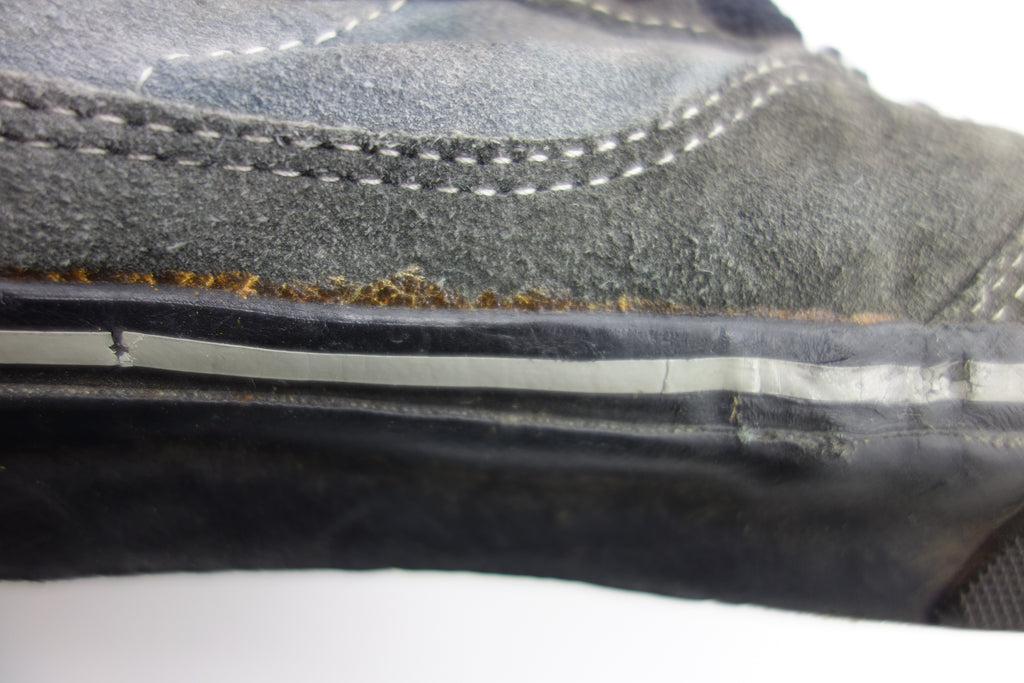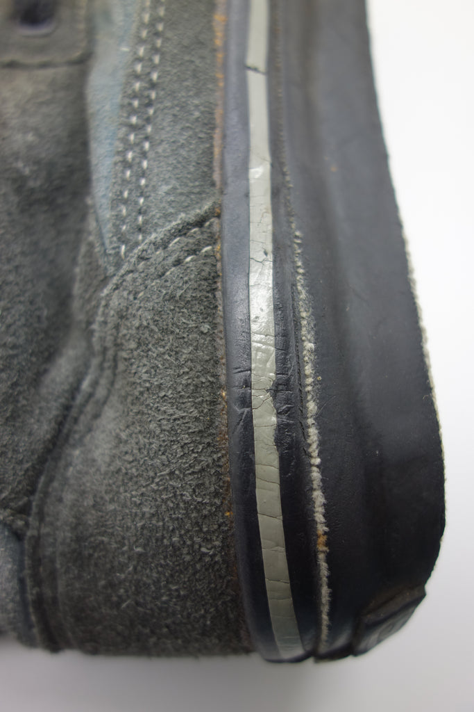 very good used condition. all rubber remains soft & flexible (despite impression marks) except for the grey foxing stripe intself. the stripe has hardened in some areas & may crack & gouge into the black rubber underneath. the foxing/friction/waffle itself are still malleable & despite minimal loss of rubber i anticipate these will hold up to normal wear. the foam fiber-fill tongue has perished essentially leaving an empty sack for a toungue & will leave black dry residue on insole & socks. wear at own risk.