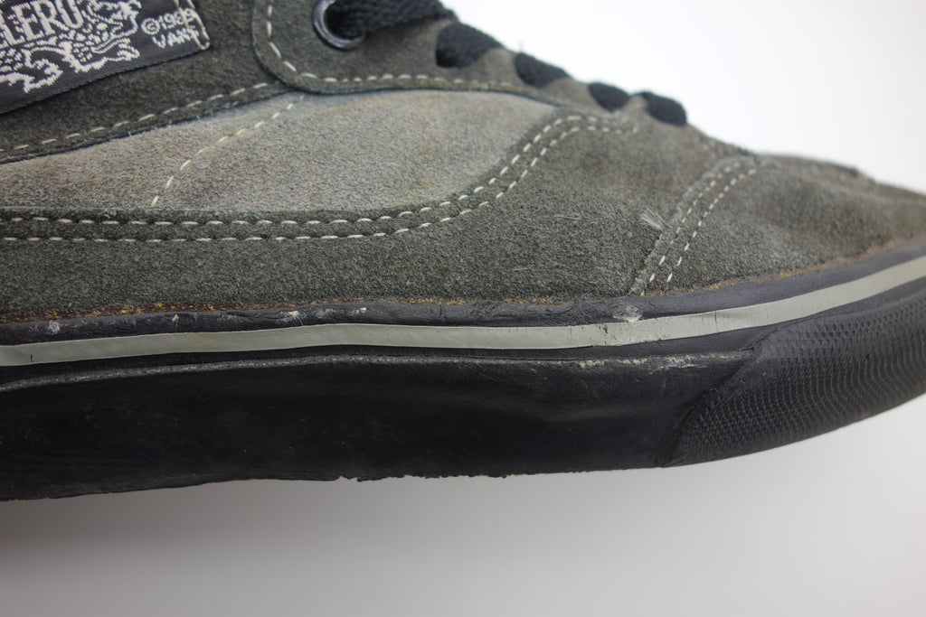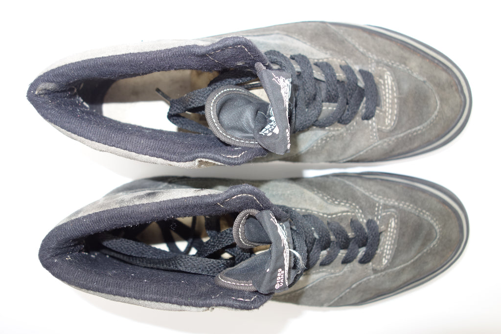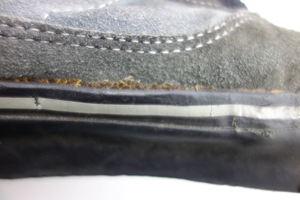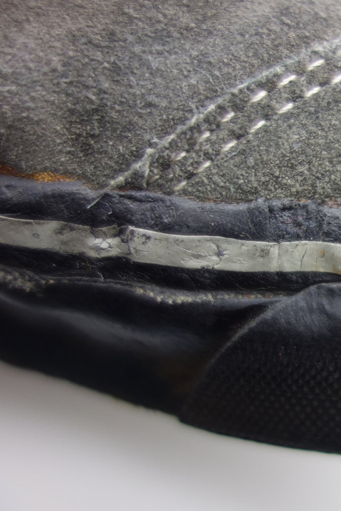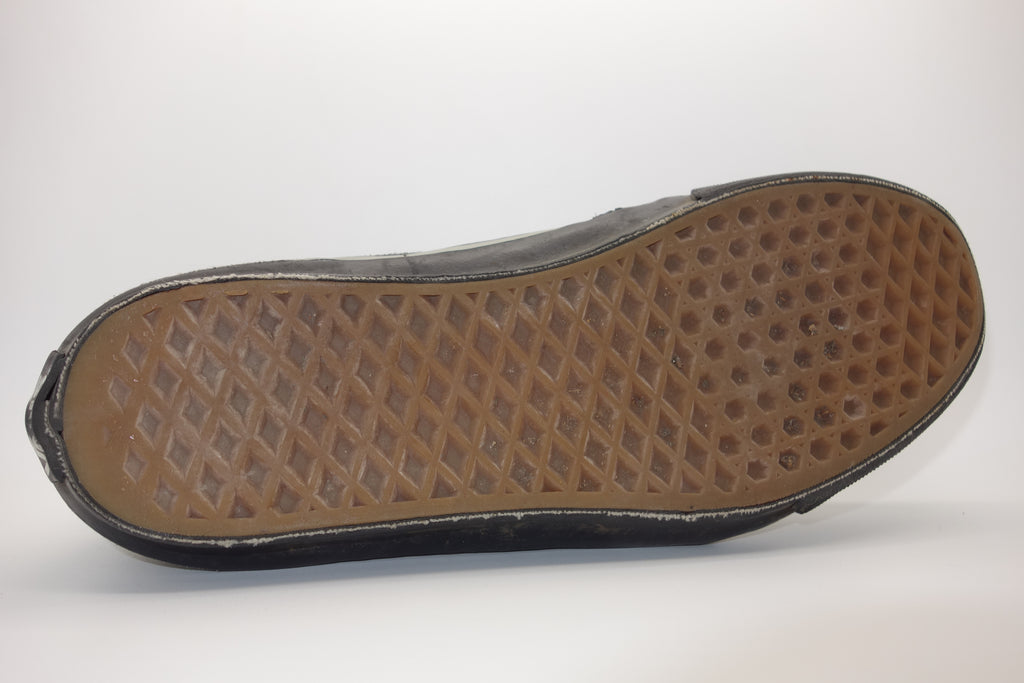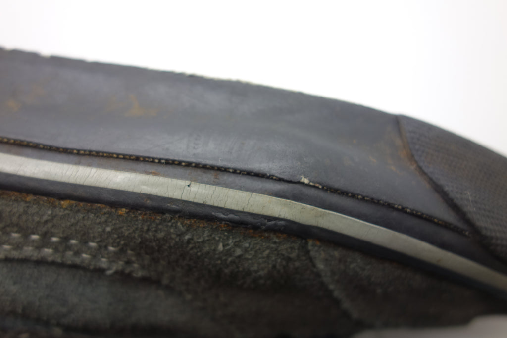 very good used condition. all rubber remains soft & flexible (despite impression marks) except for the grey foxing stripe intself. the stripe has hardened in some areas & may crack & gouge into the black rubber underneath. the foxing/friction/waffle itself are still malleable & despite minimal loss of rubber i anticipate these will hold up to normal wear. the foam fiber-fill tongue has perished essentially leaving an empty sack for a toungue & will leave black dry residue on insole & socks. wear at own risk.