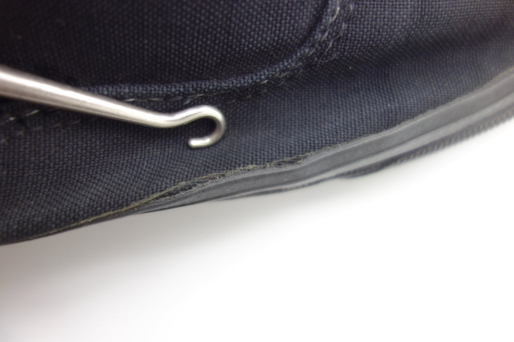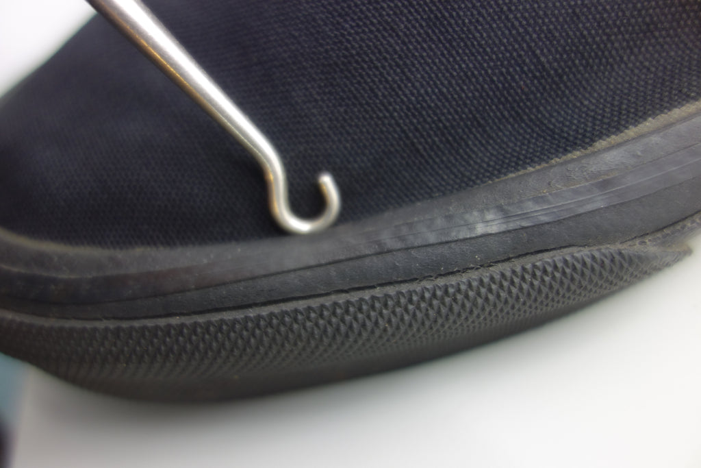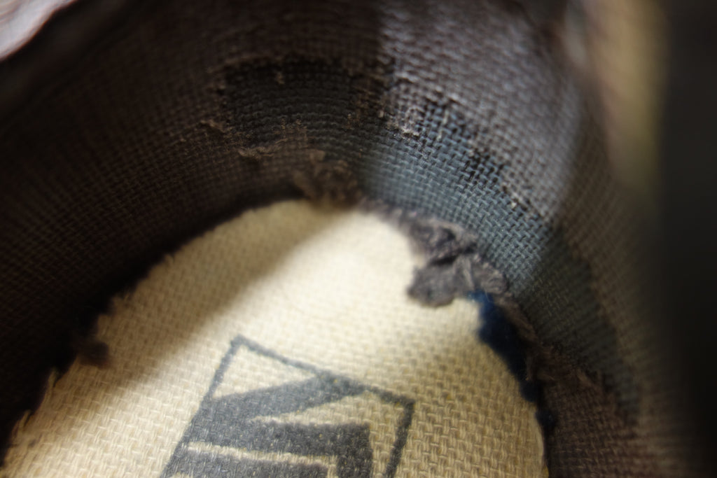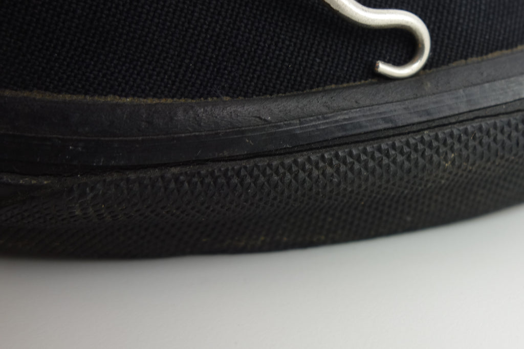 very good used condition. the rubber remains super soft & very flexible. very minor separation & stress crack to rubber from crush injury. 2 splits to collar on medial side with repair.