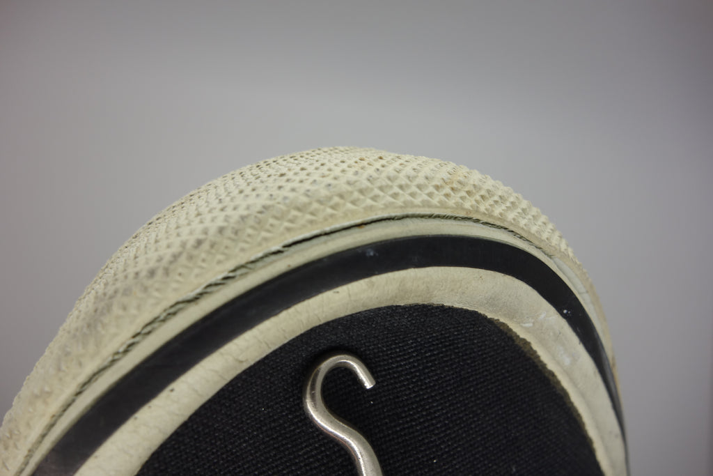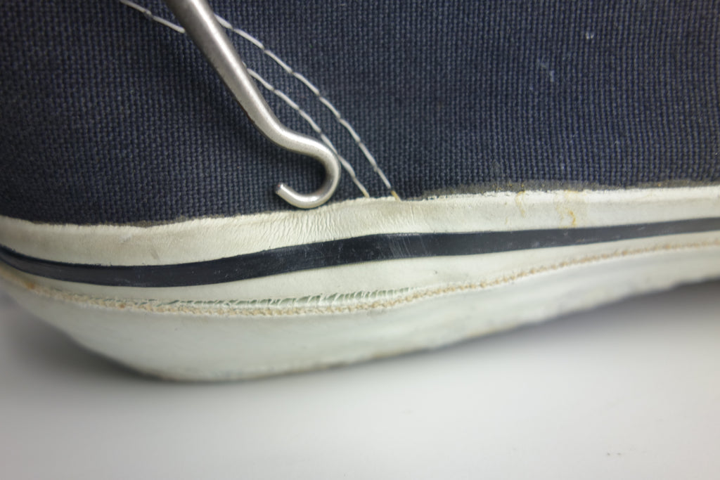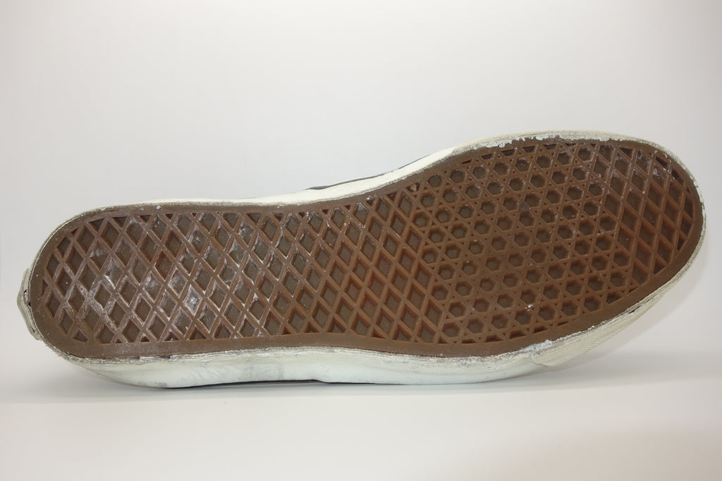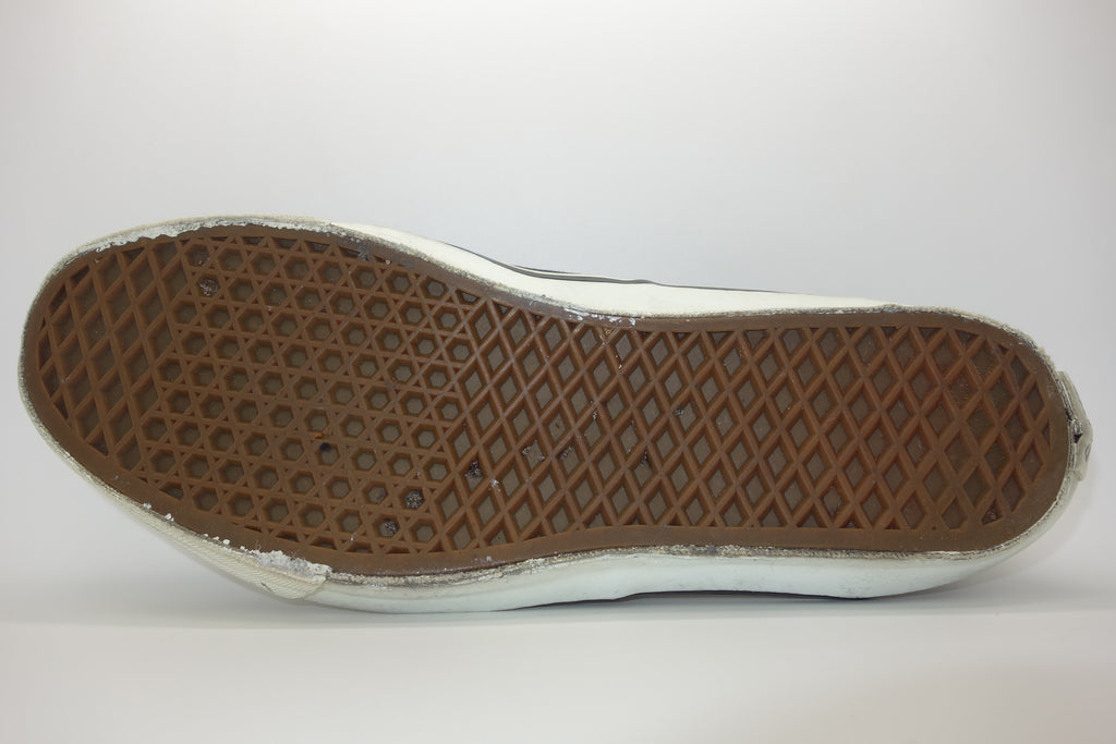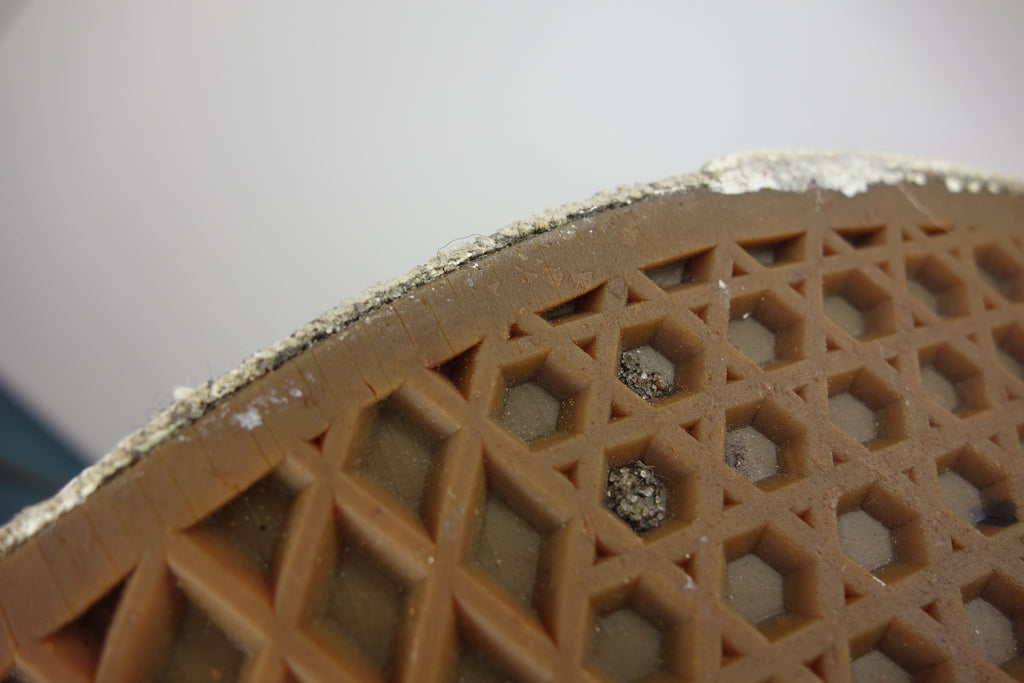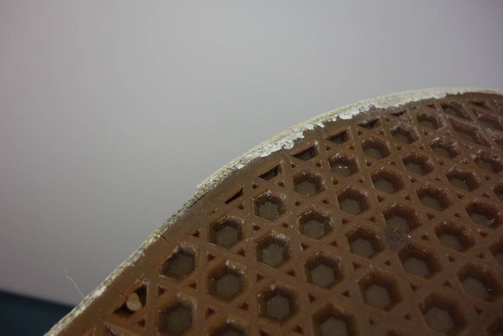 all white rubber remains soft & flexible however the waffle goes a distinct green & has cured/solidified. hairline cracks already showing on waffle will continue & split completely. micro stress cracking throughout first foxing wont effect wear. minor spots of the foam insole have dry rotten & may crumble. wear at own risk